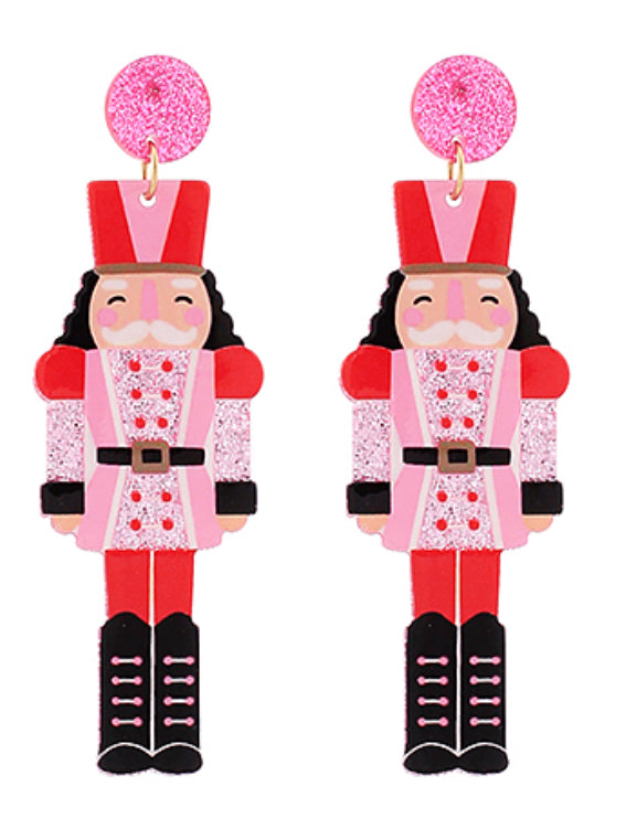 Pink Acrylic Classic Nutcracker Earring - Final Sale