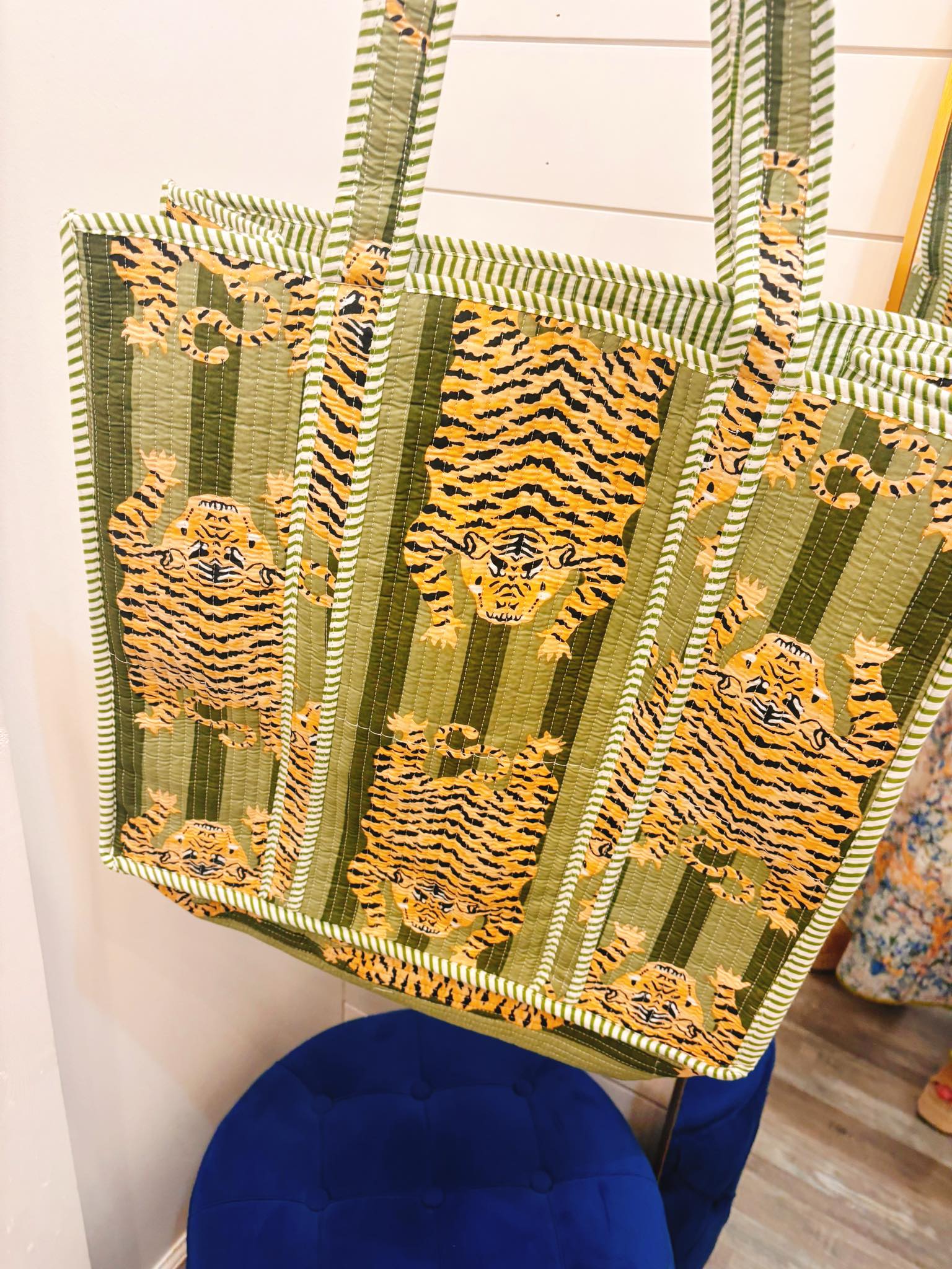 Tiger Strikes Pink Quilted Tote - Final Sale
