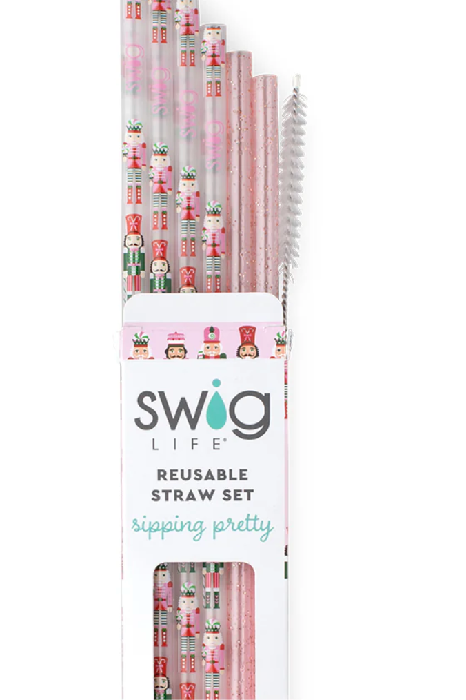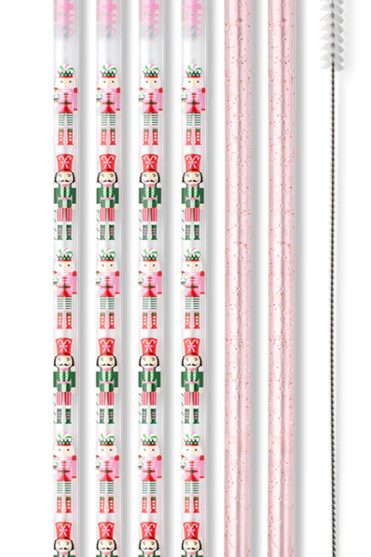 SWIG | Sugar Plum Soldiers + Light Pink Glitter Resuable Straw Set - Final Sale