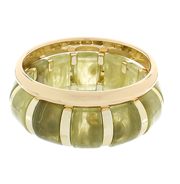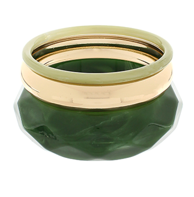 Green/Gold 3Row Marble + Metal Bangle Bracelet - Final Sale