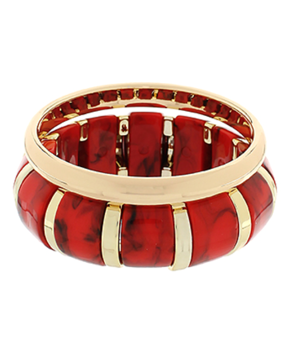 Tortoise/Gold 3Row Marble + Metal Bangle Bracelet - Final Sale