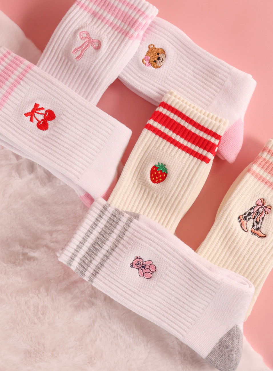 Simply | (8 STYLES) Embroidered Crew Socks - Final Sale