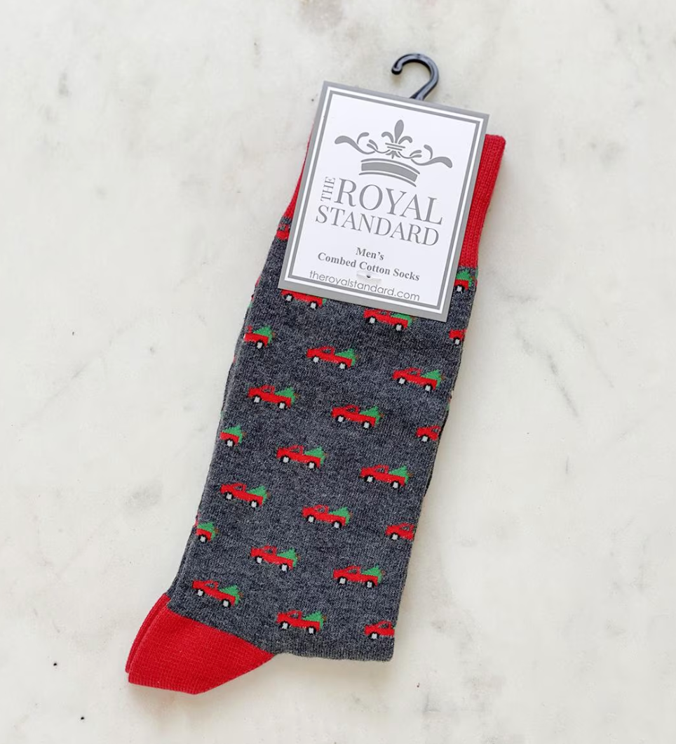 Men's Gray/Red Christmas Truck Socks - Final Sale
