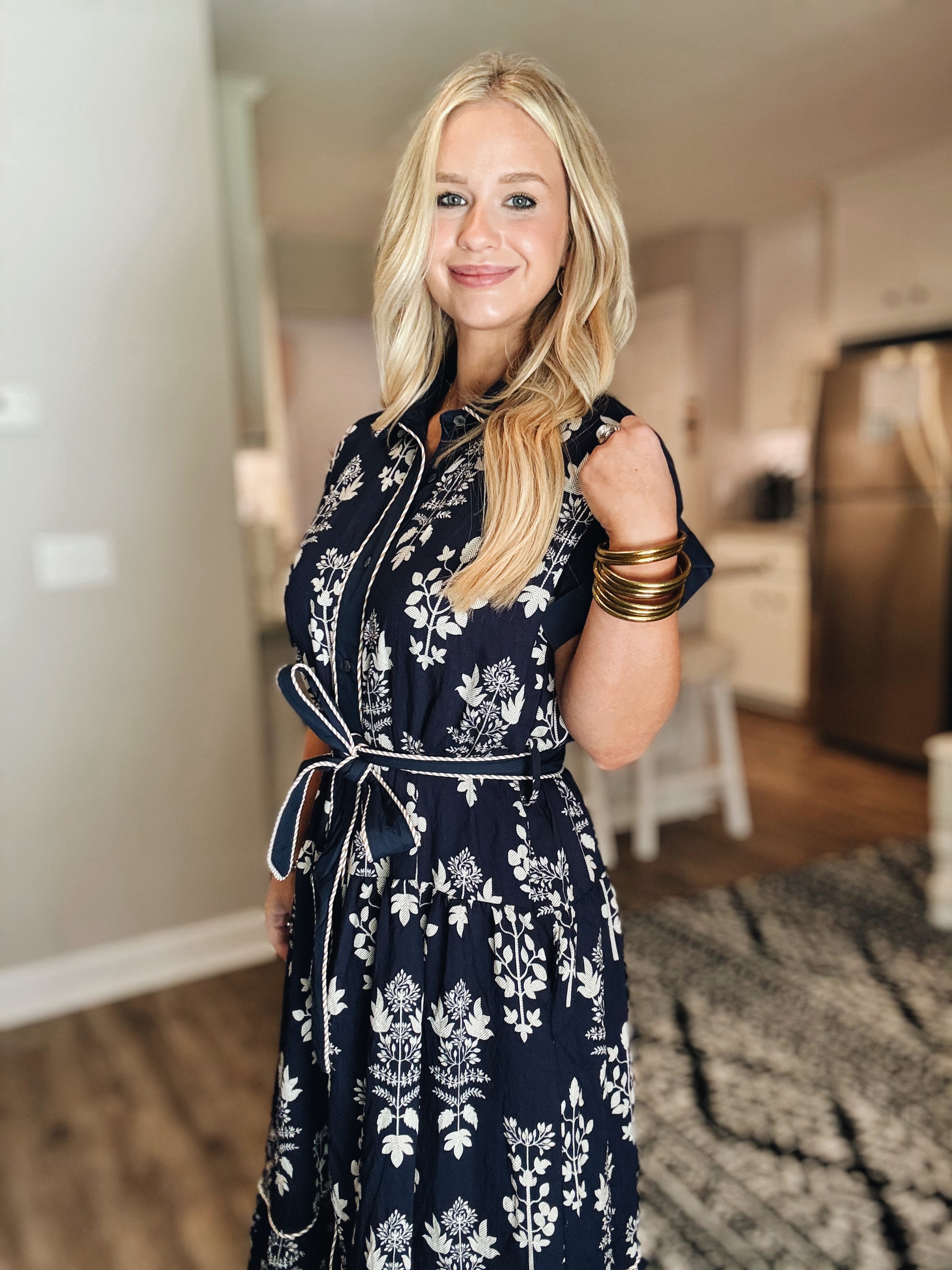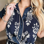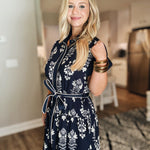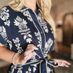 A Botanical Fall Midi Dress - Navy