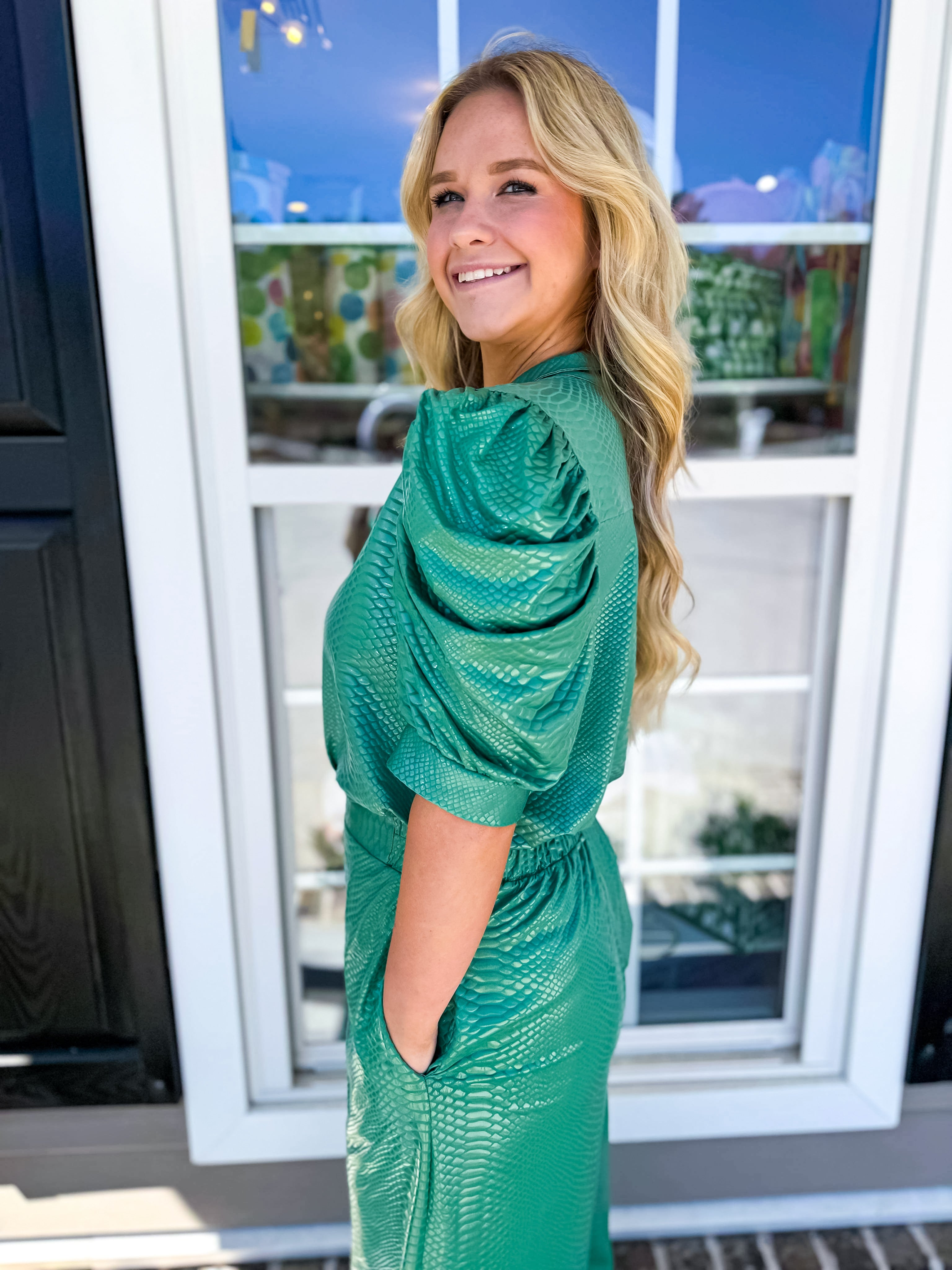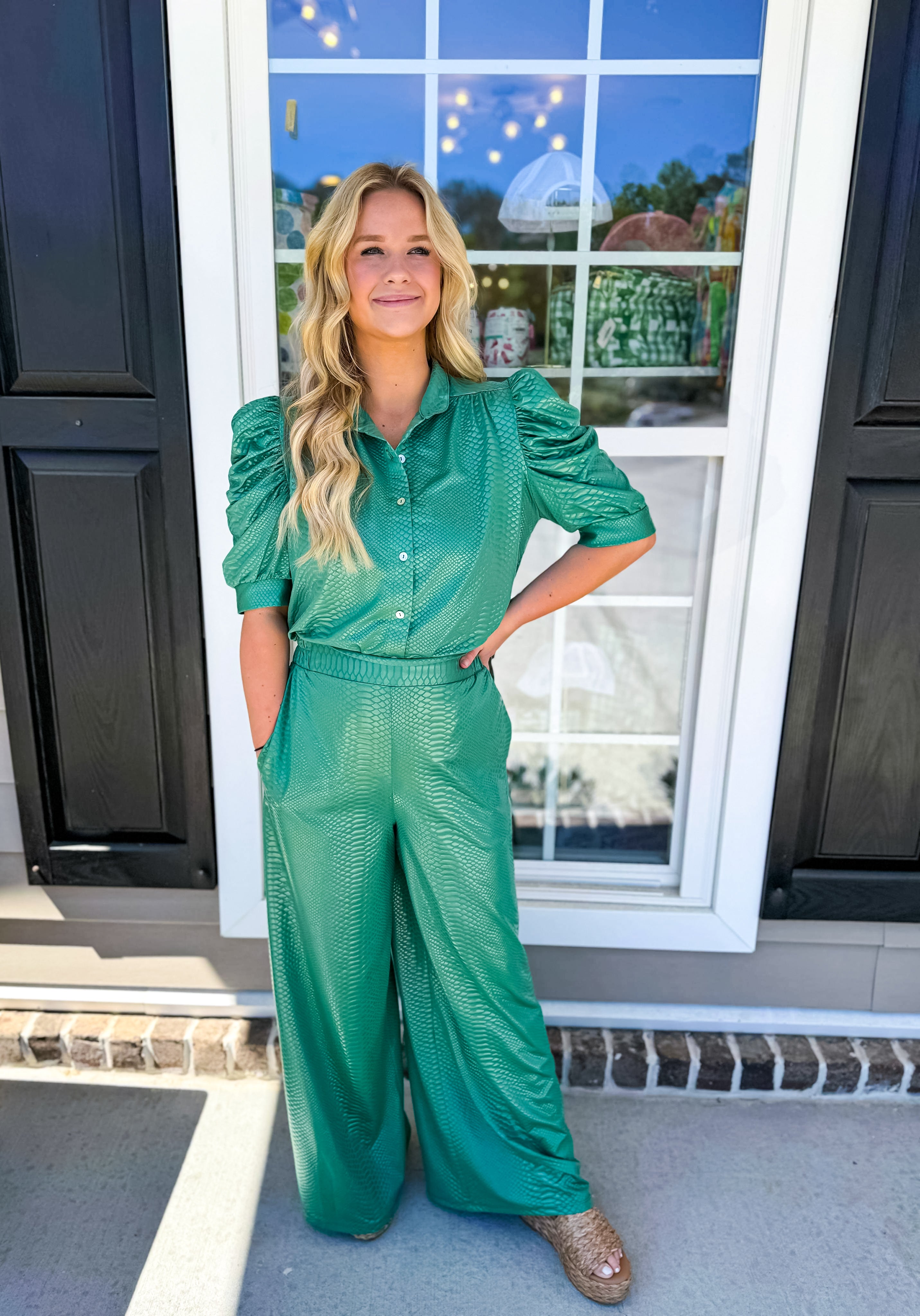 This top is fantastic. It features a puff sleeve with true buttons down the center.