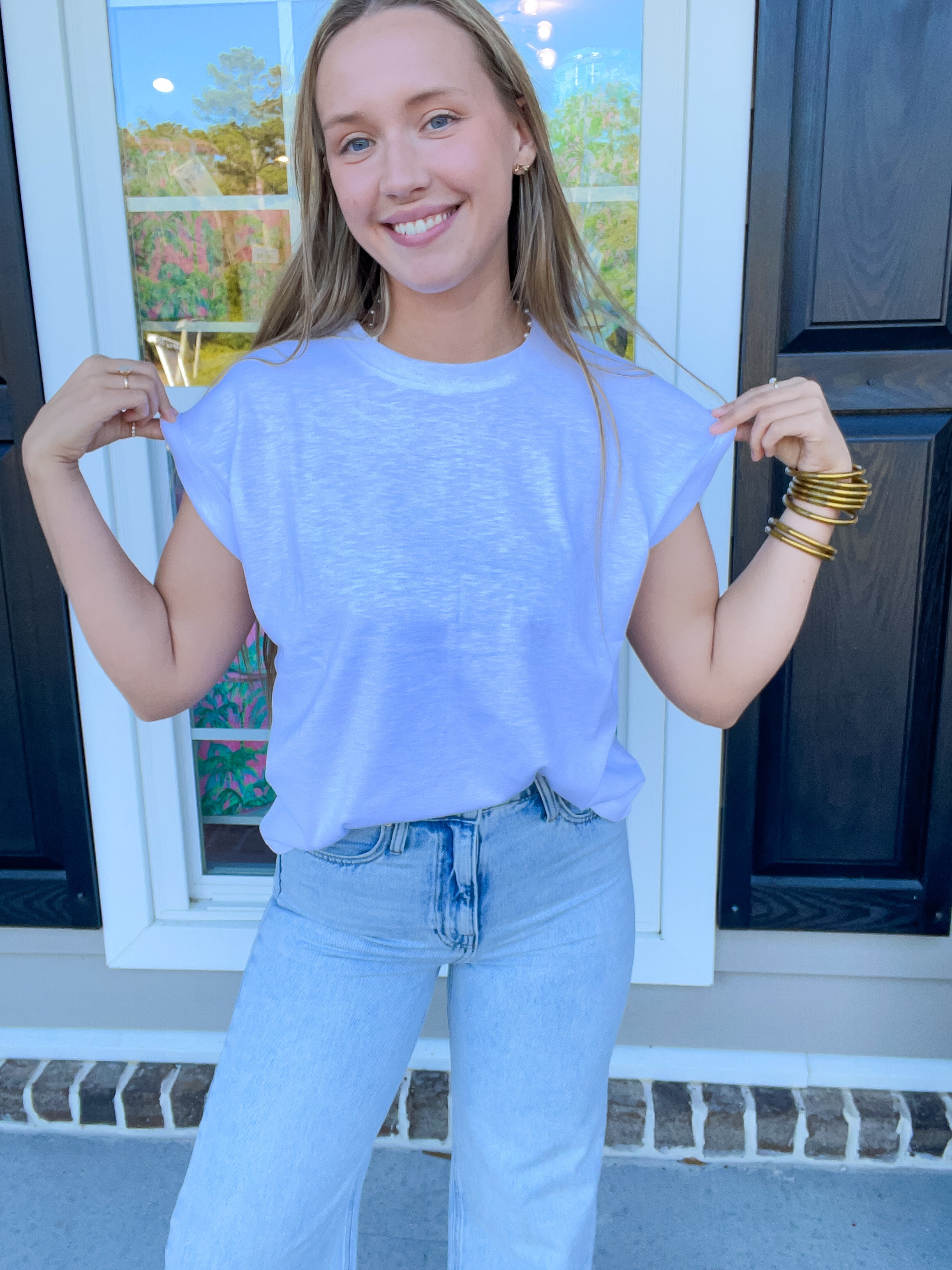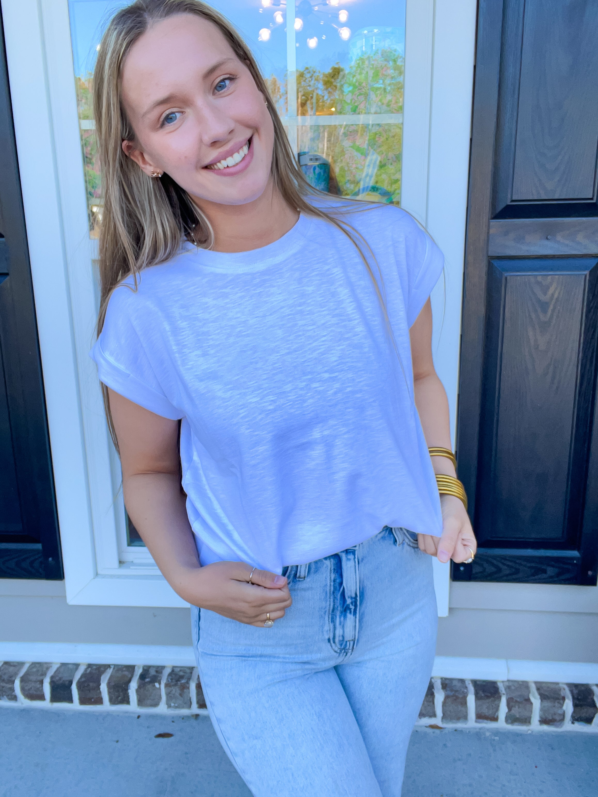 COTTON MODAL SLUB ROLLED SLEEVE TEE