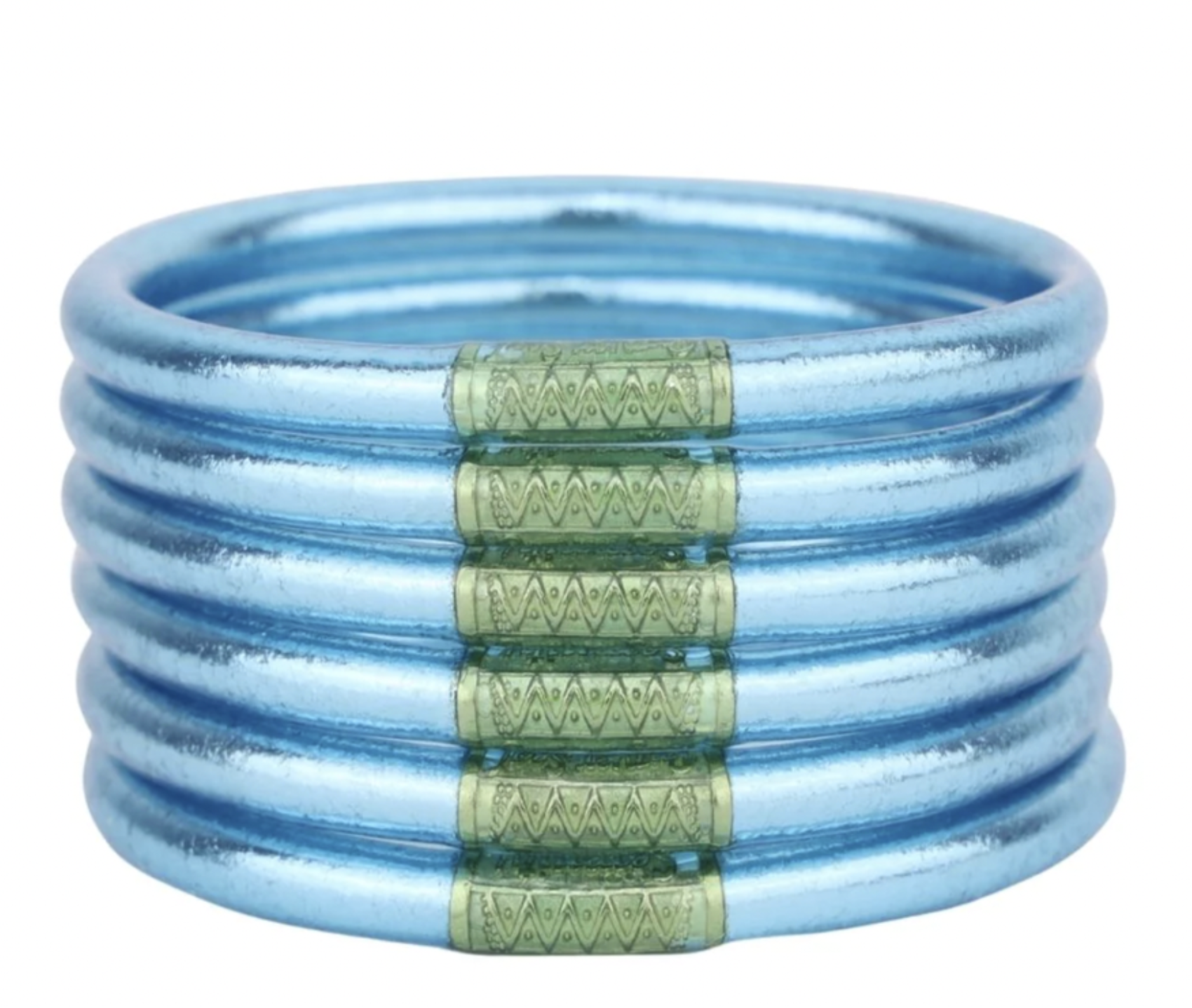 Azure is perfect combined with Silver AWB, representing a wave and its white foam. Bring in Marine AWB and you have the shallow waters combined with deep ocean mysteries. And of course for an over-the-top ode to blue combine Azure, Marine & Plume AWB for the most outrageously beautiful wristscape of blues.