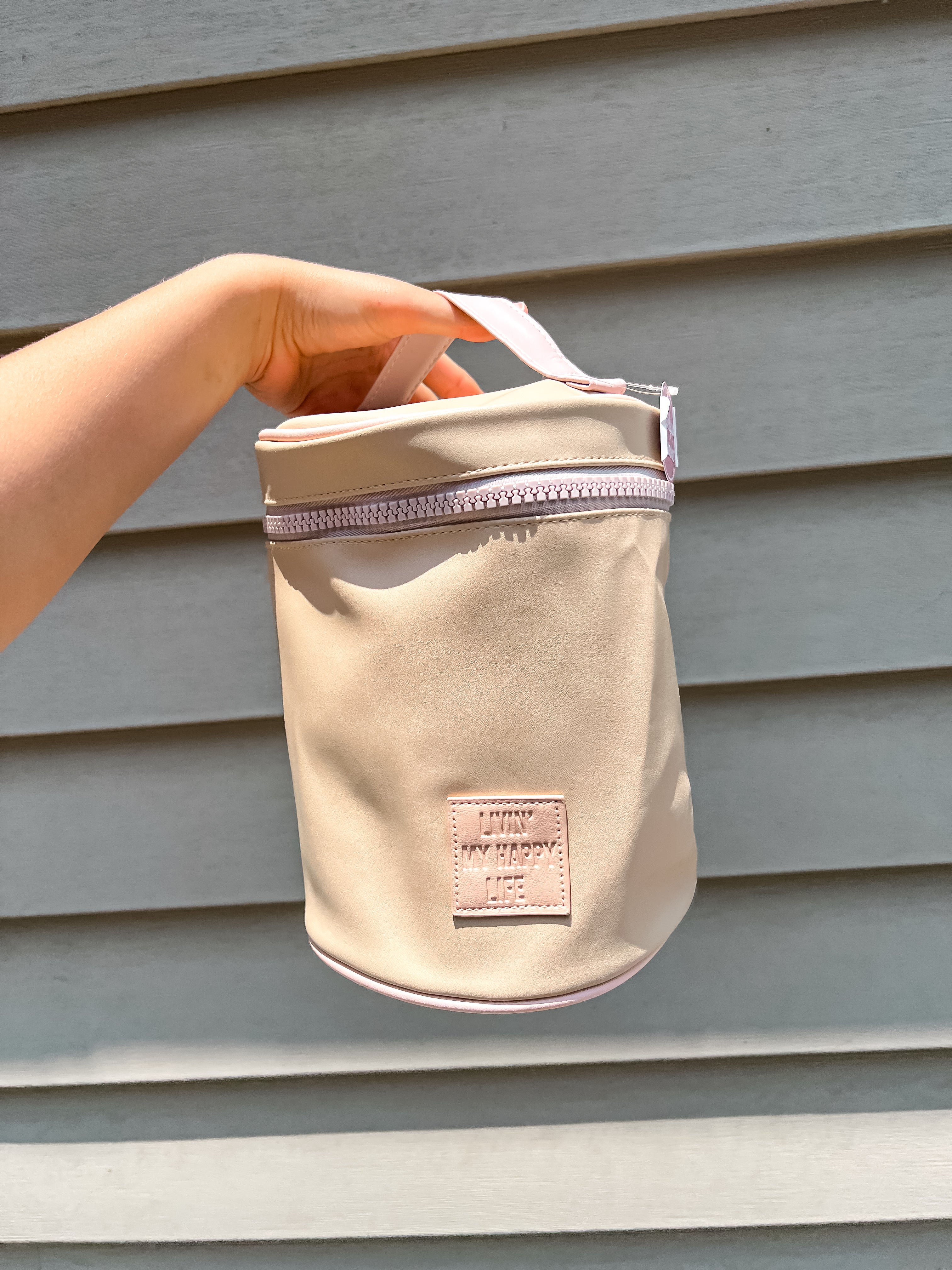 Barrel Organizer Toiletry Bag - Livin' My Happy Life (Tan)