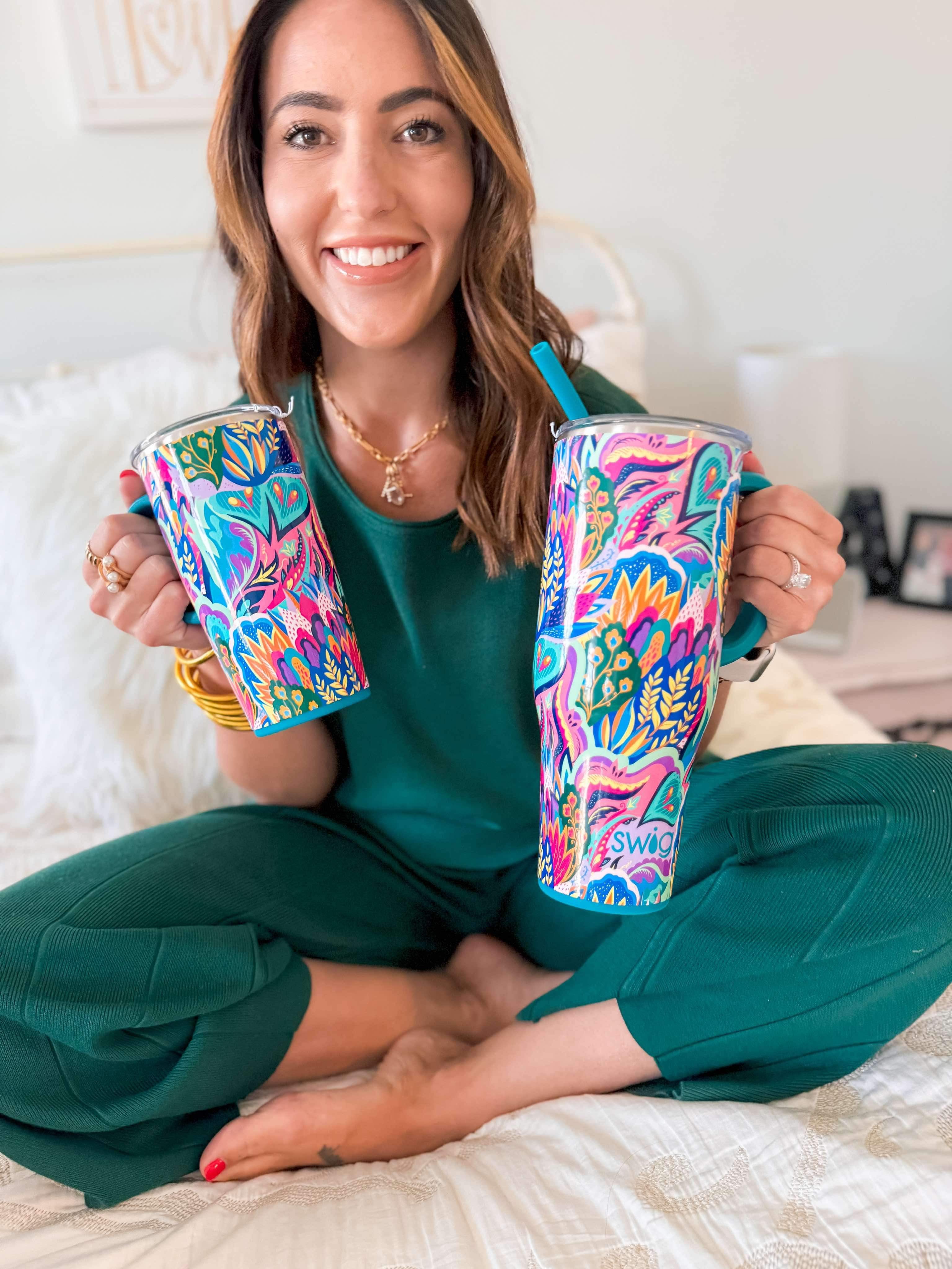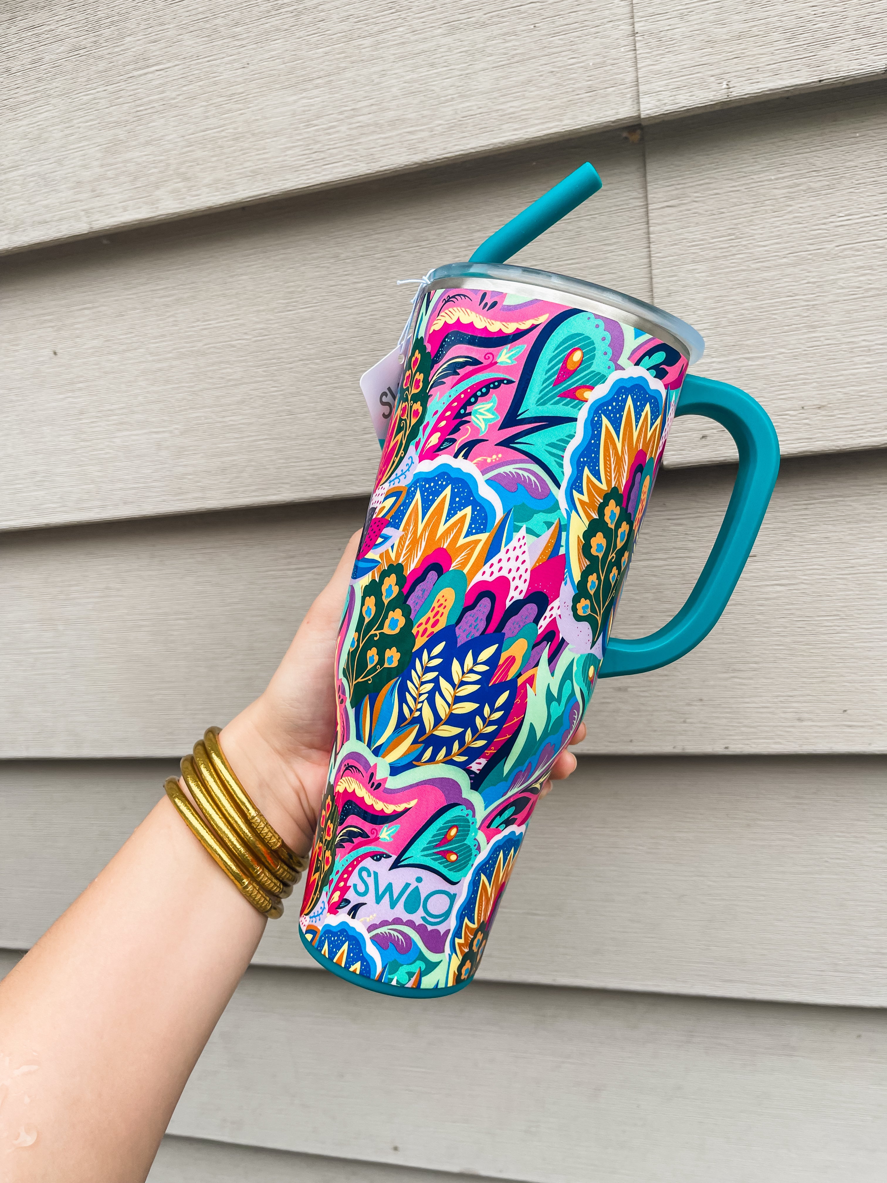 Hydrating has never been easier with our 40oz Insulated Mega Mug! A cup holder-friendly frame, a comfort-grip handle, and a plastic straw with a silicone flexi-tip all come together to create your new favorite Swig.