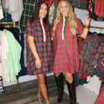 Plaid short sleeve mini dress featuring contrast buttoned placket and collar lining. Side pockets. Lined. Woven. Non-sheer. Lightweight.