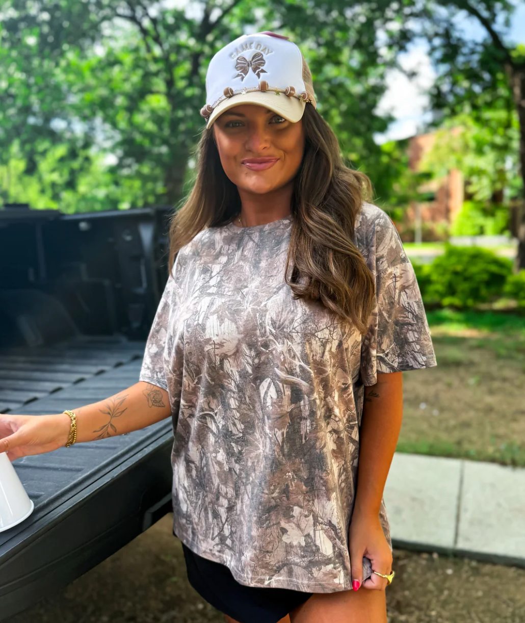 Oh HEY! Smile big because we have the cutest every day tee - camo as the base of the numbers. Perfect with leggings, shorts, jeans, wear it oversized or wear her true to size.