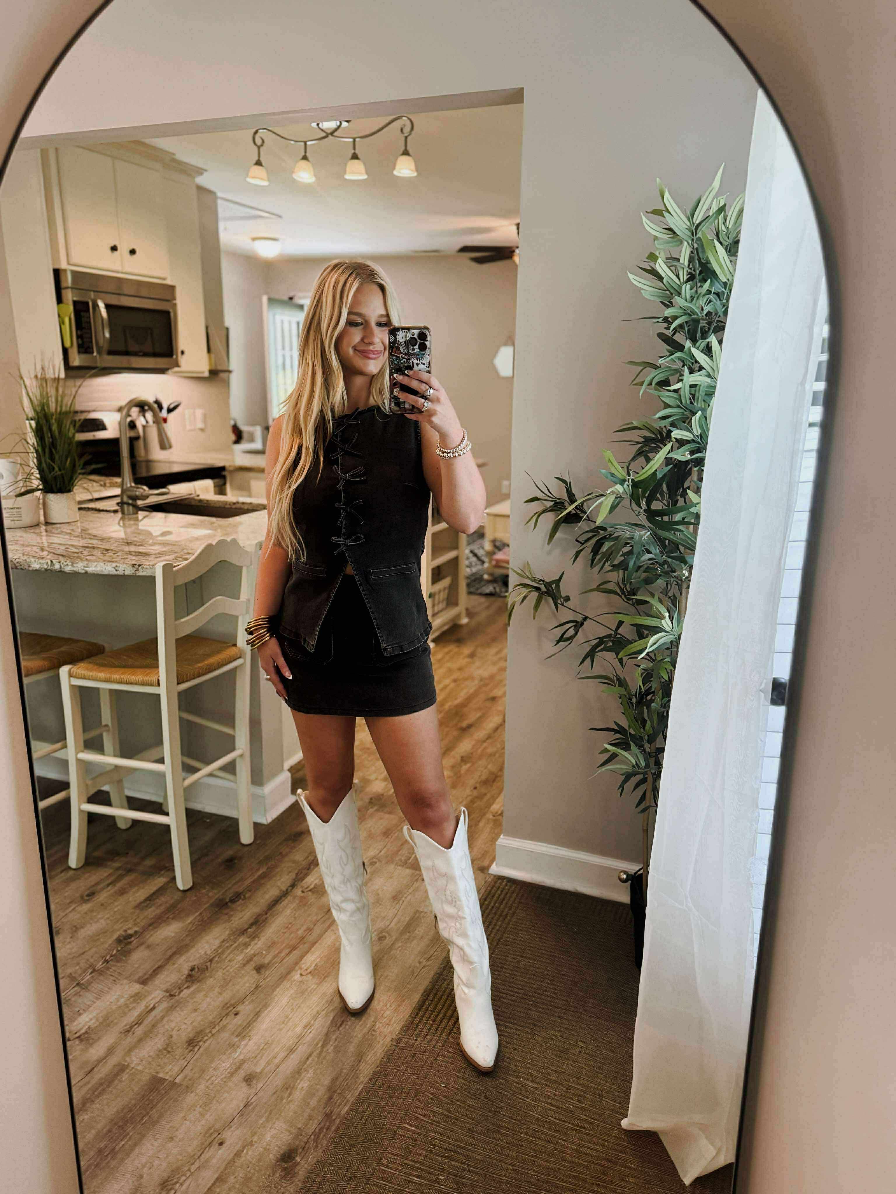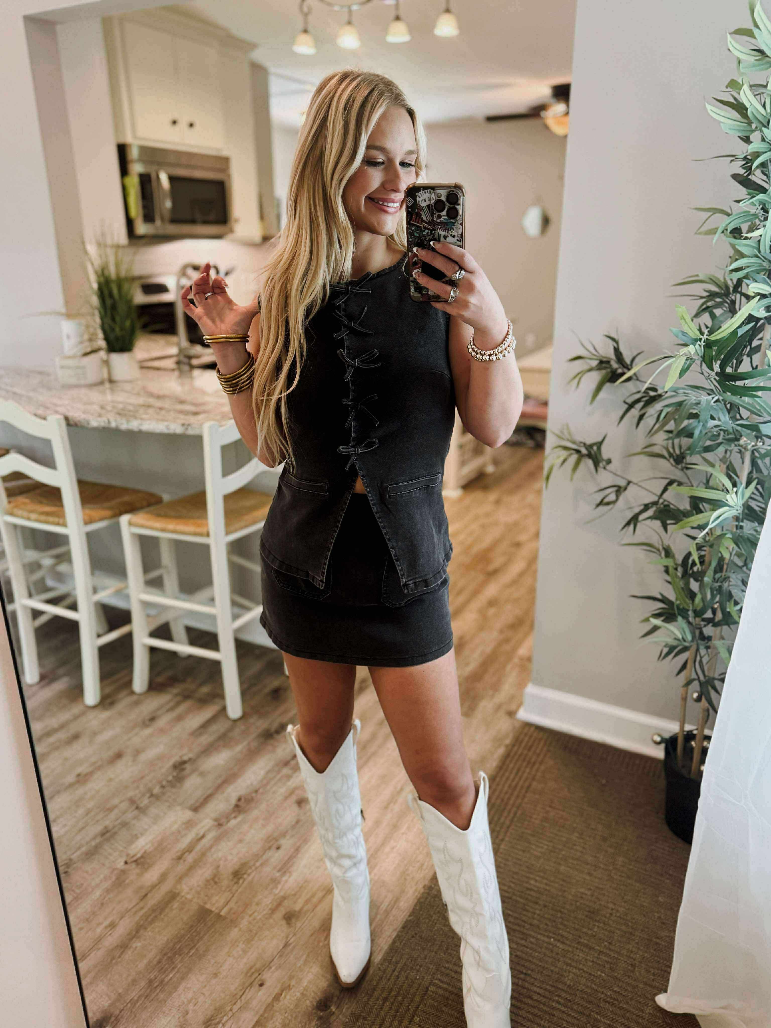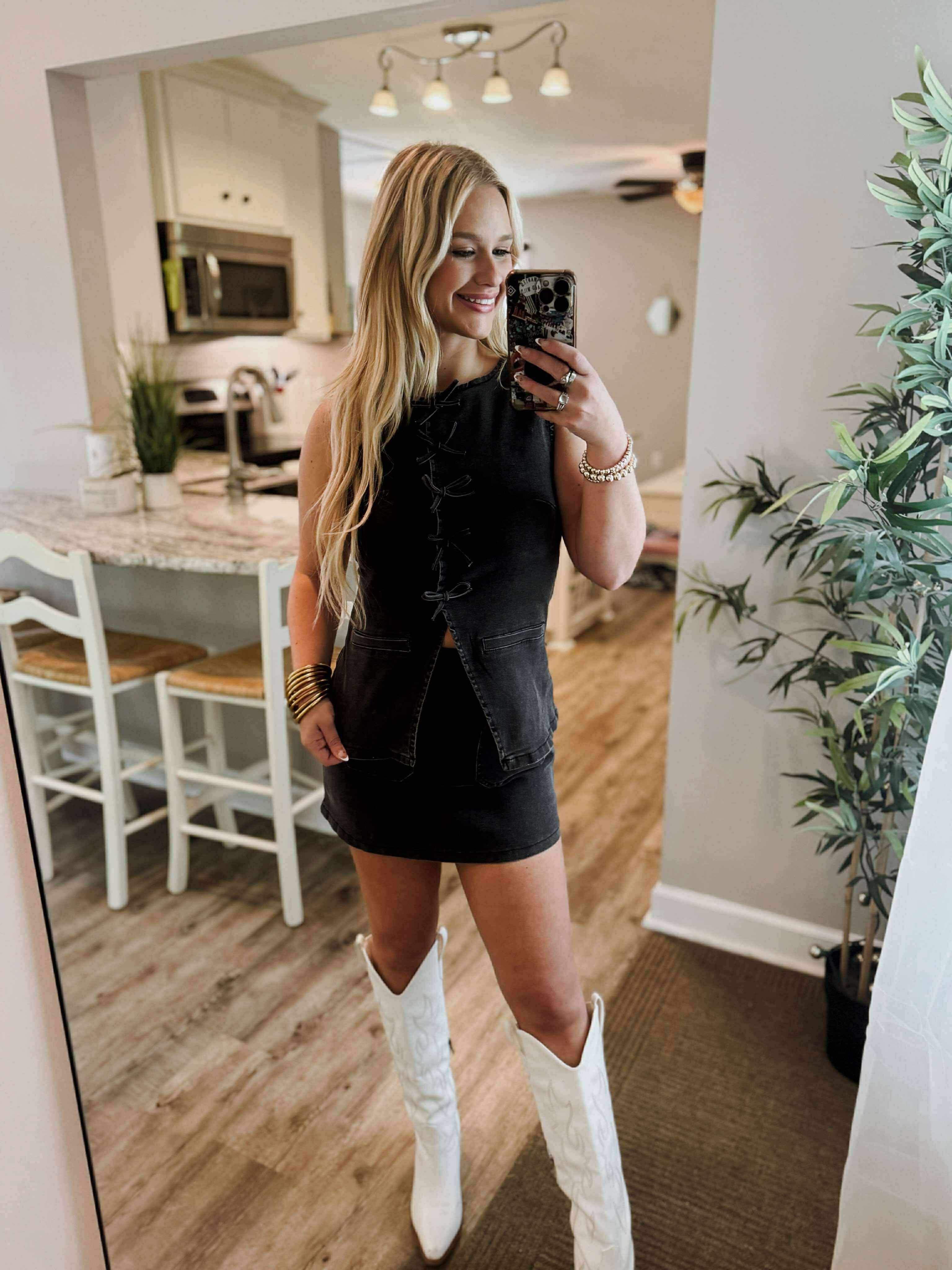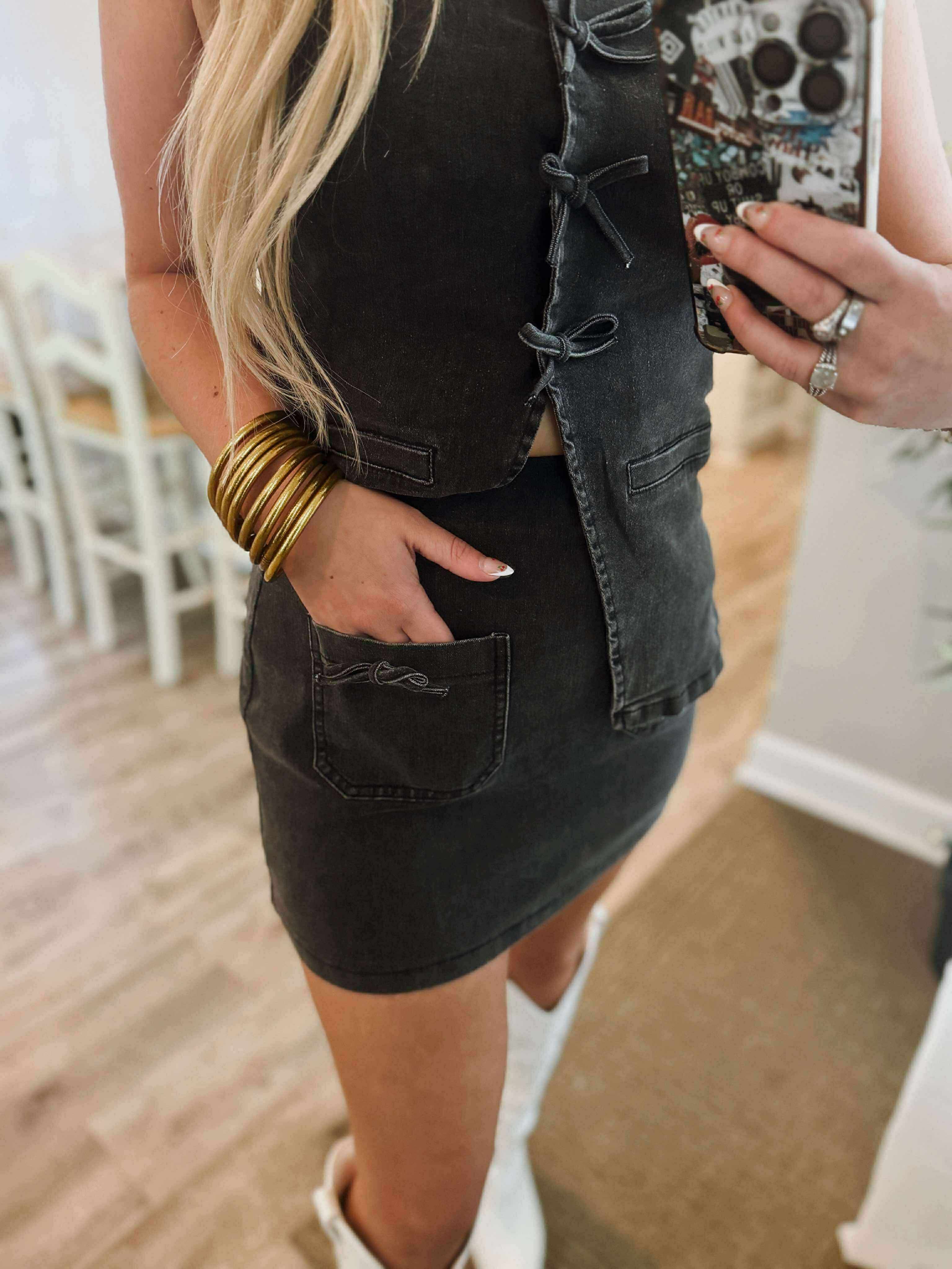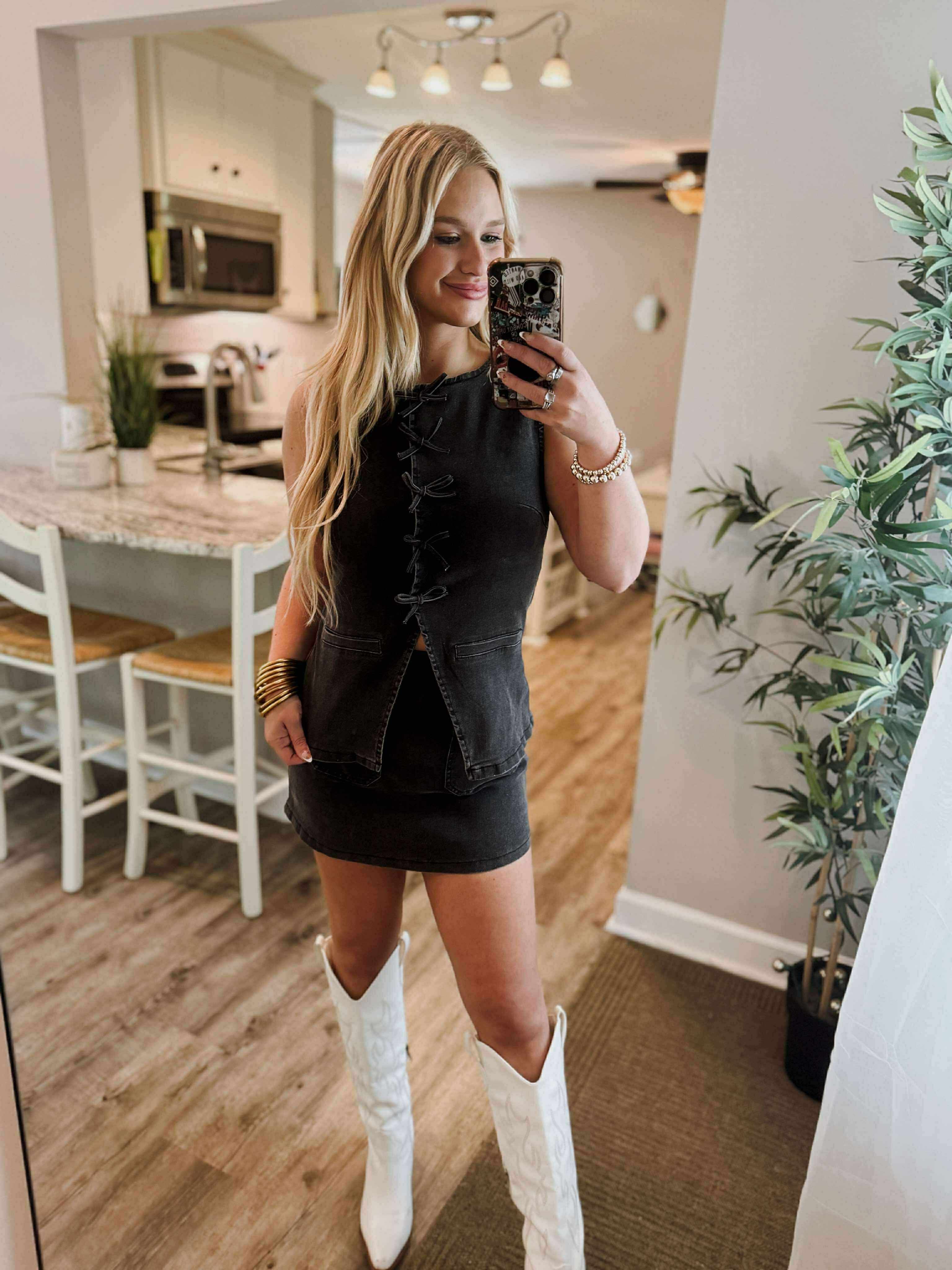 Denim Vest With Snap Button And Ribbon Bow Detailing MATCHING SHORTS #CP81092 80%cotton 18%polyester 2%spandex