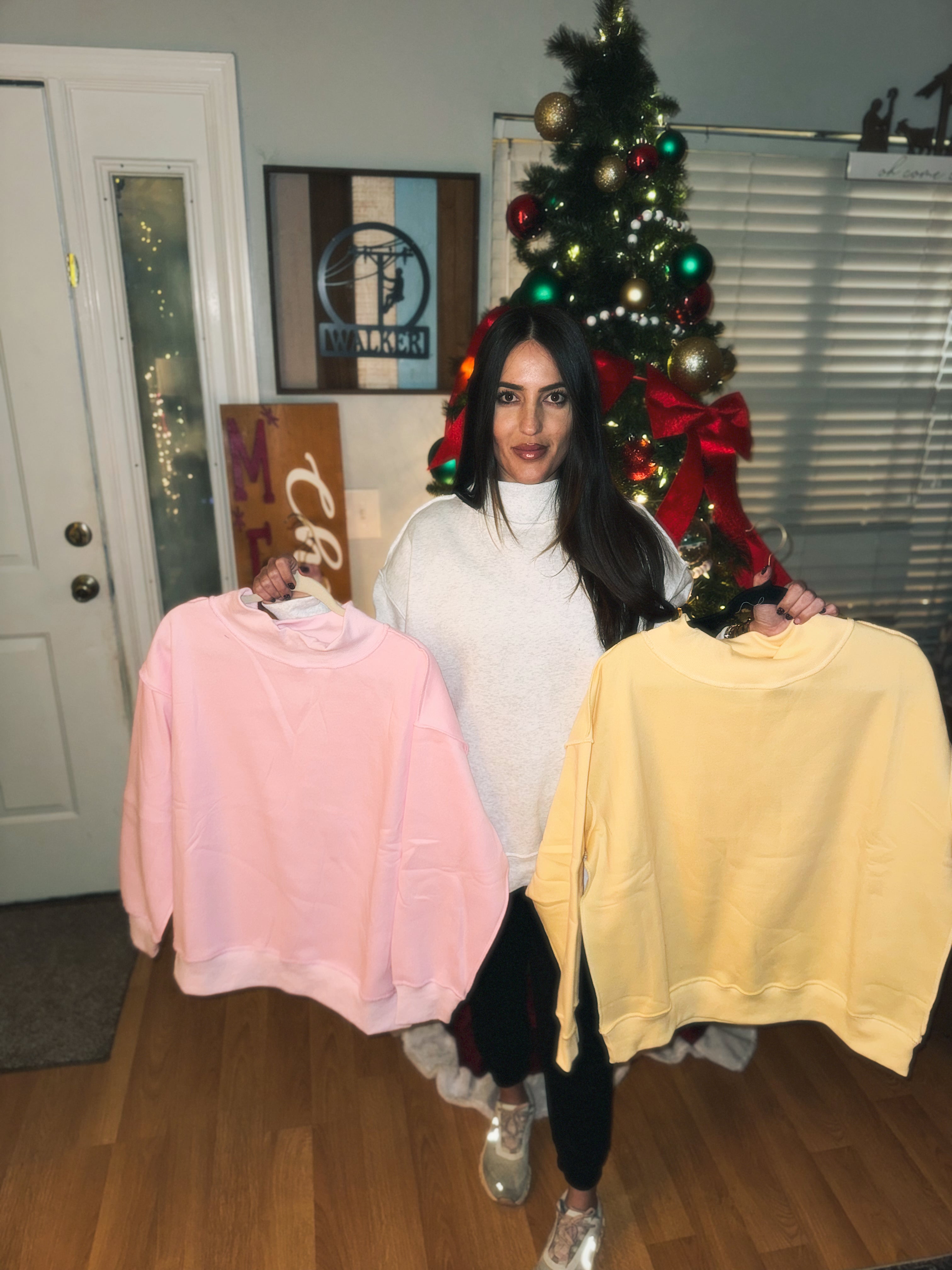 BLACK FRIDAY DEAL - Missy Mock Neck Sweatshirt - Pale Yellow