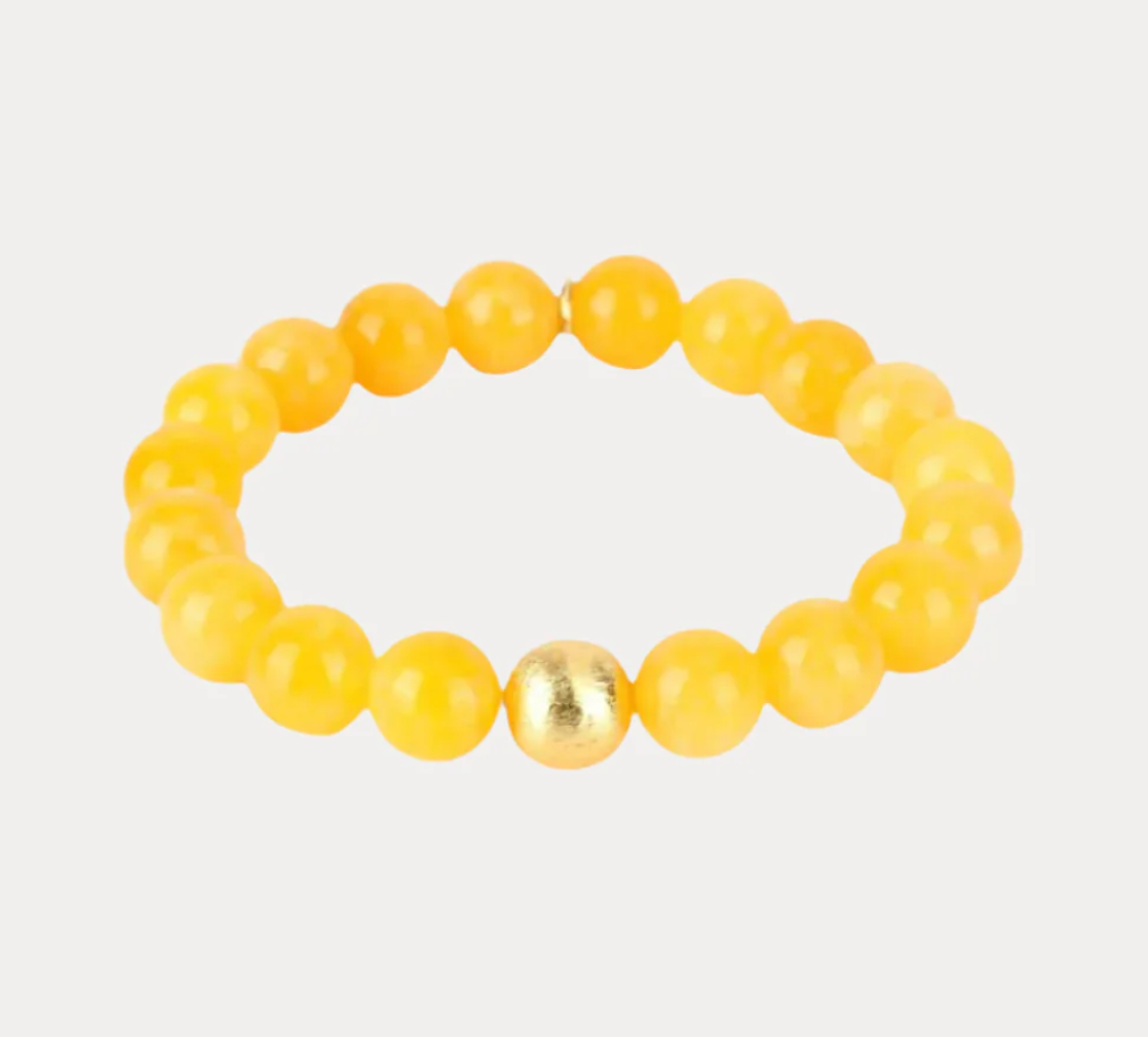 Our Bianca beaded bracelet, a classic Mala design, is adorned with a signature gold bead. Crafted from semi-precious stones, it's the perfect accessory for mindful living and effortless style.
