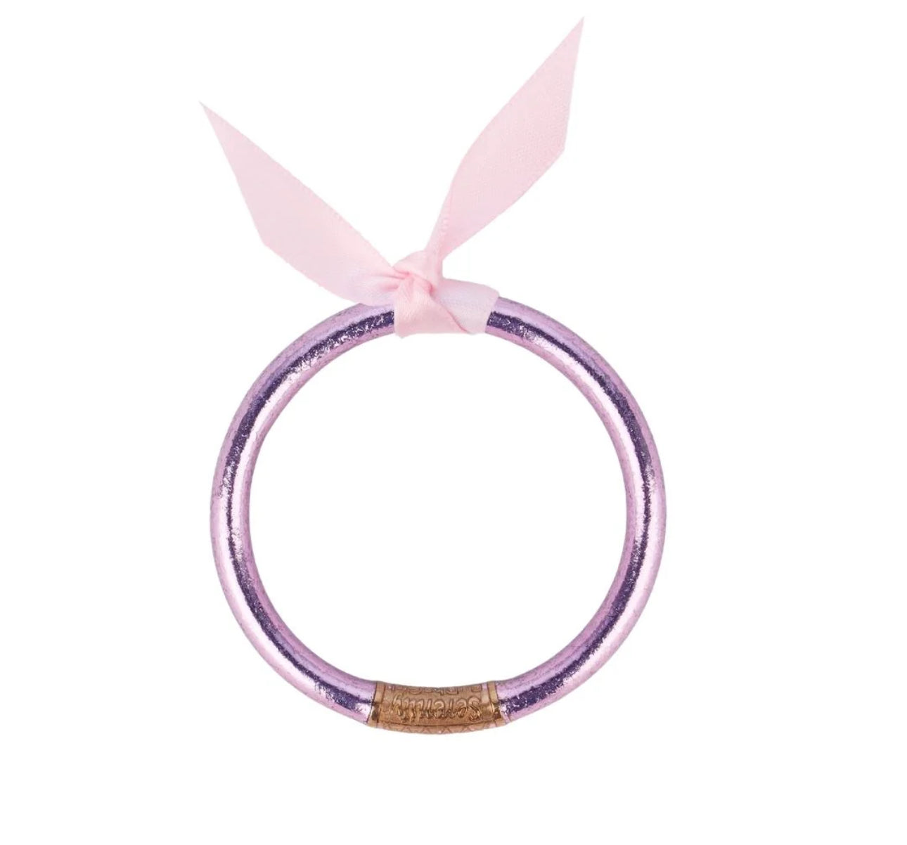 All Weather Bangles™ (AWB™) are the force at BuDhaGirl. These amazing bangles are weightless, soundless, waterproof and TSA proof. Each of the nine bangles in the set is meant to represent an intention for your day. As you put them on in the morning, affirm your intentions for your day, and when you remove them in the evening, fill yourself with thoughts of gratitude. This daily ritual will settle your mind at the beginning and end of each day. Gold AWB are made of flexible, polyvinyl carbonate rings that are hand-filled with gold leaf and sealed with our exclusive BuDhaGirl Serenity Prayer bead. This unique, non-metal material allows you to go from the pool, to the office, and through the airport all without needing to take them off.