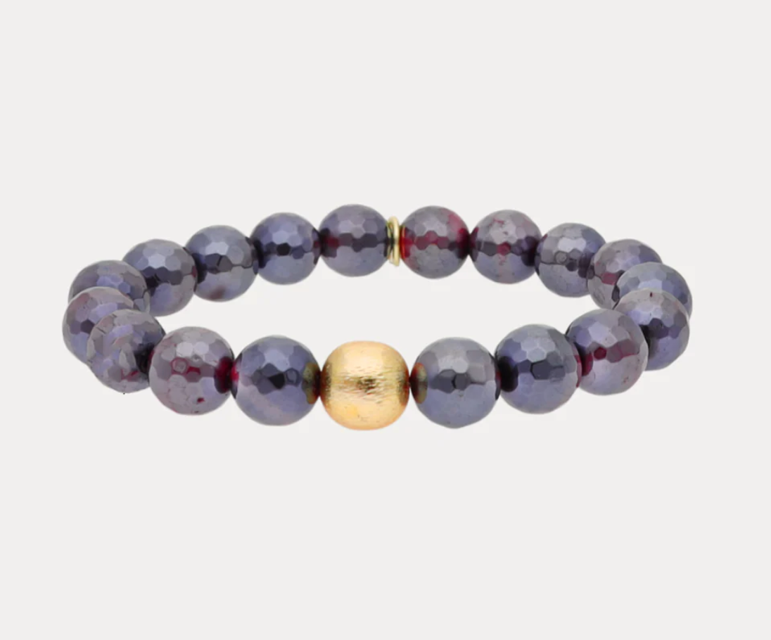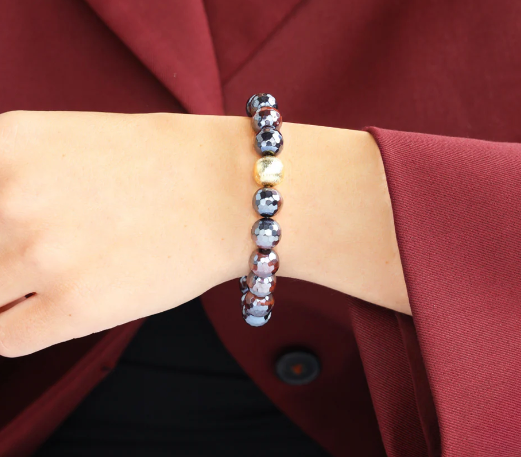 Faceted Red Tiger Eye beads with a golden accent create a bracelet of quiet strength and radiant style, handcrafted for everyday ritual.