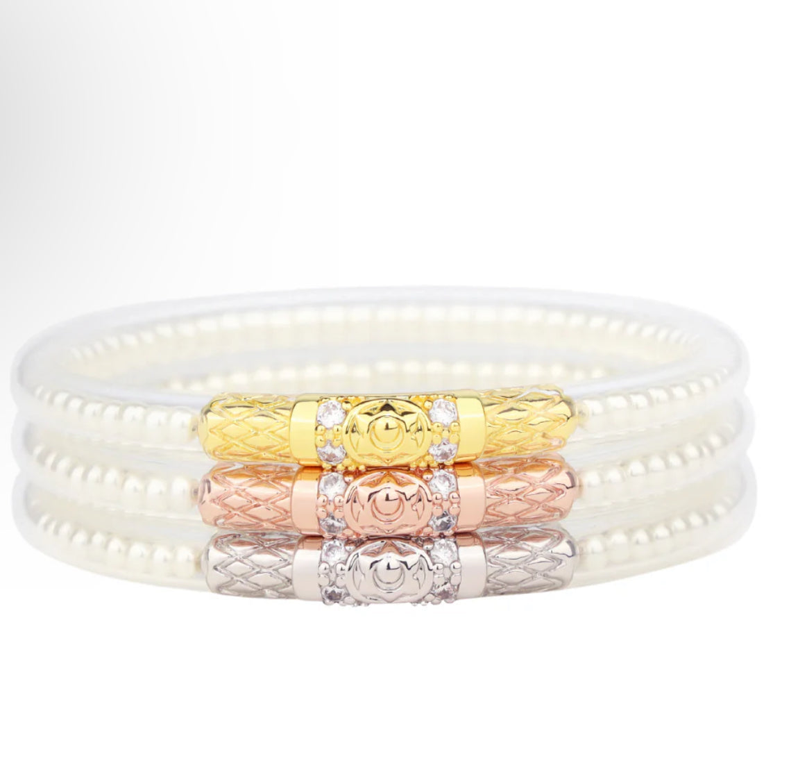 BuDhaGirl - Three Queens All Weather Bangles - White Pearl