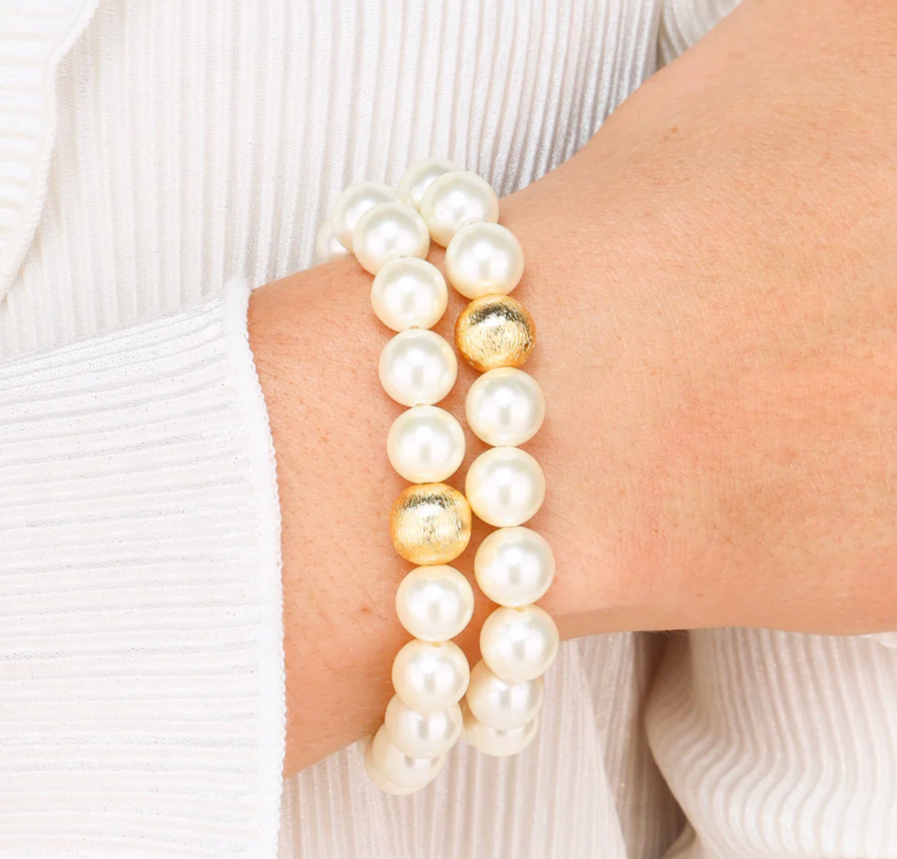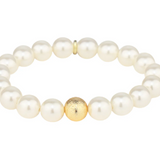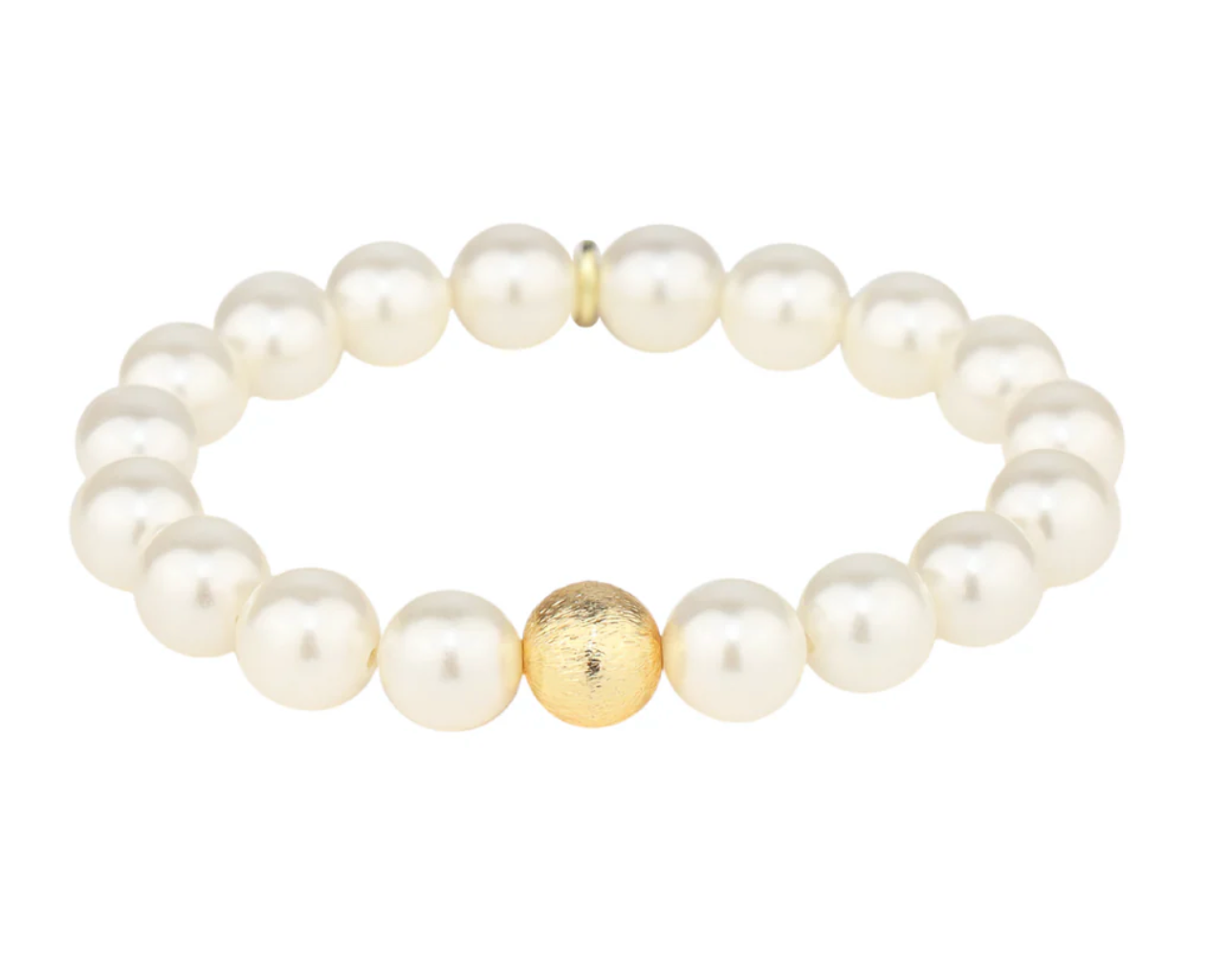 Gorgeous 10mm snowy-white lustrous pearls are highlighted by our famous brushed gold marker bead.