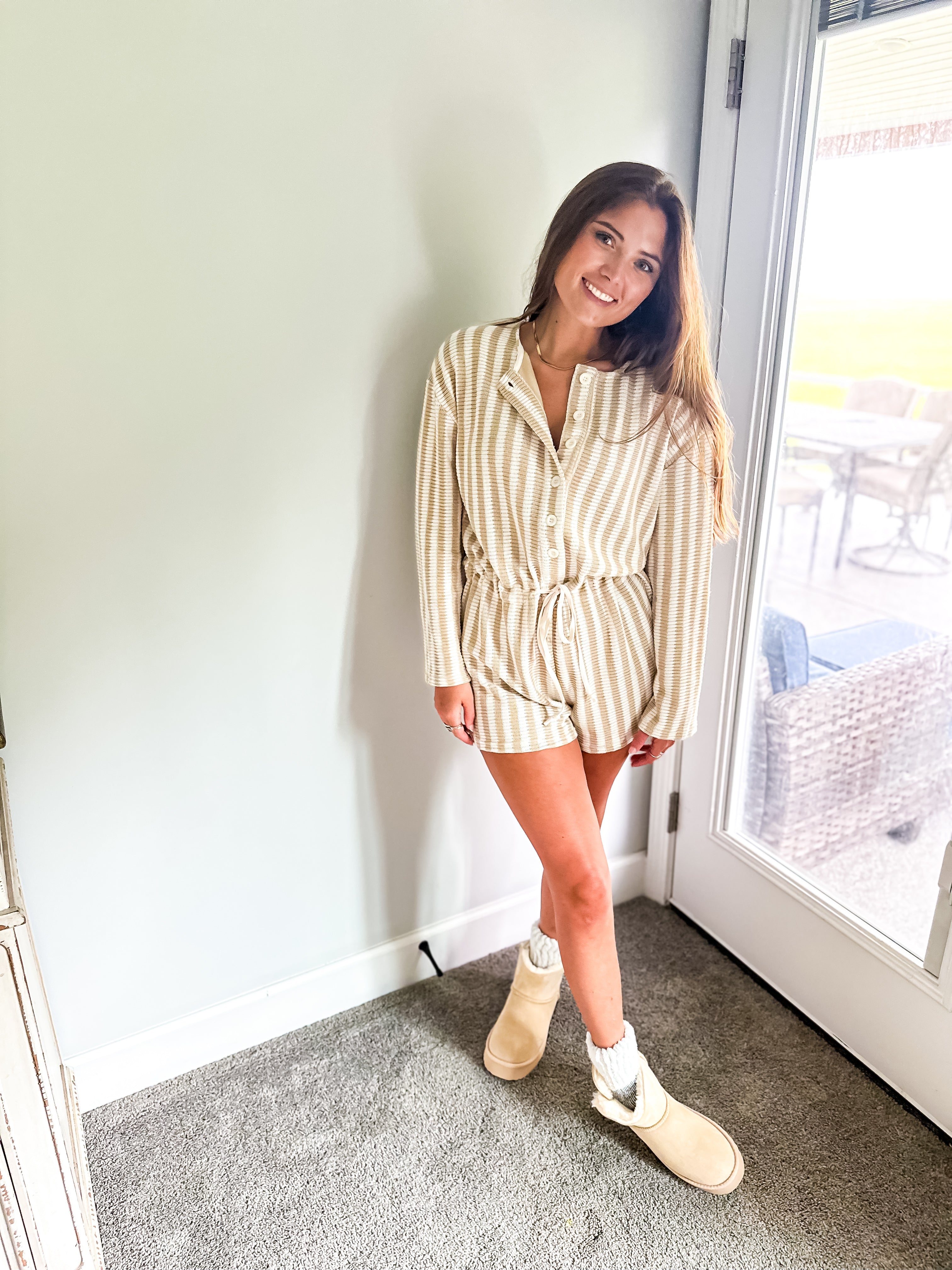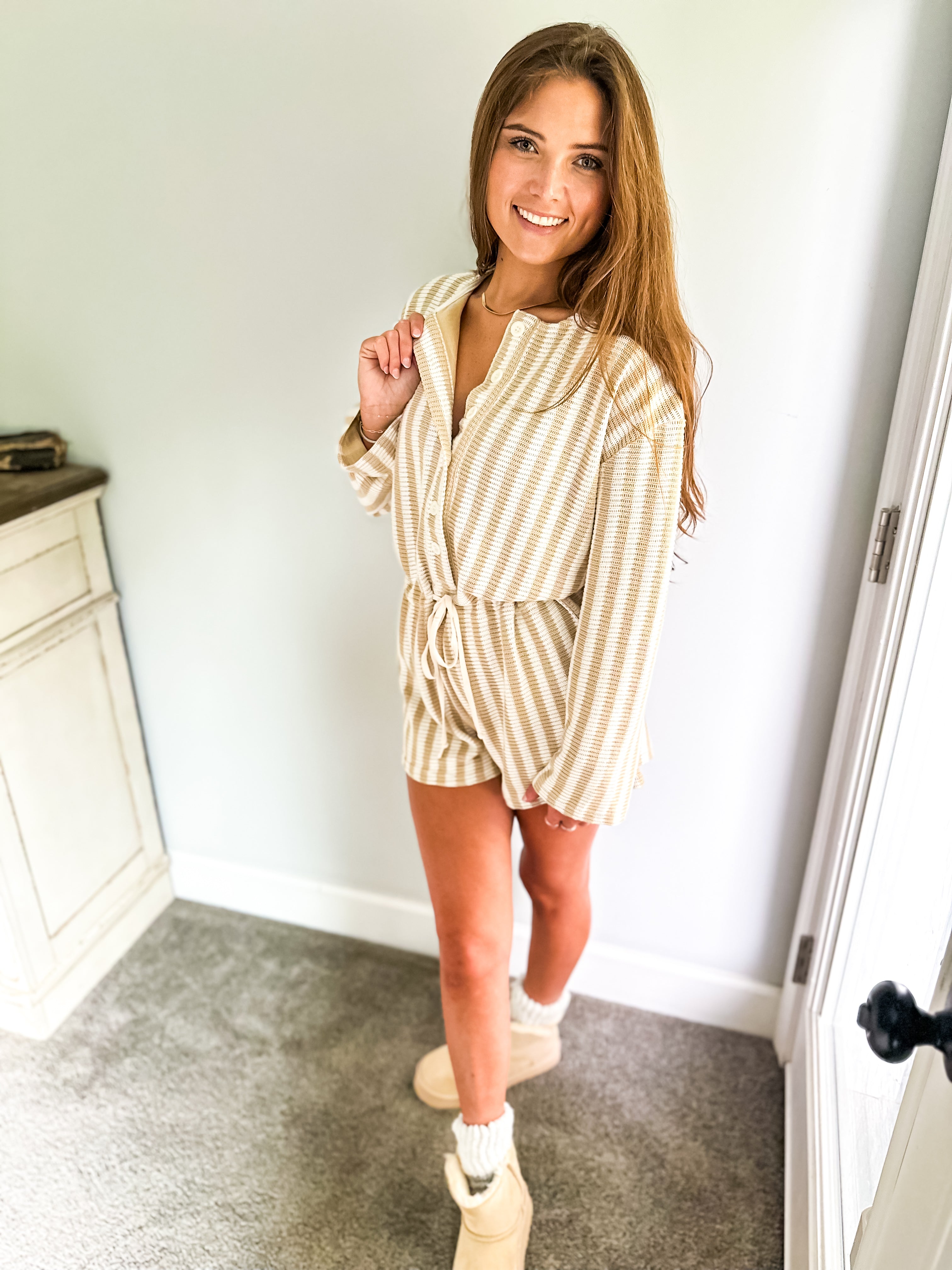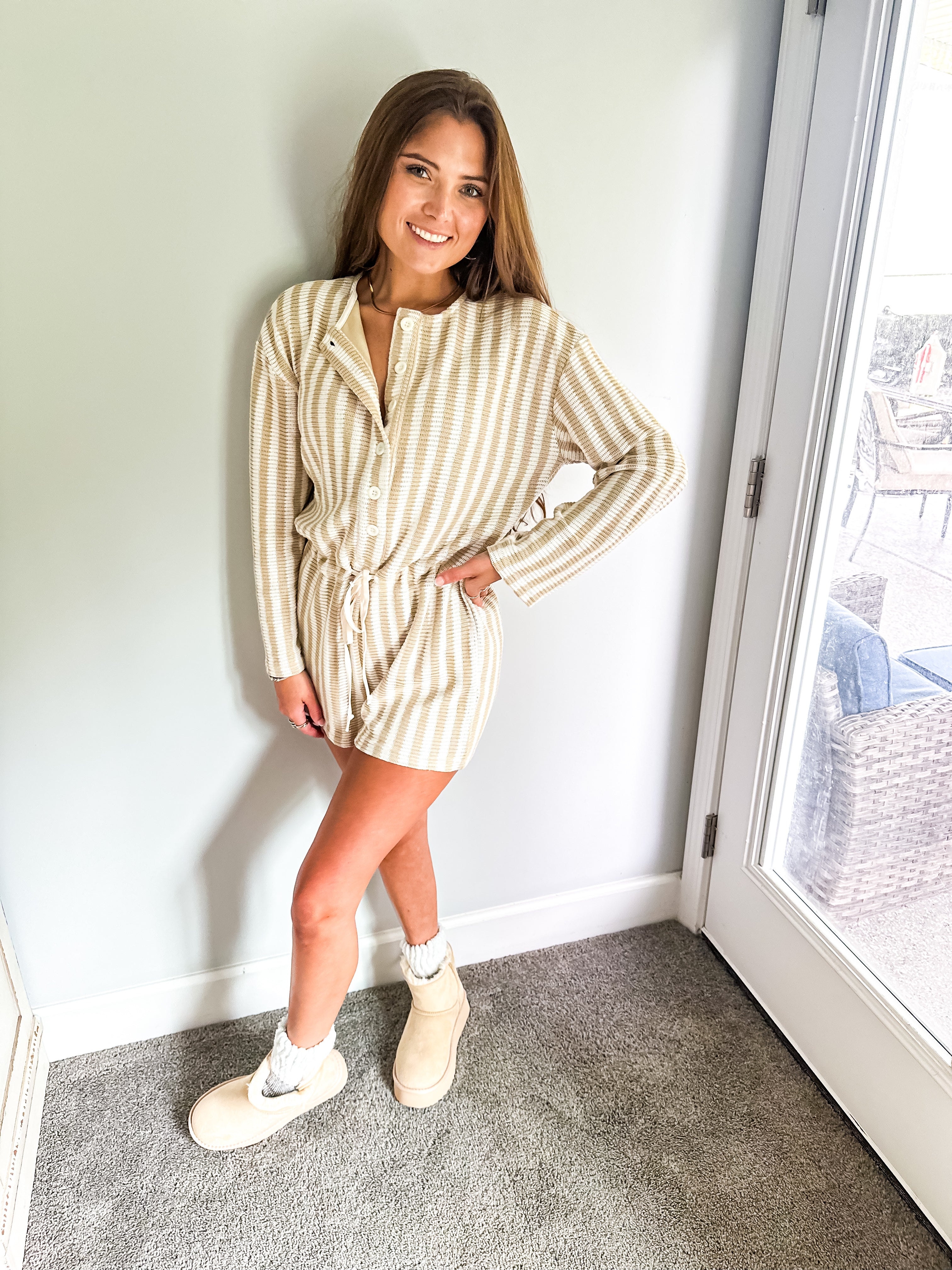 Elevate your casual wardrobe with our By My Side Romper in Olive, a perfect blend of style and comfort. This set features a chic, relaxed fit, making it ideal for lounging at home or casual outings. Crafted from soft, breathable fabric, it ensures all-day comfort while keeping you effortlessly stylish. Material: 64% Polyester 36% Rayon Sizing: TTS - Cheyenne wore a S. |