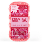 Our Body Bar Sponges include an exfoliating scrubby and are infused with our luxurious body cleanser enriched with Aloe Vera, olive oil, lemon grass, sea kelp extracts, and an abundance of creamy that ensures the ultimate in pampering. Transform an ordinary shower or bath with this all-in-one skin cleanser and body buffer that cleans and exfoliates simultaneously. Perfect travel companion! Reload, refill, and replenish your super star Body Bar Sponge with our coordinating super star Body Wash.