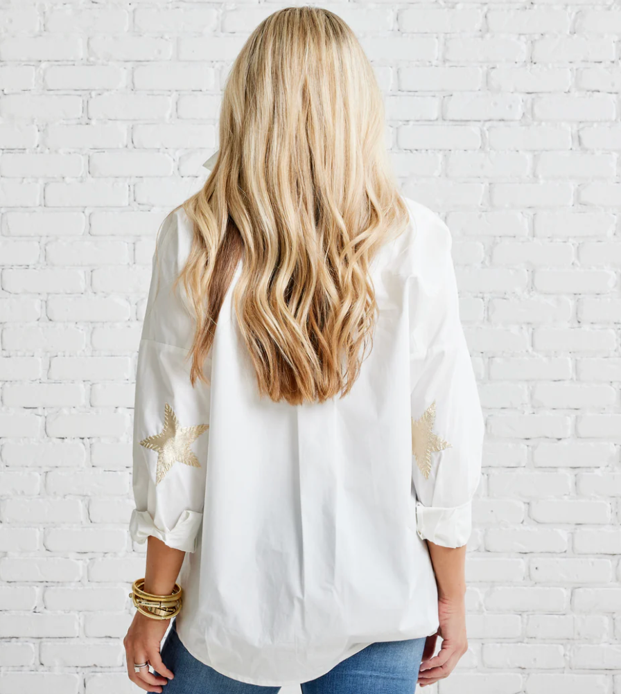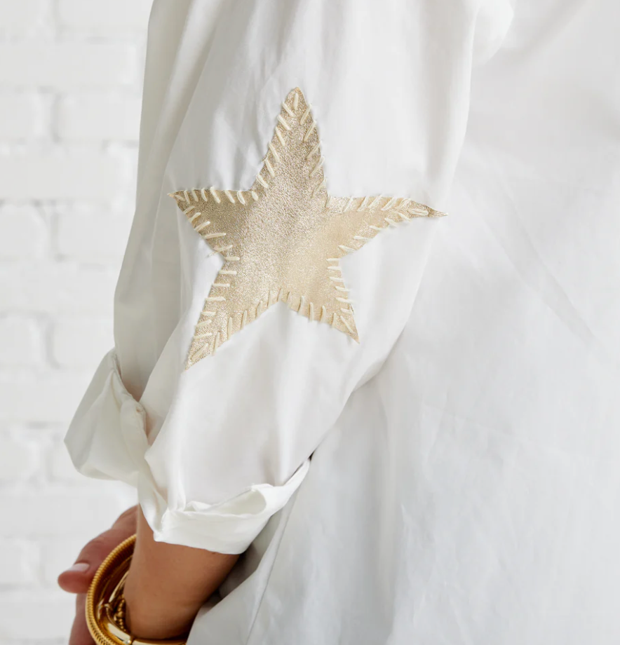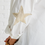White Top with Gold Champagne Star Elbow Details