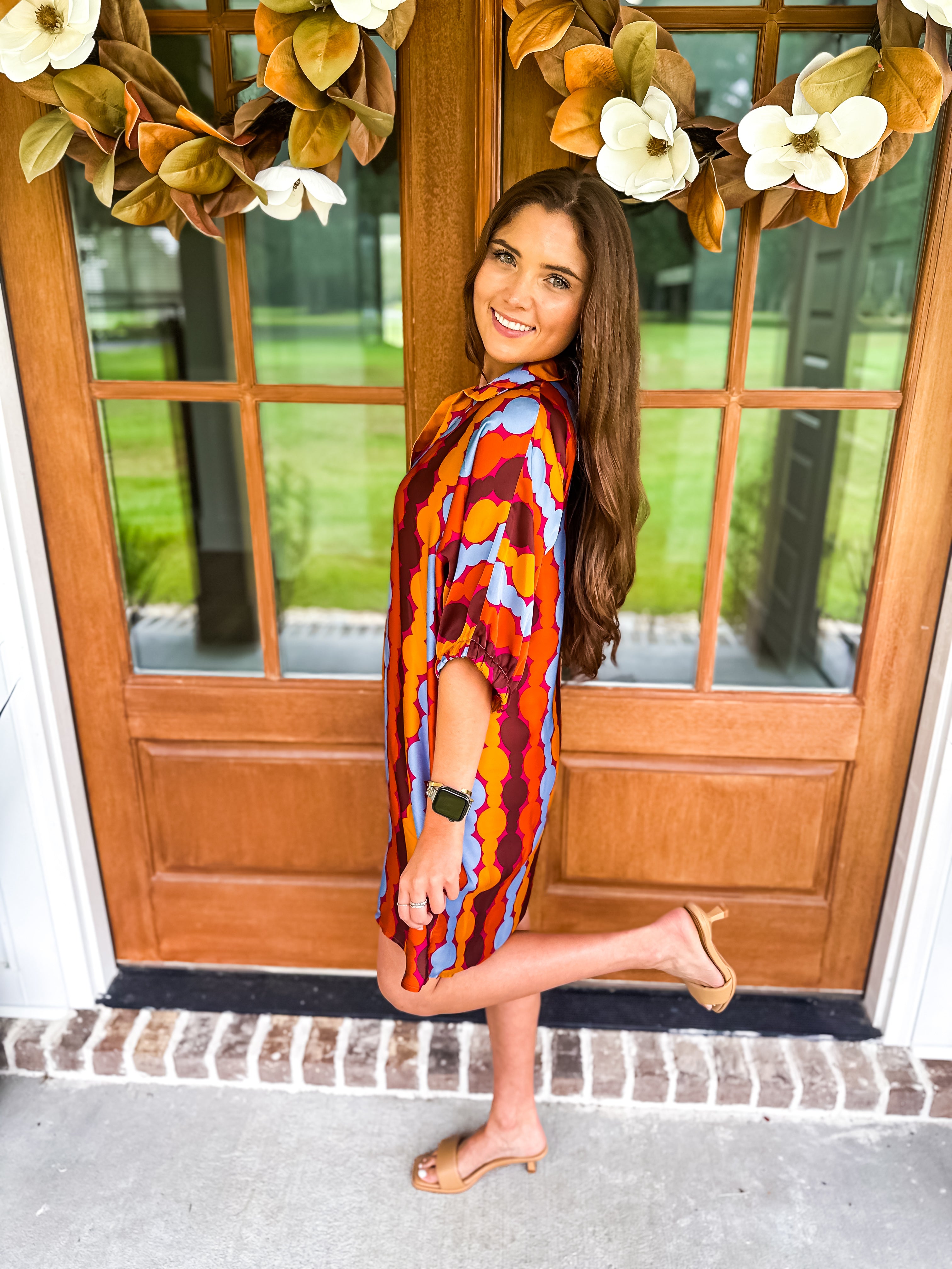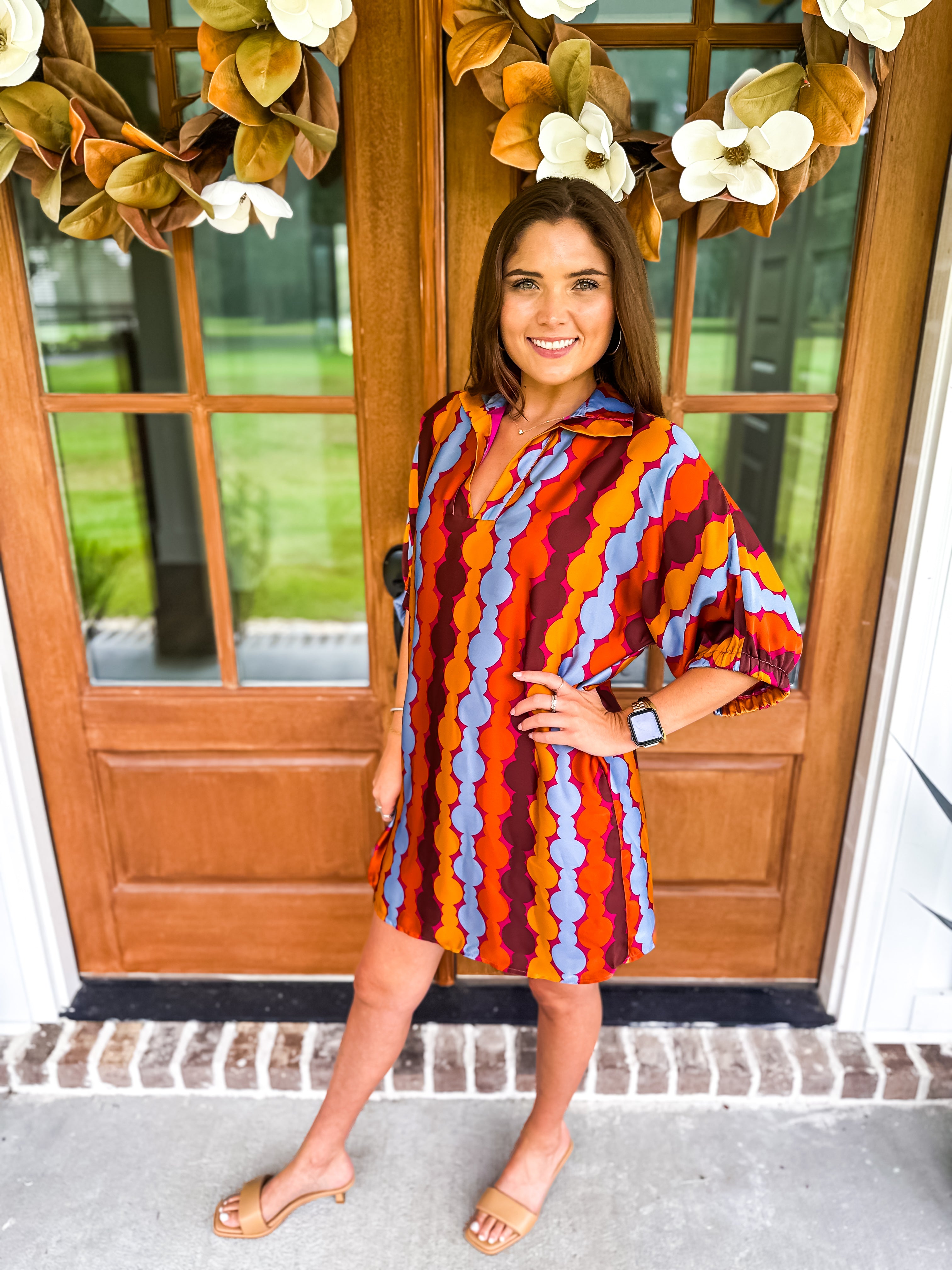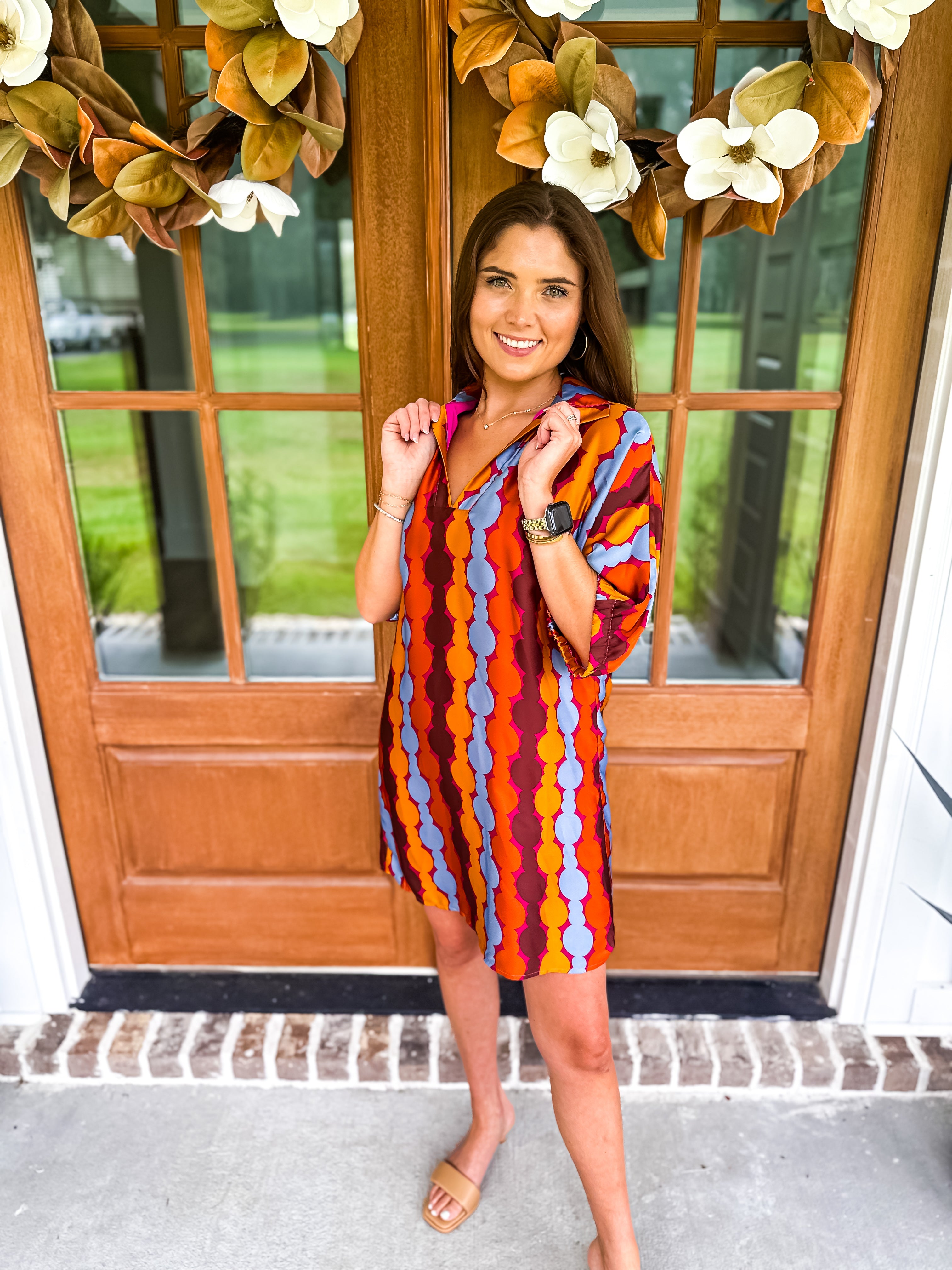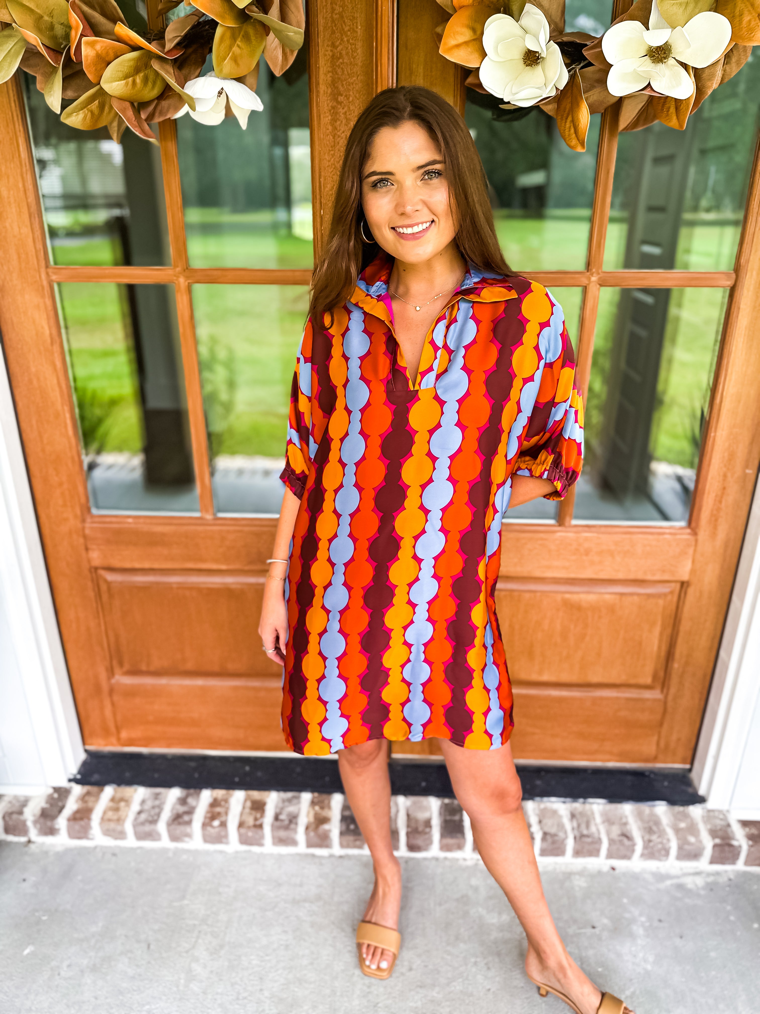 Embrace autumn vibes with our mini dress, showcasing deep fall tones in a stunning strung bead pattern. Perfect for making a statement wherever you go!