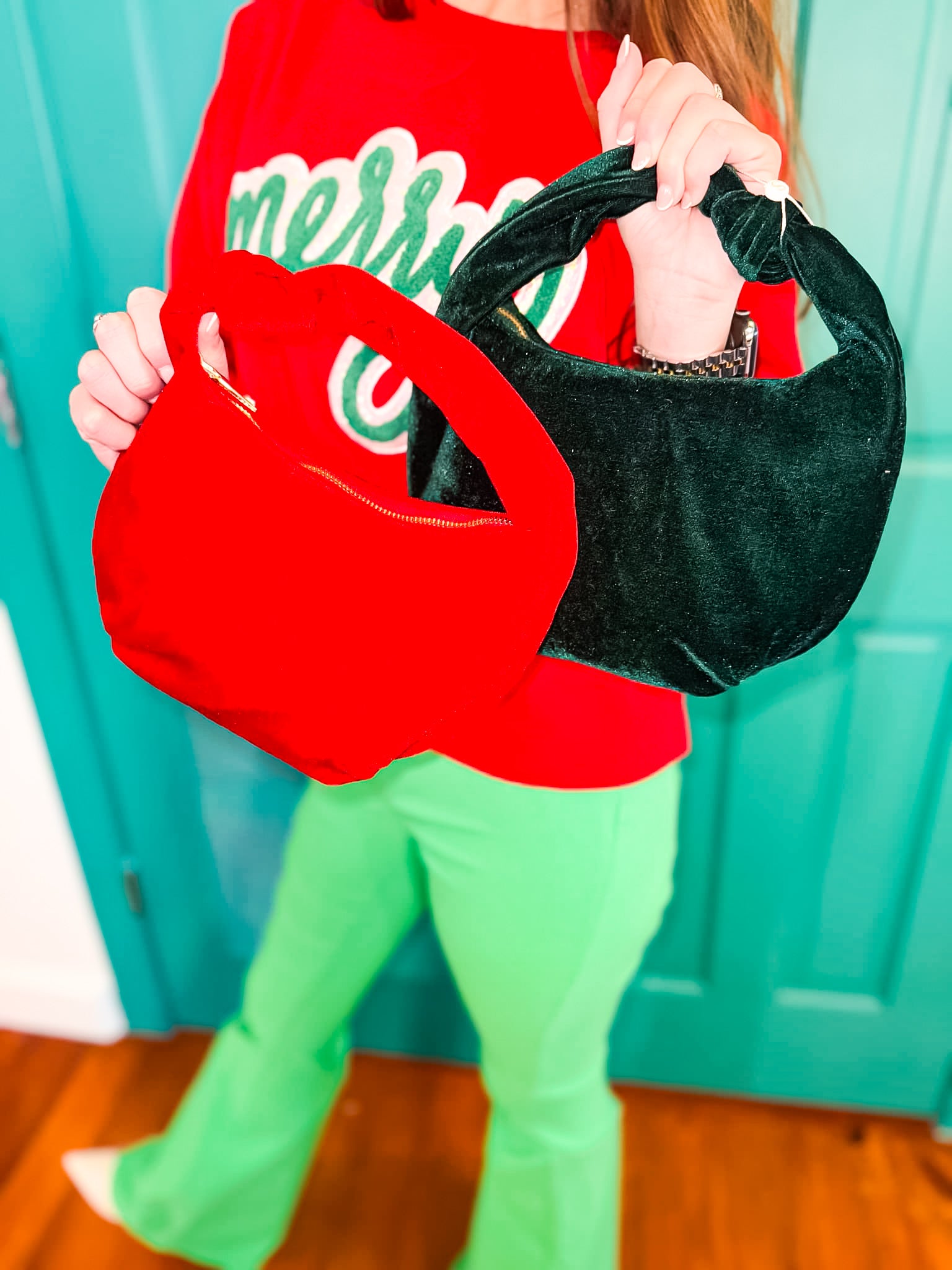 Give your winter accessories a chic update with Shiraleah’s Chrissy Knotted Velvet Top Handle Bag. This petite handbag is made from velvety-soft material in a festive red color and its unique top handle silhouette features an elegant knot detail. Pair with the matching Velvet Bow Clip or other items from Shiraleah to complete your look!
