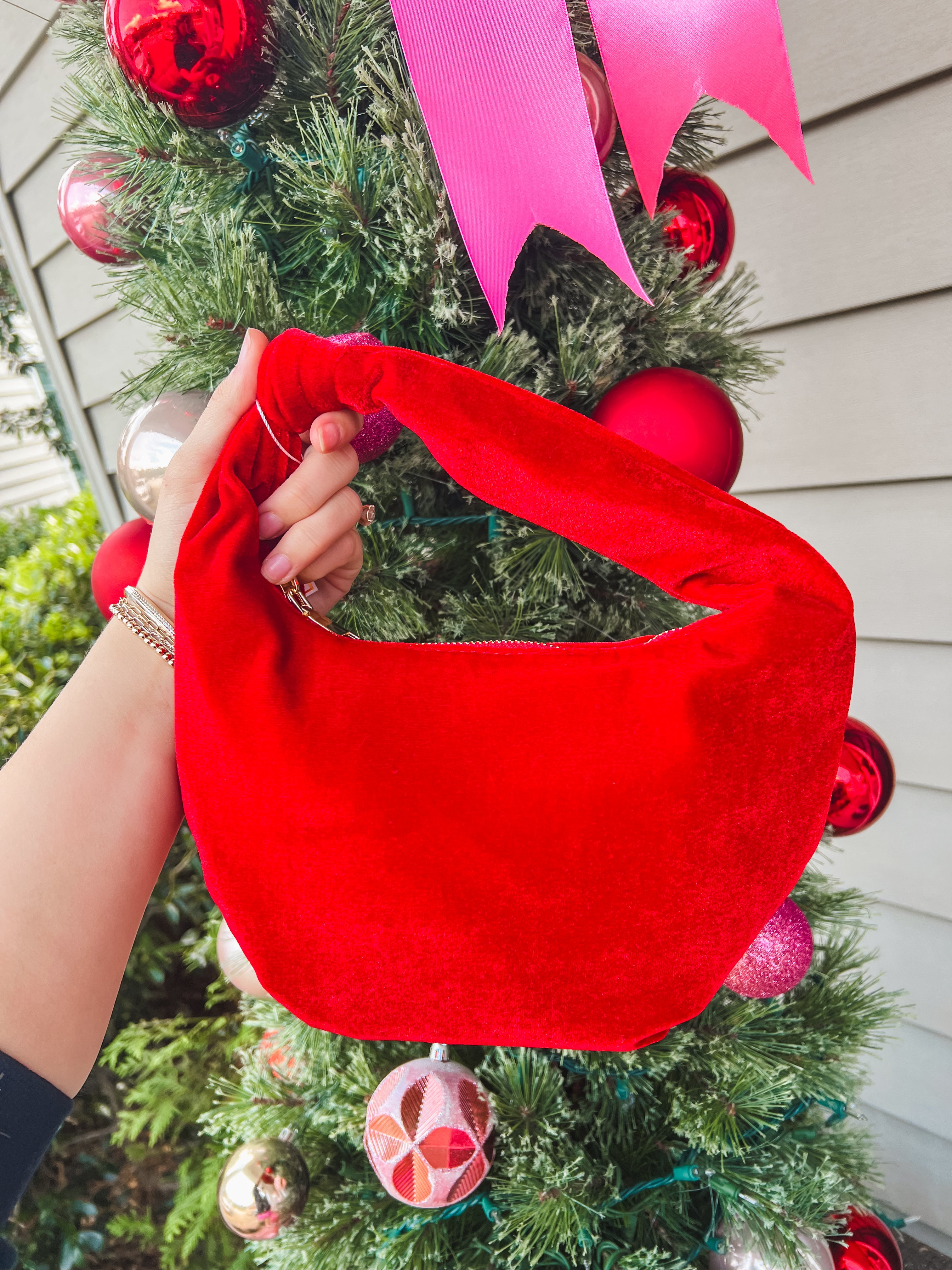 Chrissy Knotted Velvet Top Handle Bag - Red