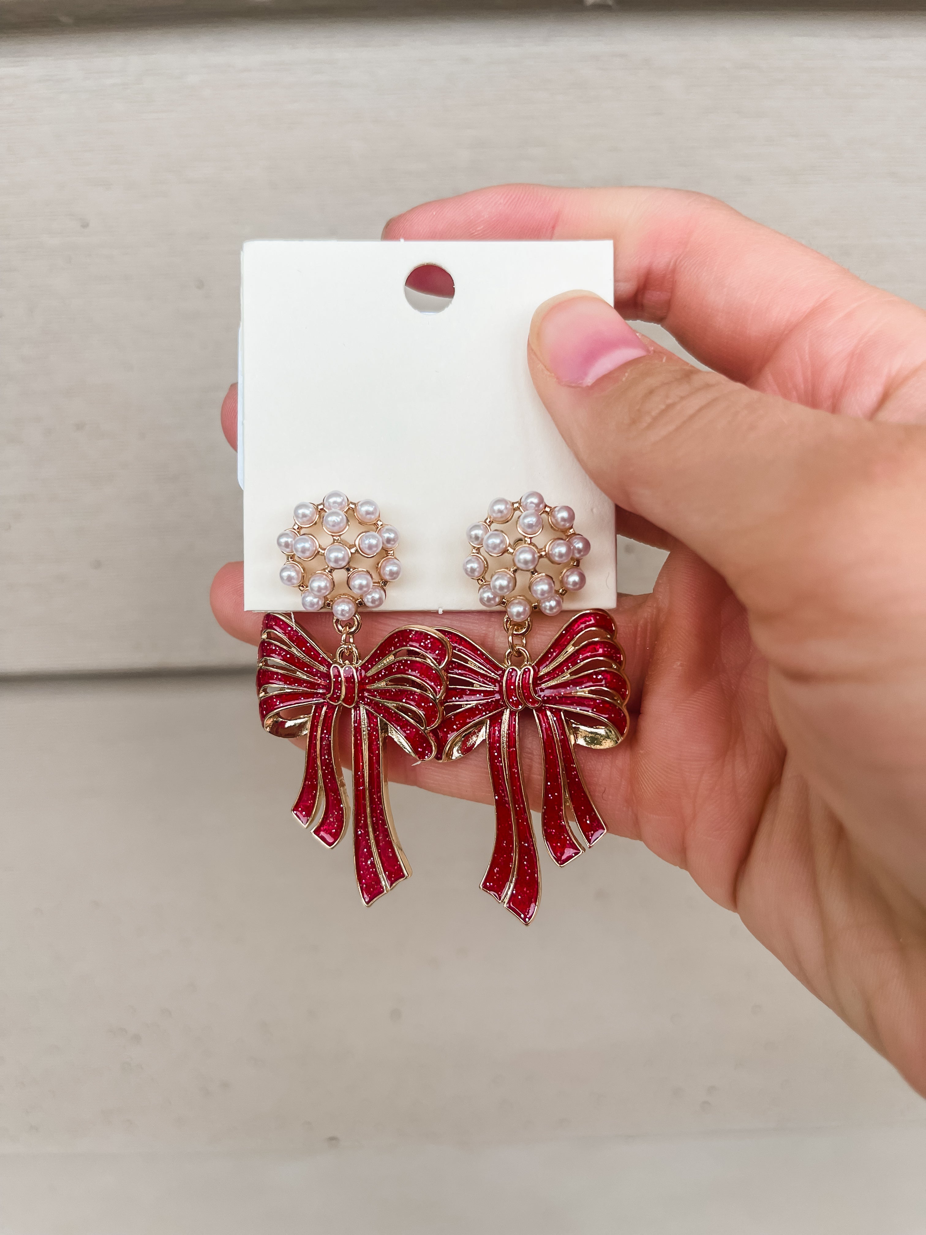 Get in the Holiday Spirit and have these while you sport all your favorite Holiday items. They have a red bow dangling with a pearl stud piece. They would look great with everything.