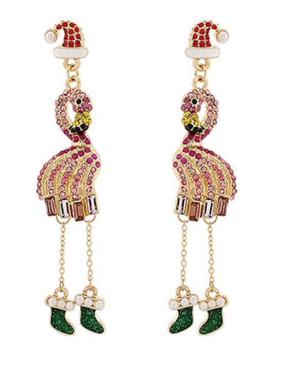 Christmas Santa Hat Flamingo Earring - Final Sale