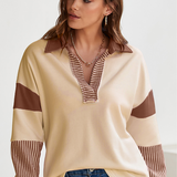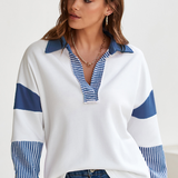 Color Block Johnny Collar Long Sleeve Sweatshirt