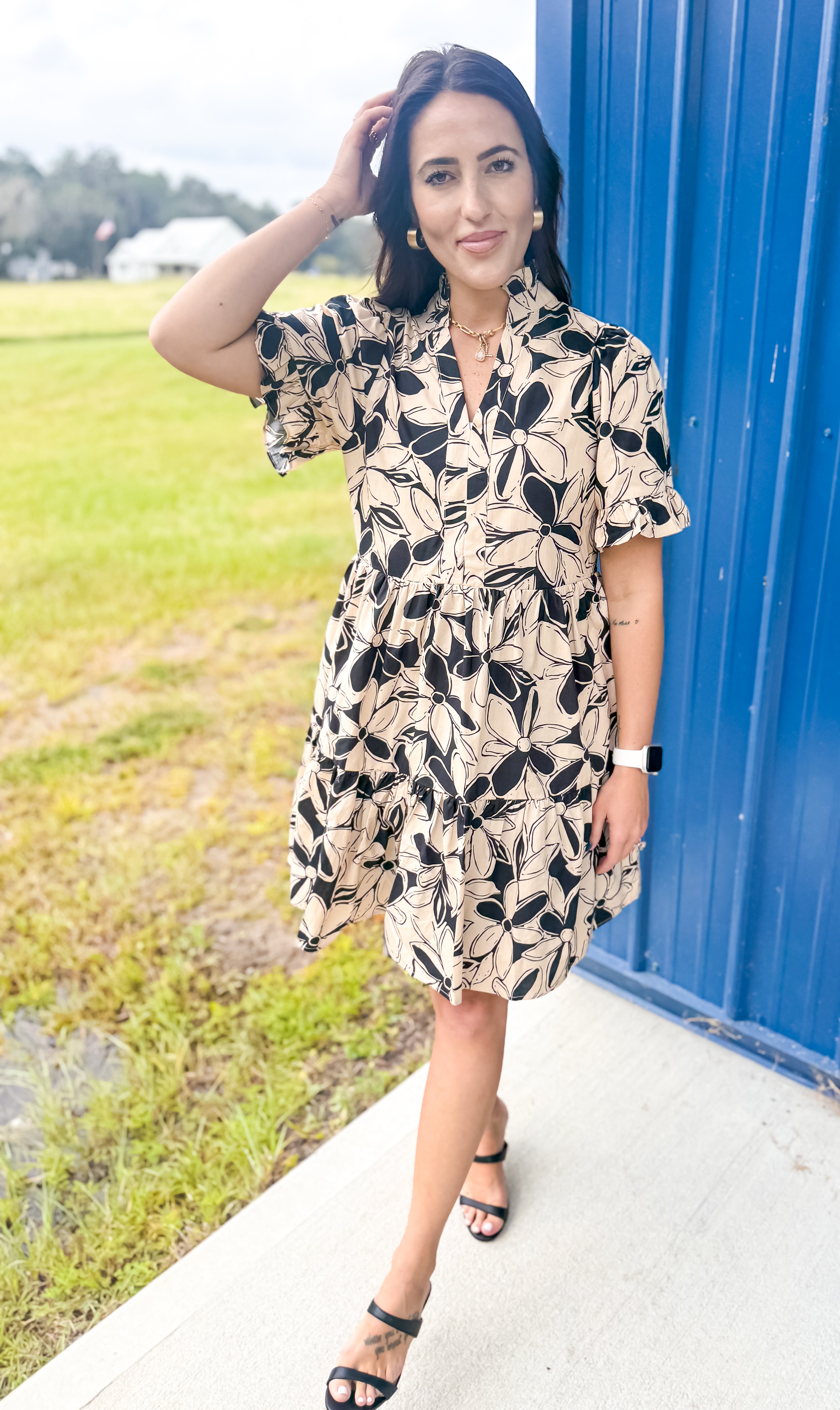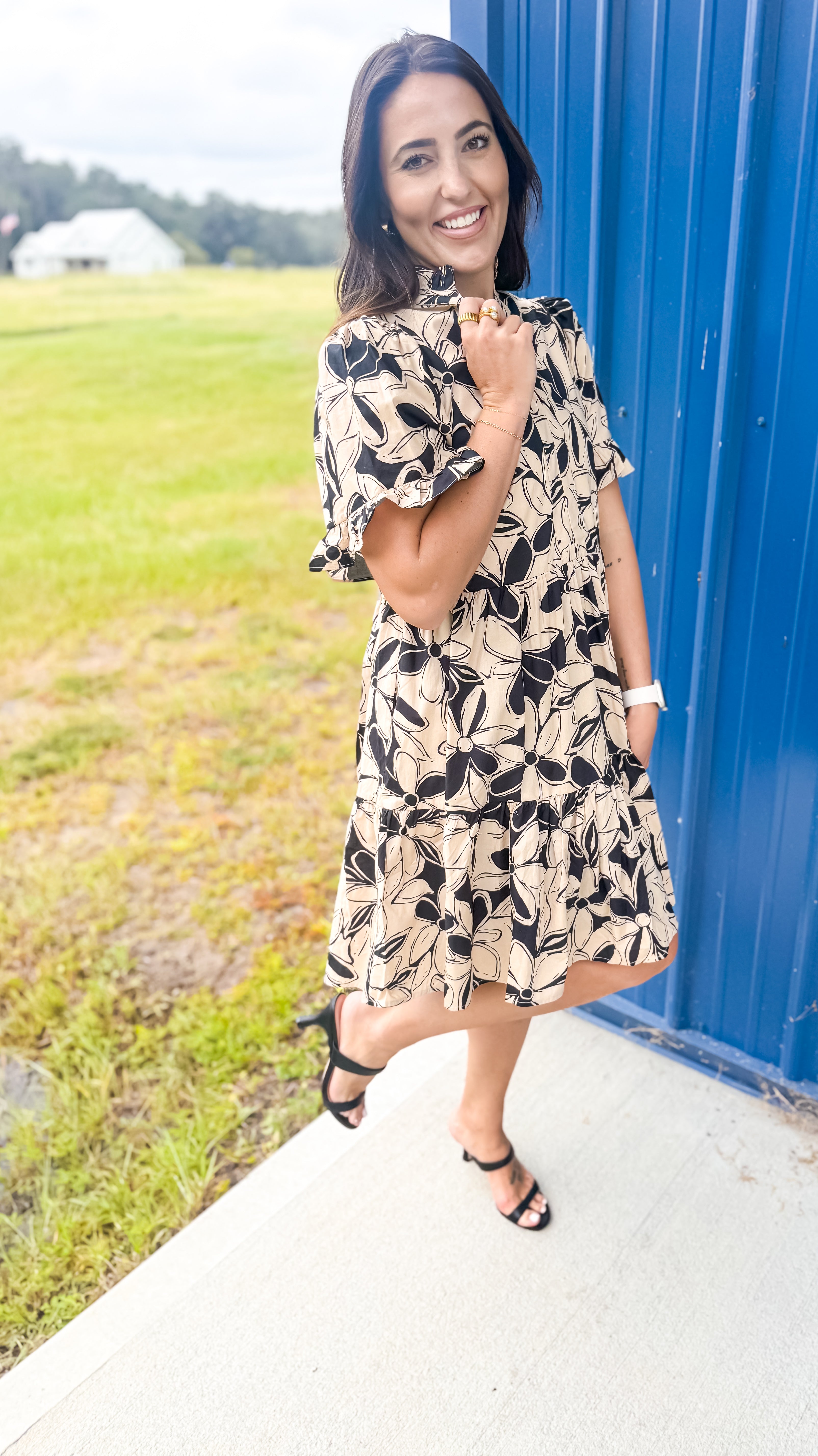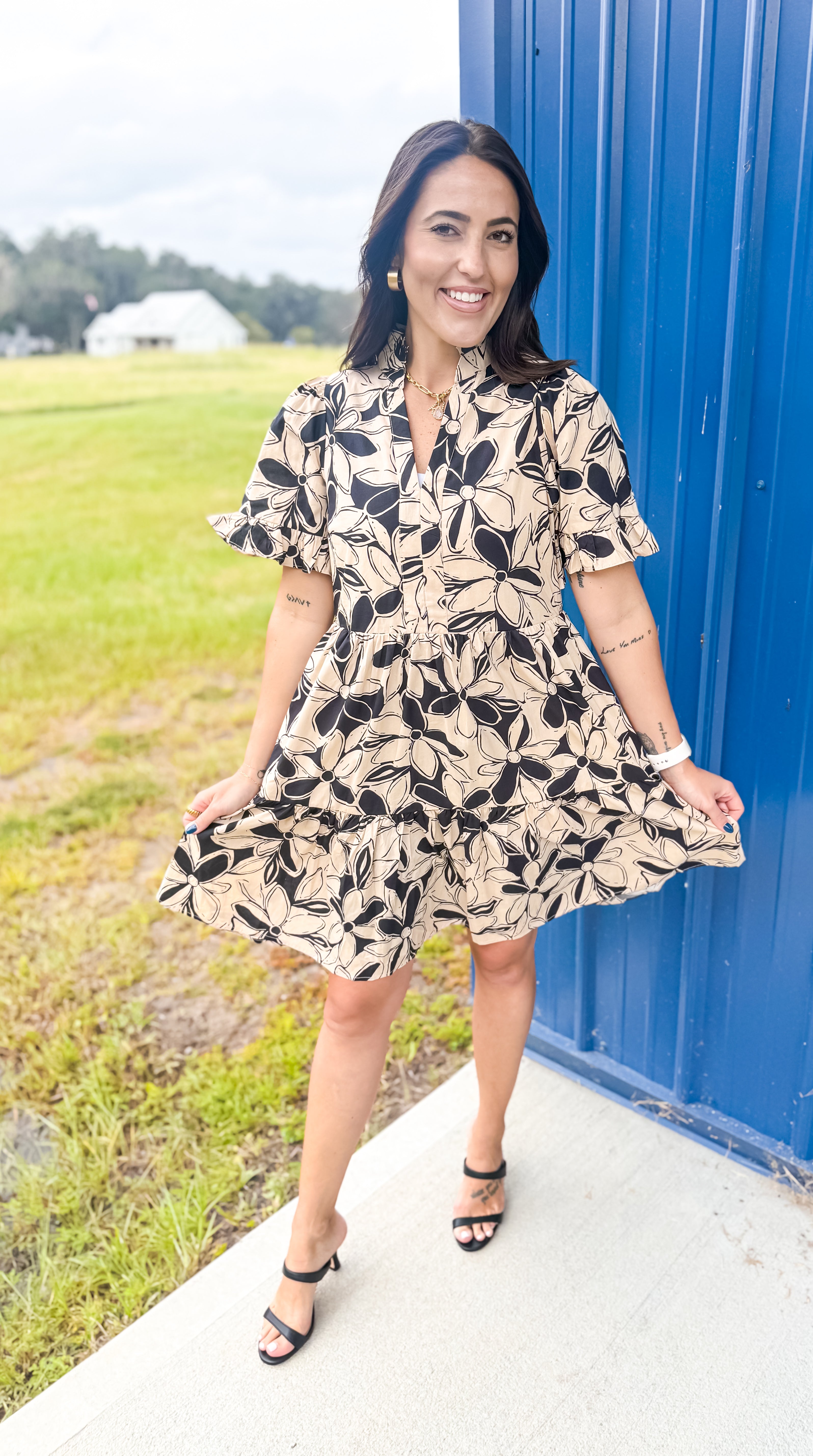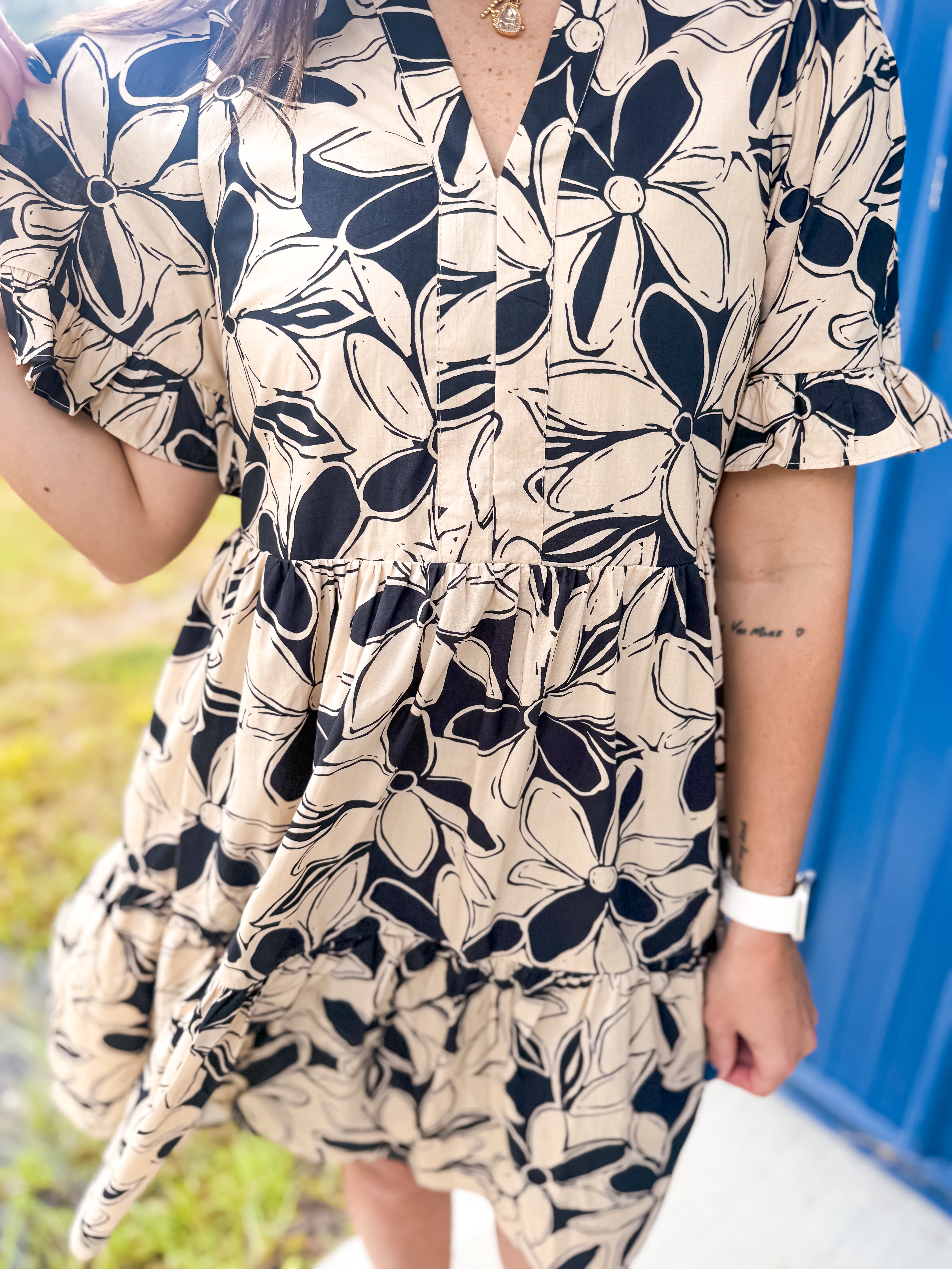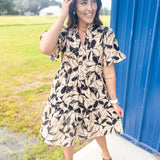 Step out in style with our Colors In The Fall Dress in Taupe, the perfect blend of charm and elegance. This dress features a beautiful floral print on a classic taupe base, with neutral colors that make the design perfect for any occasion. The V-neckline is adorned with a delicate ruffle, complementing the short sleeves, which also have a playful ruffle detail. Fully lined for comfort, this mini dress offers a modest length with the convenience of side pockets. Perfect for any occasion, this dress combines femininity with practicality in a way that’s effortlessly chic.