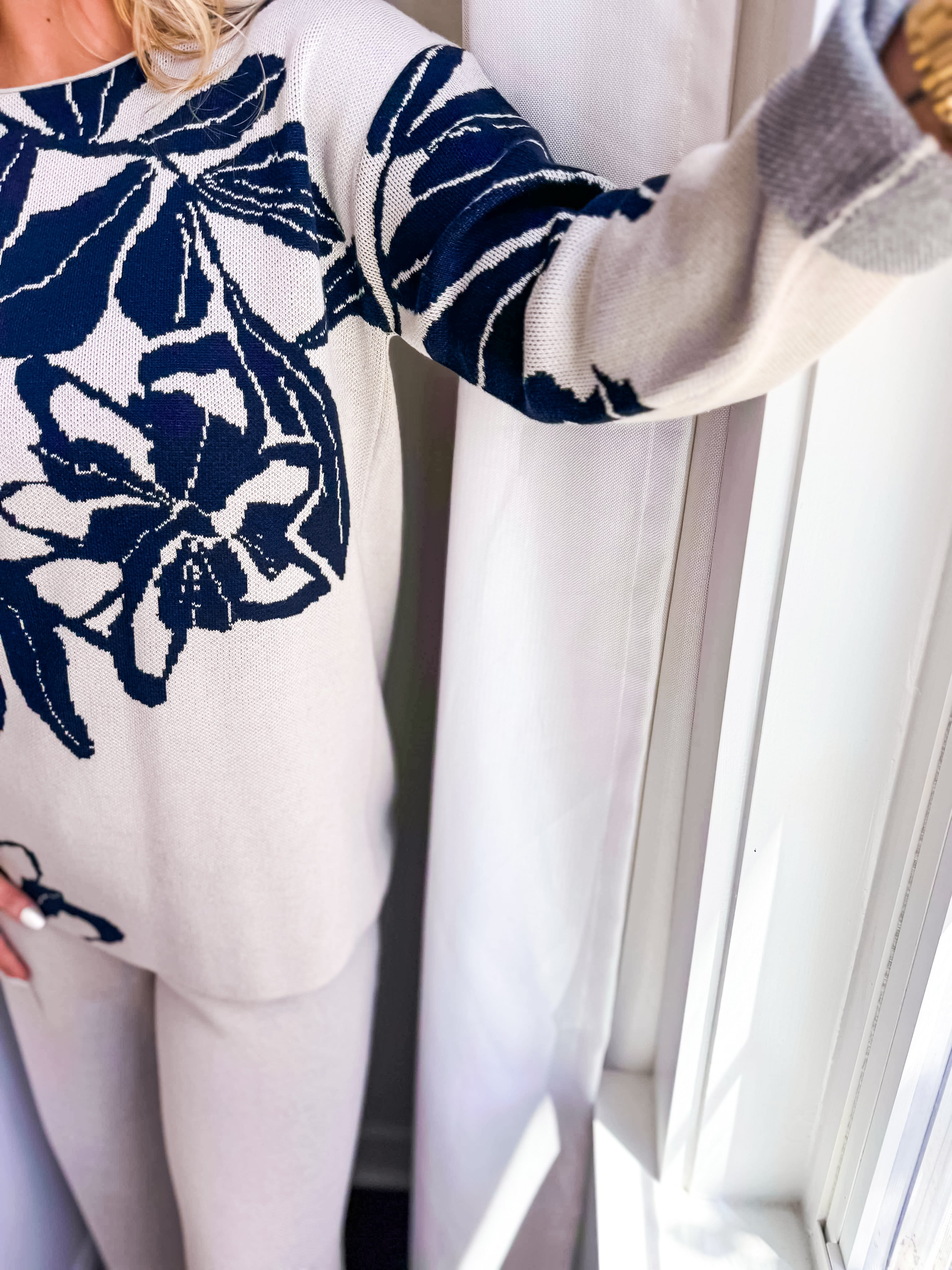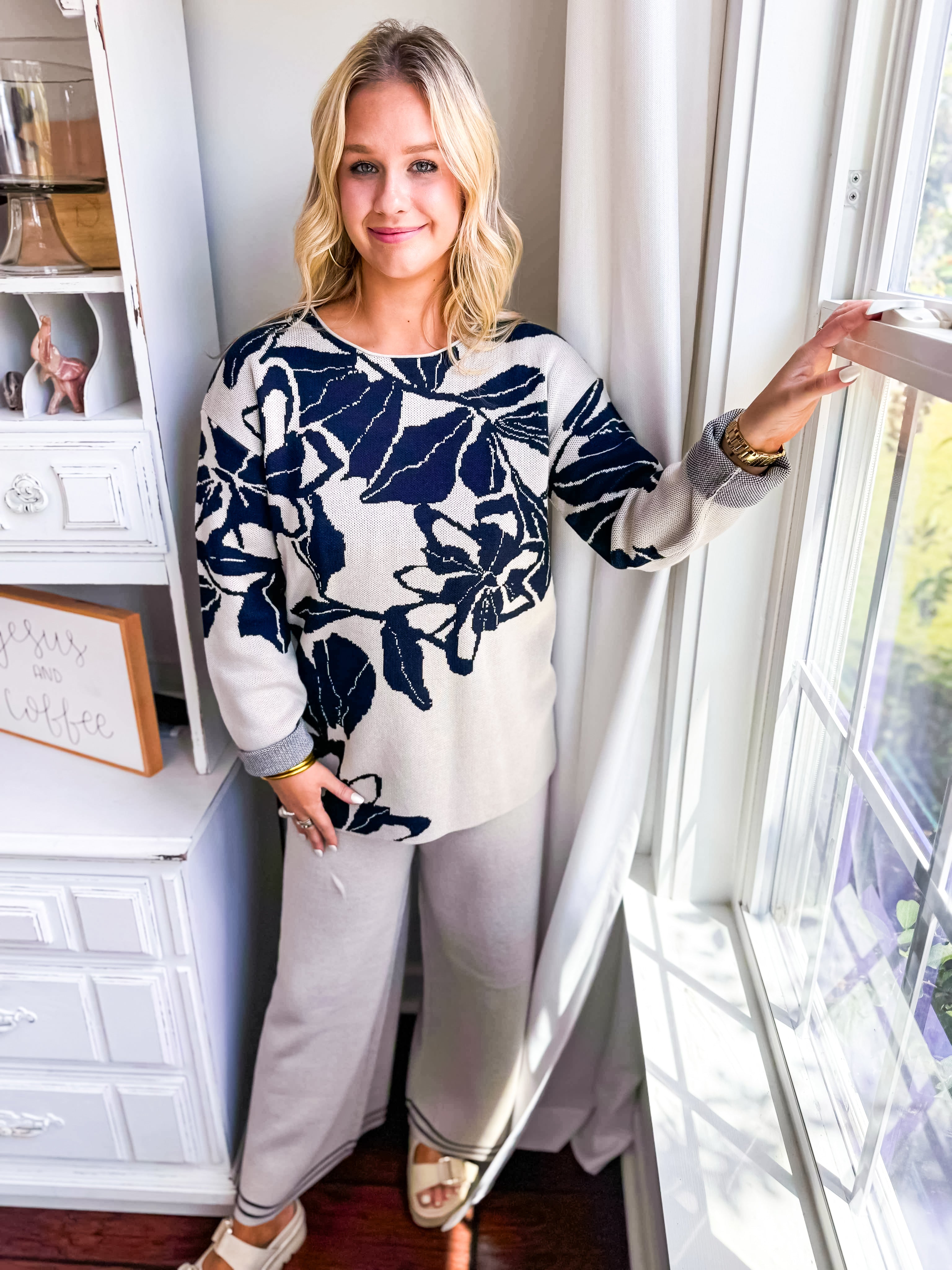Introducing our Coming For You Set in Taupe. This set will have you SWOONING! It is a true length pant set and a long sleeve top to match. The top has a flower jacquard print that is so classy and absolutely beautiful. It is a lightweight sweater material - so it is a great transitional piece for all year around. Pair her with a cute pair of boots to bring her into Fall or a pair of wedges to keep her a little casual!