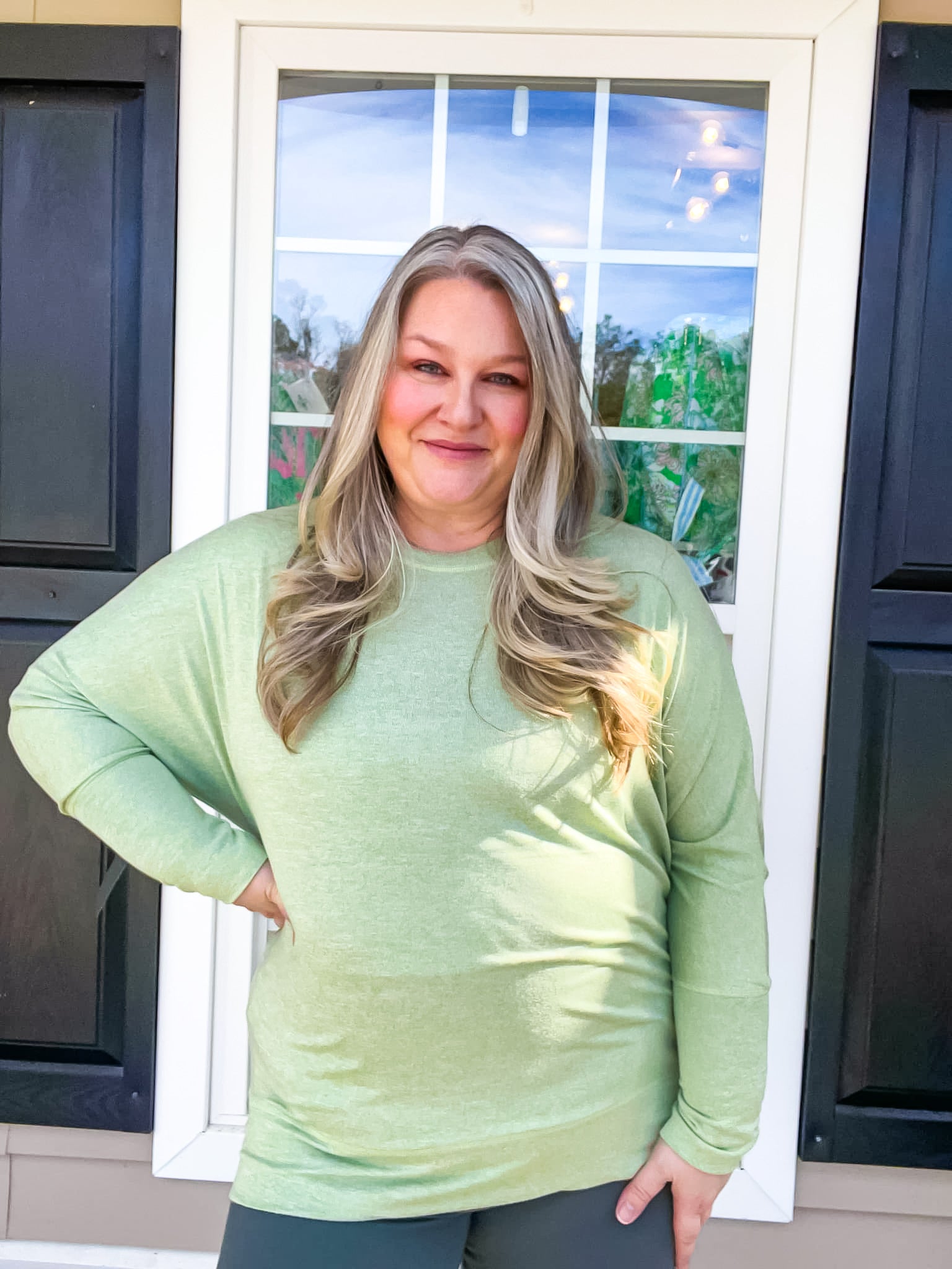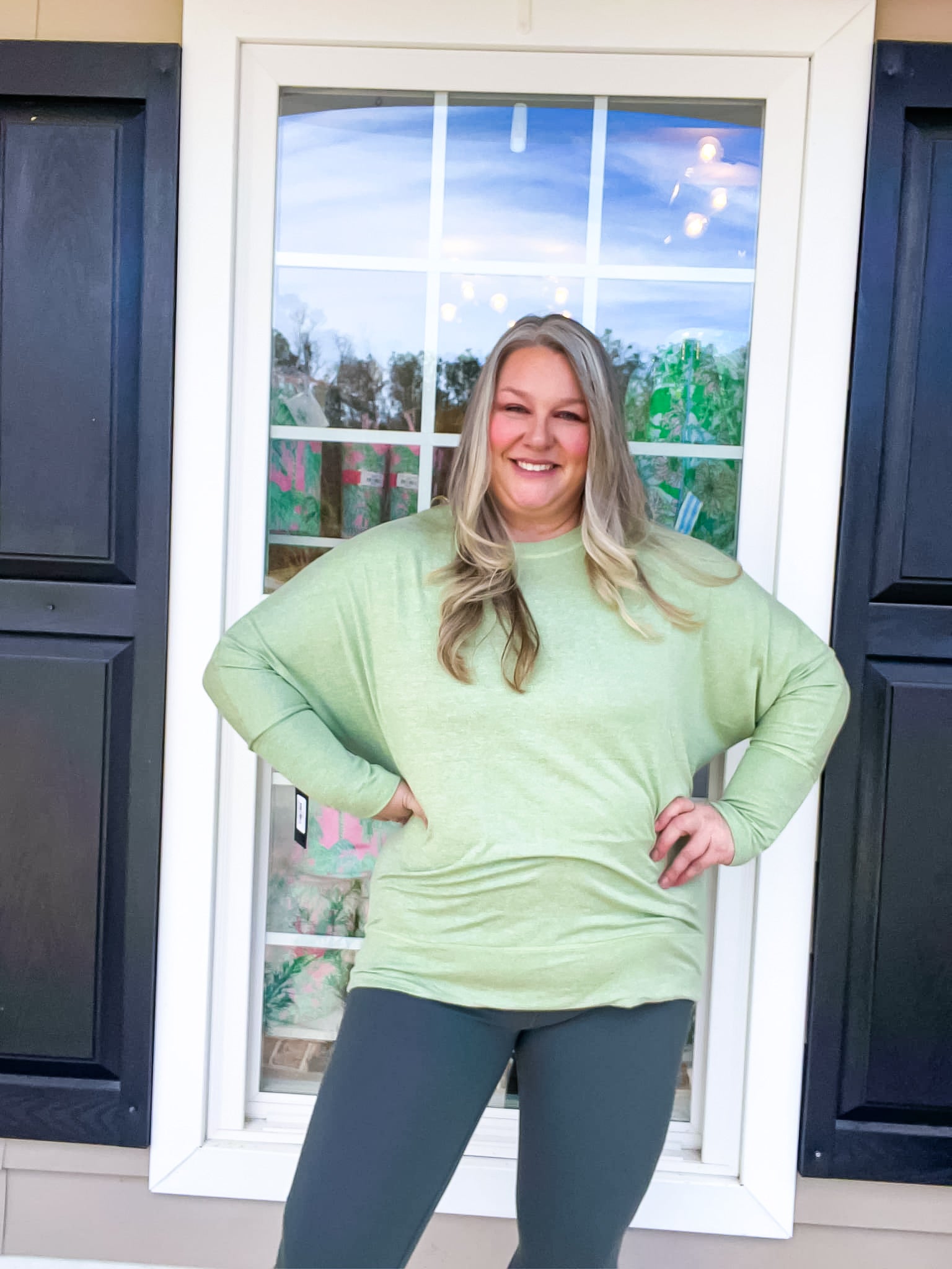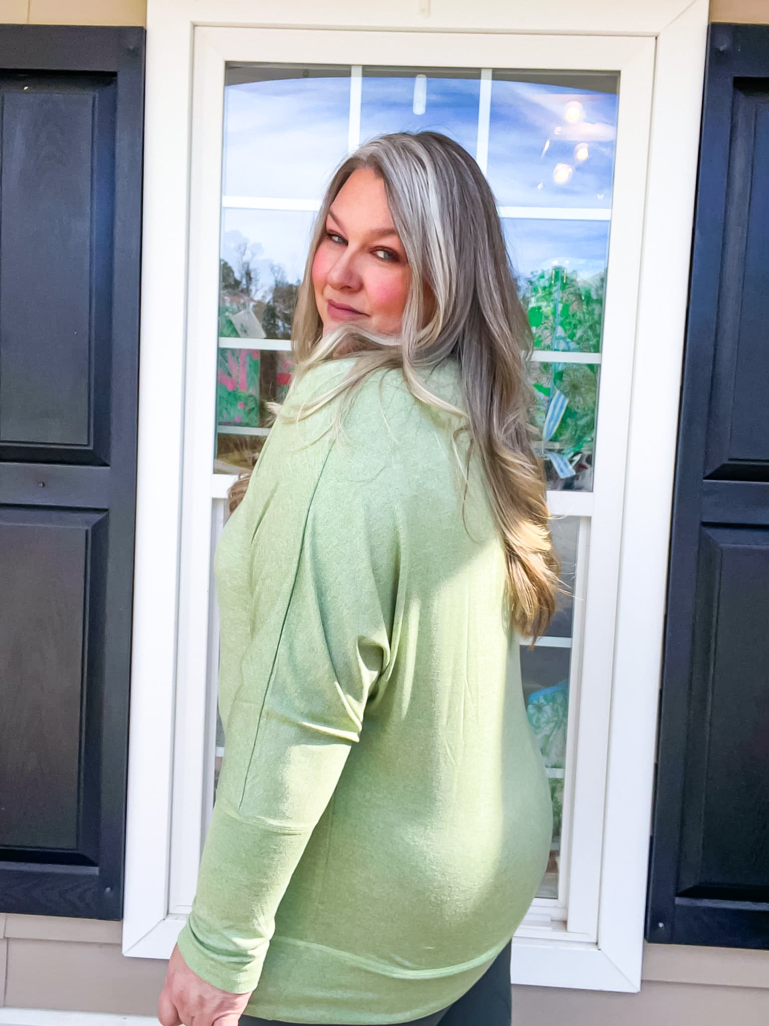 CURVY DOLMAN-SLEEVED TOP- FAIR GREEN