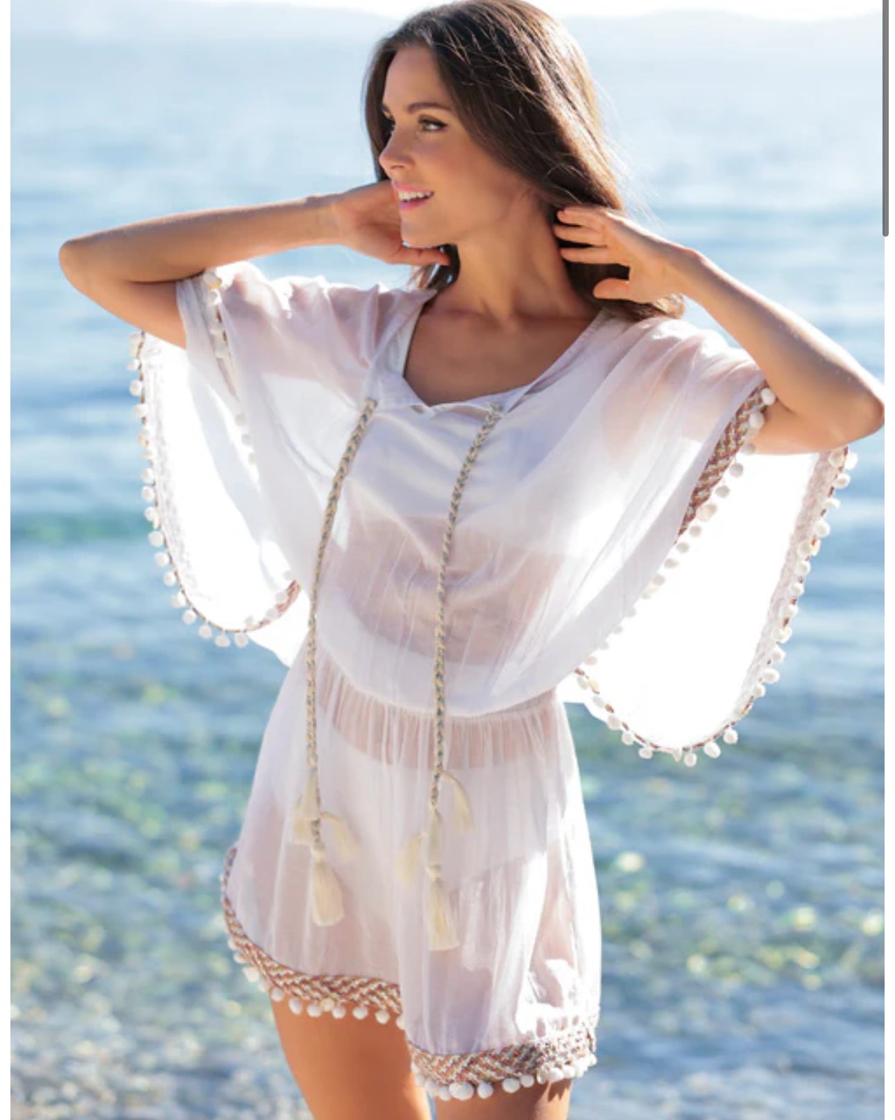 Create a chic summer look with Shiraleah’s Dede Cover up. This cover up features a solid color with gold bohemian inspired trimming making it the perfect addition to your beach or pool side ensemble. Made from cotton, the Dede cover up is stylish yet versatile. It provides style and enough coverage that it will sure to become a favorite of yours this summer. Pair with other items from Shiraleah to complete your look!