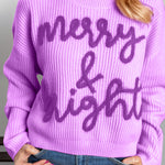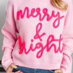 Double Take Full Size MERRY & BRIGHT Christmas Dropped Shoulder Cropped Sweater