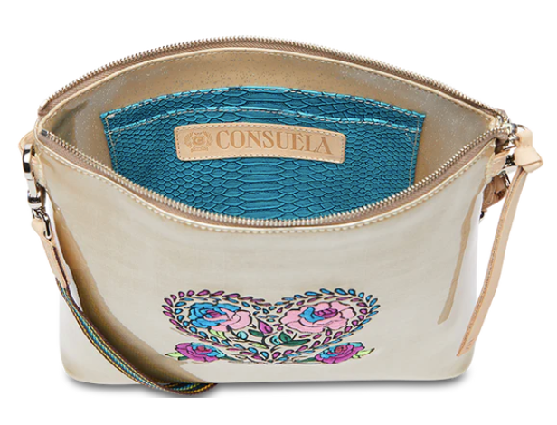 This embroidered crossbody bag is ready to take on the day with an adjustable strap and two interior pockets. Crafted with a roomy open interior, the Downtown Crossbody can carry the essentials and more.