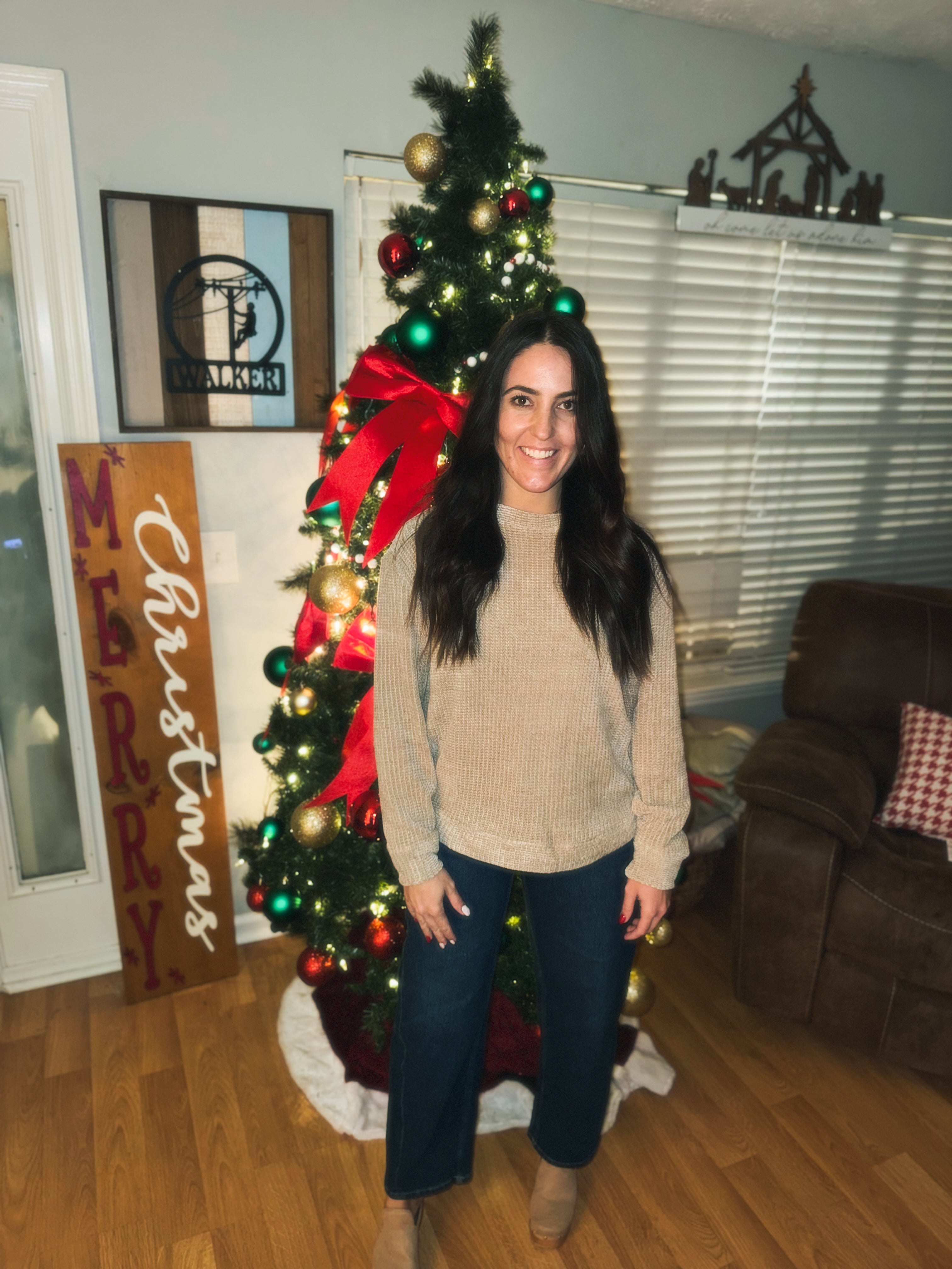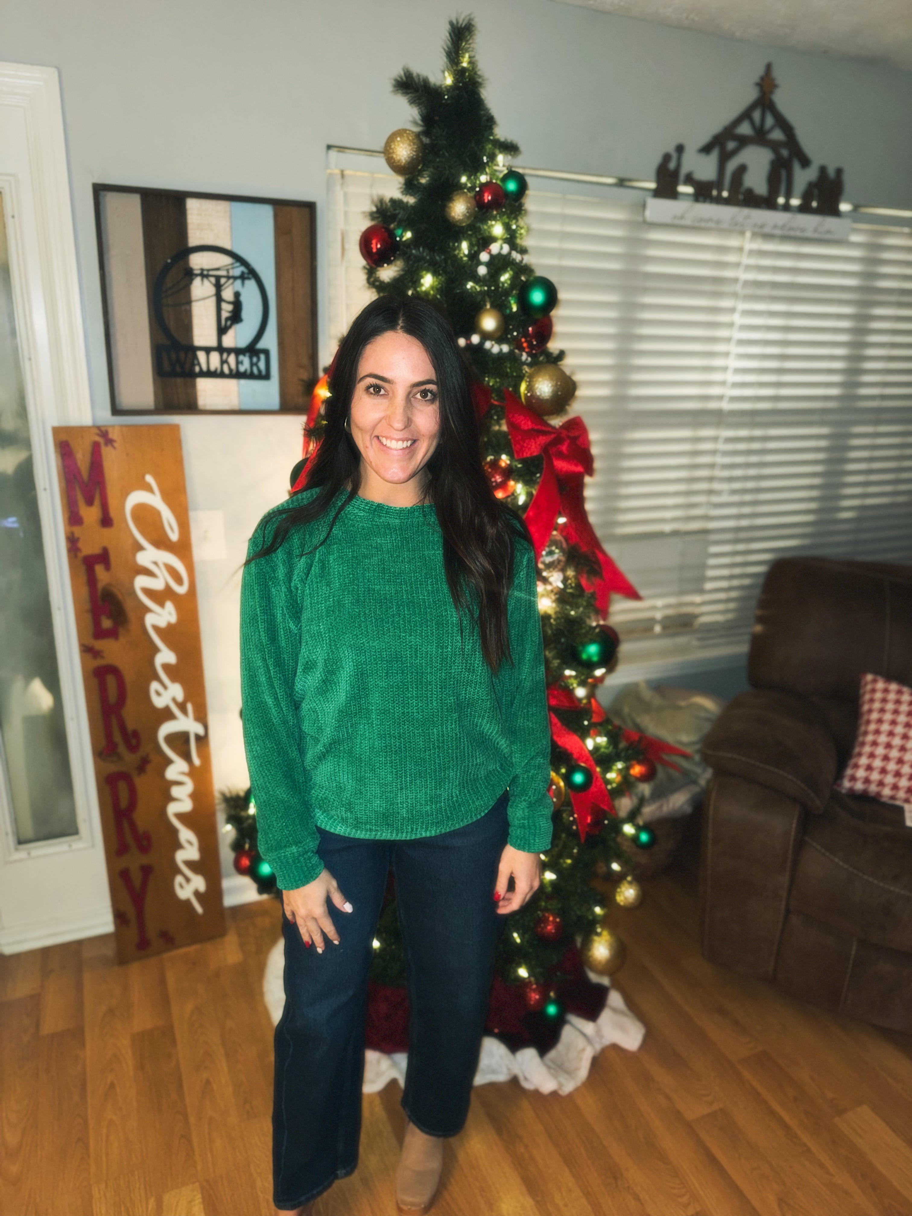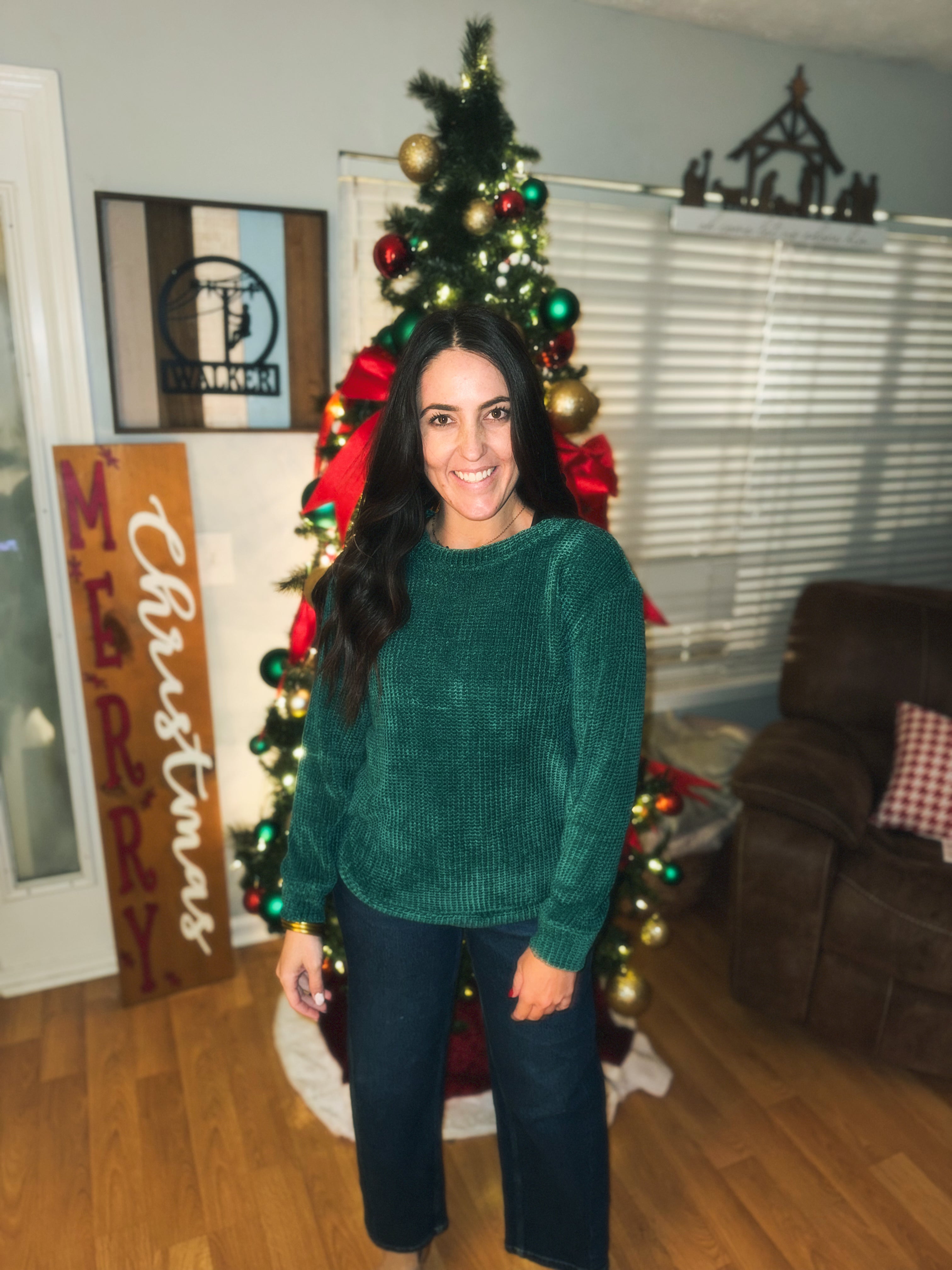 CHENILLE WAFFLE ROUND NECK SWEATER