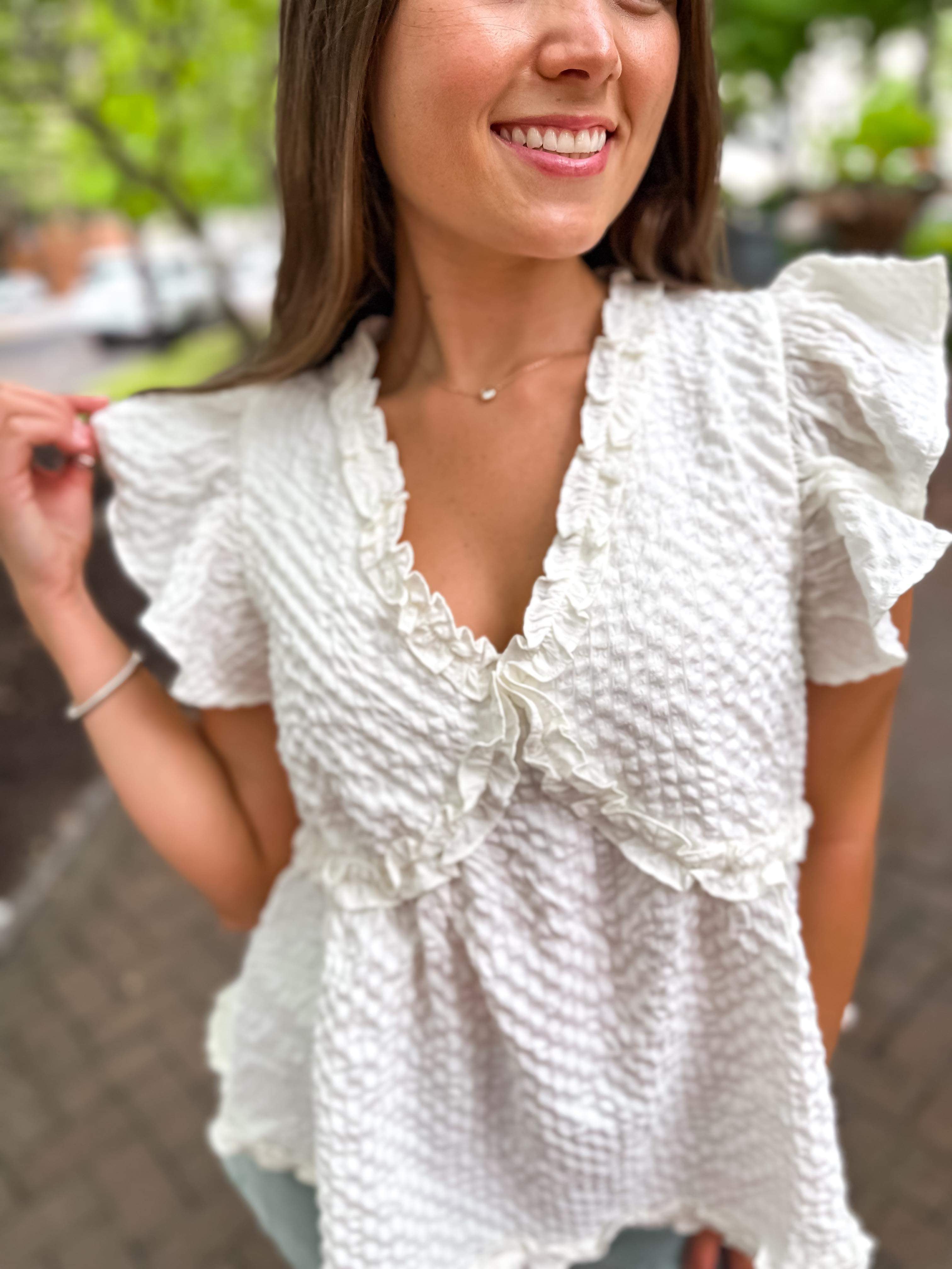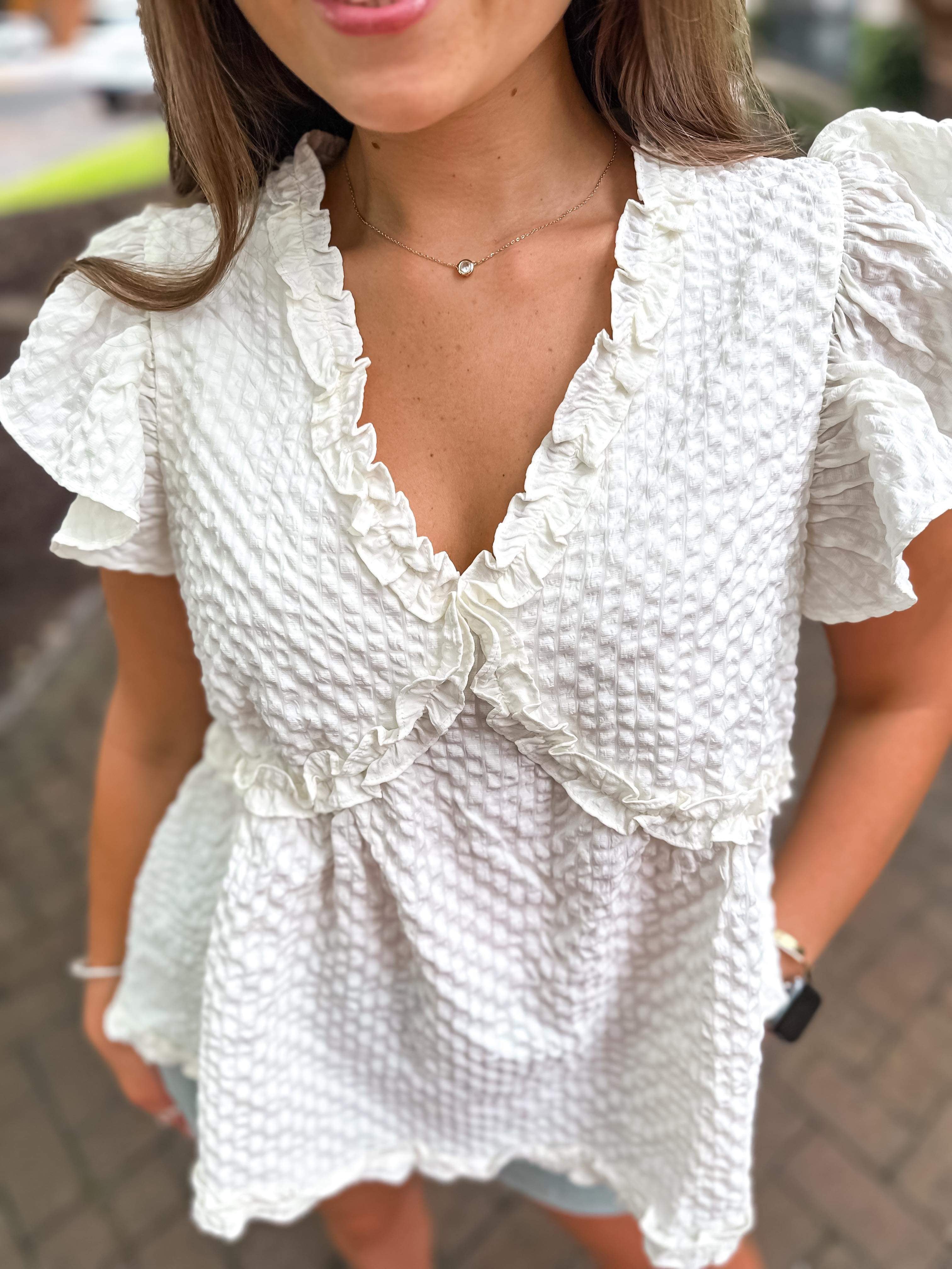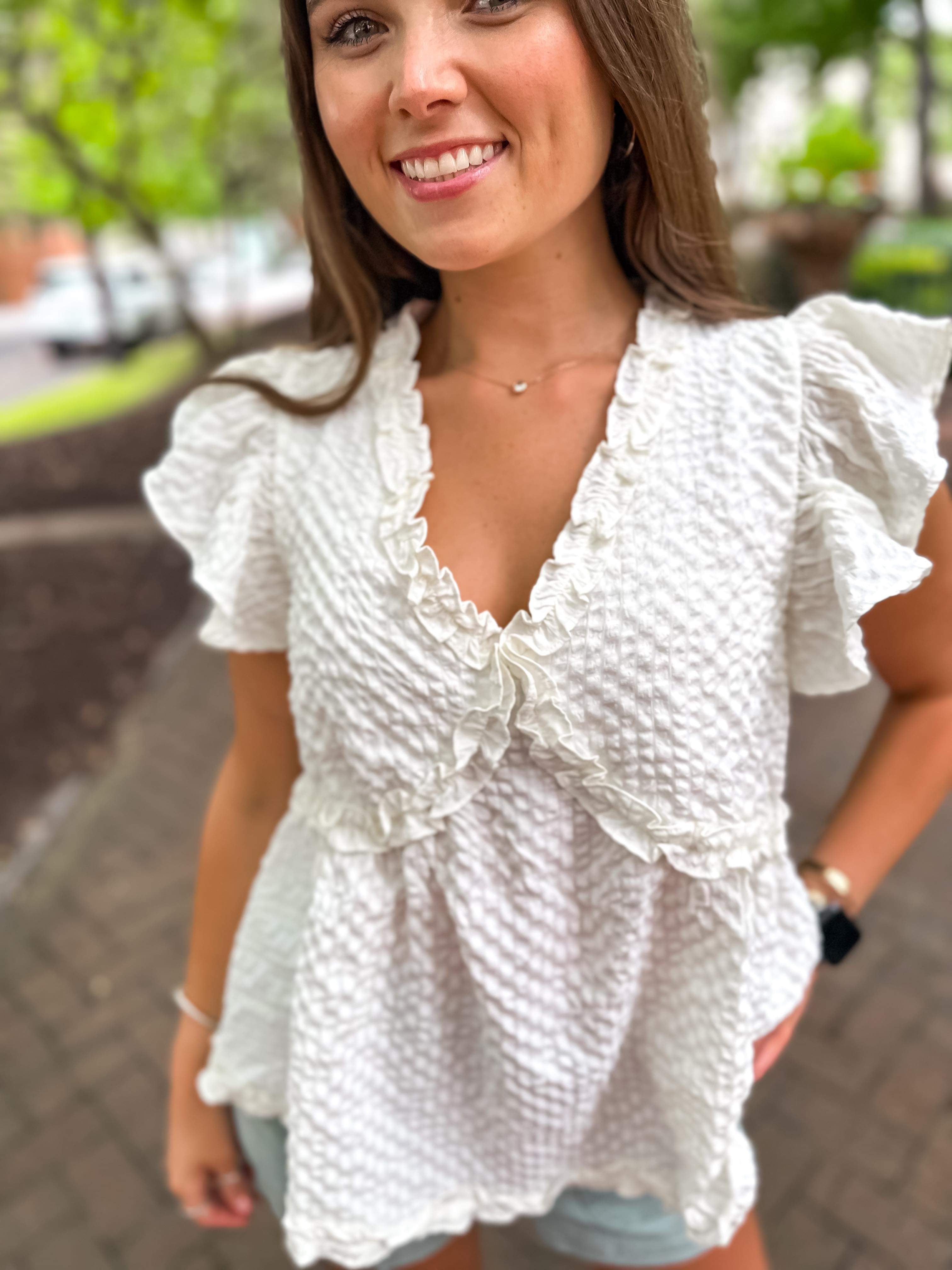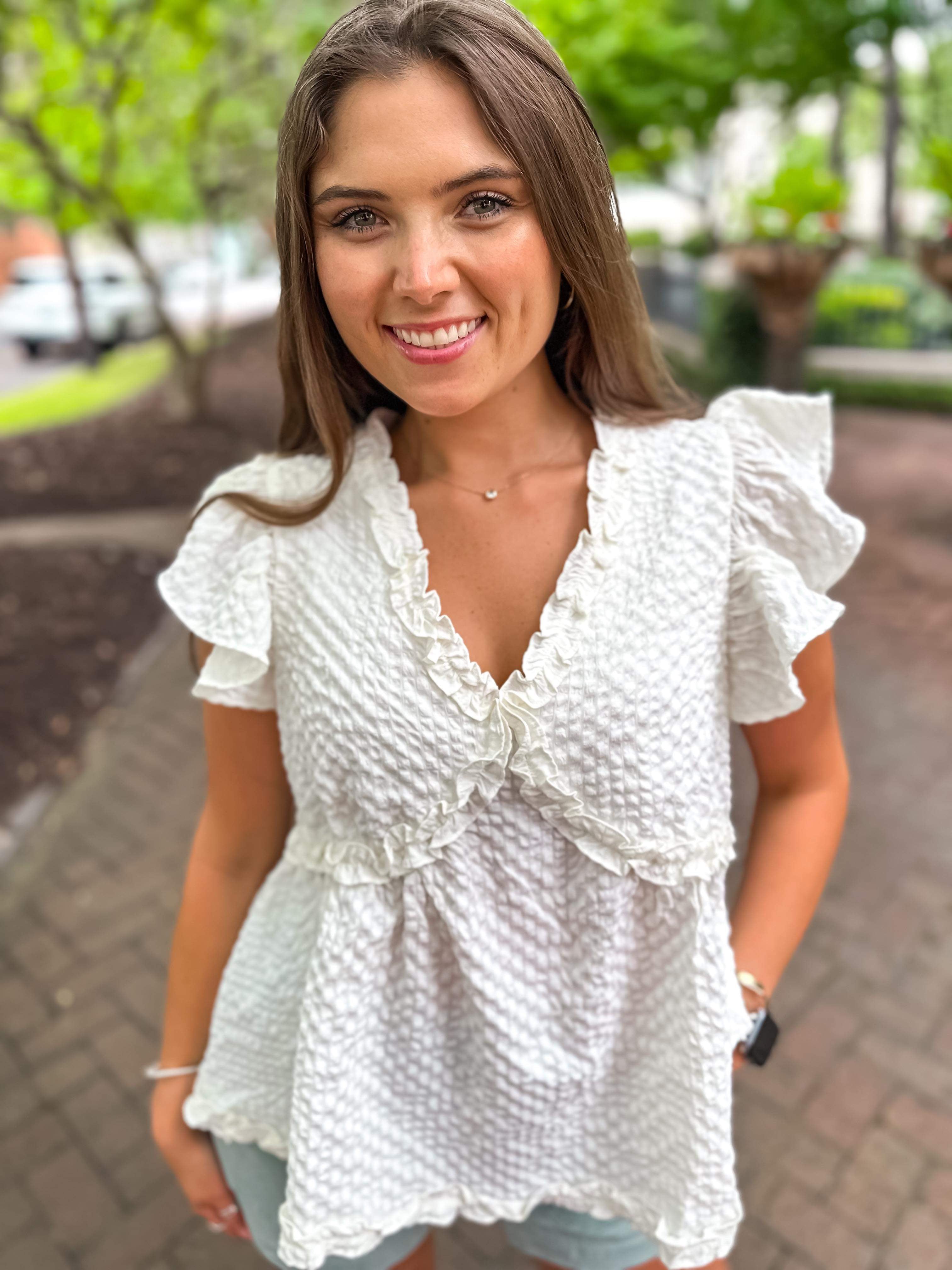 What a perfect top! This casual blouse is terrific for all spring and summer long and is so lightweight and easy to throw on. Pair her with denim jeans or shorts and with a cute wedge or sneaker for a fun summer look!