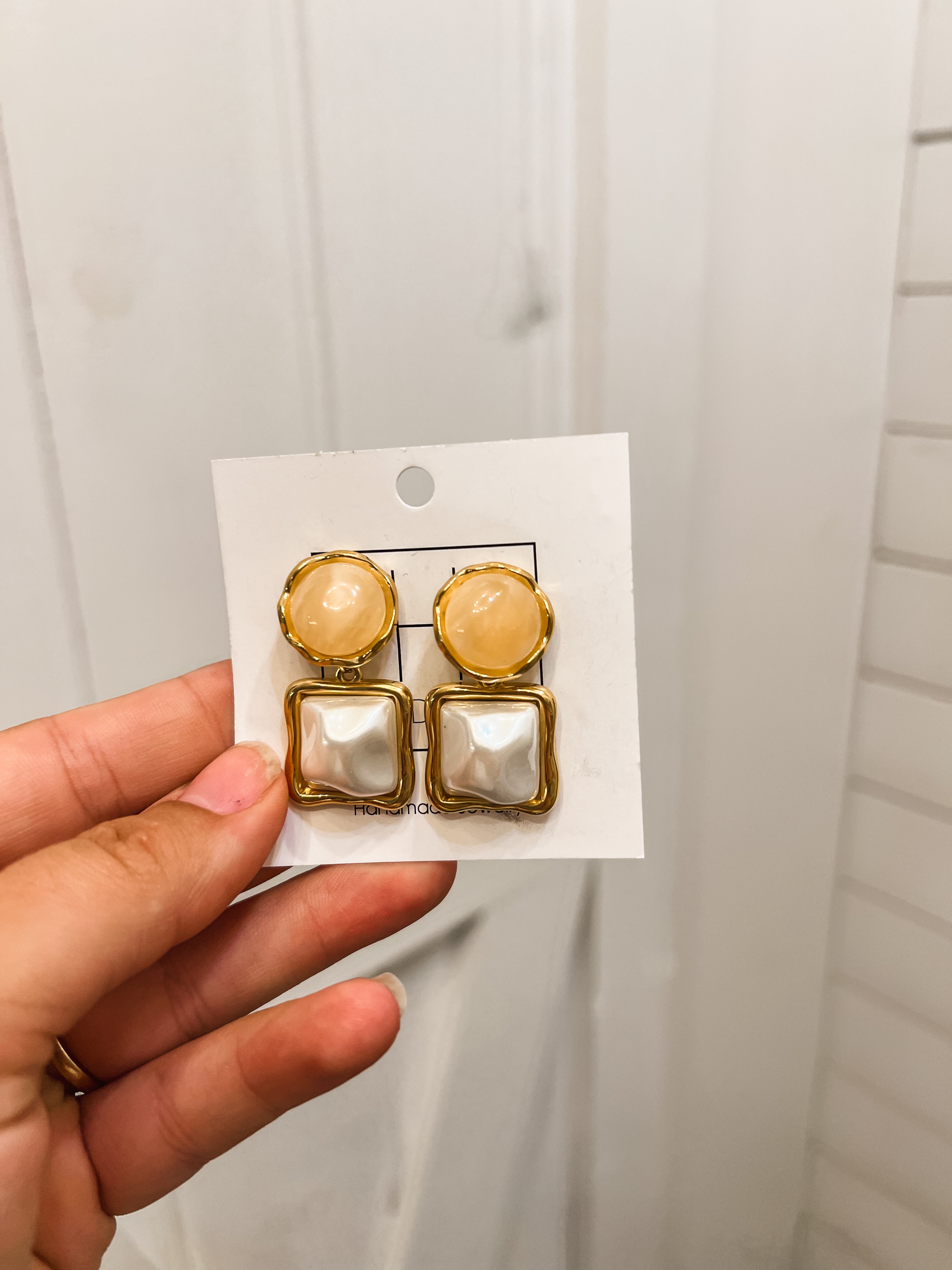 Elegant Peachy Pearl Square Drop Earrings- Final Sale