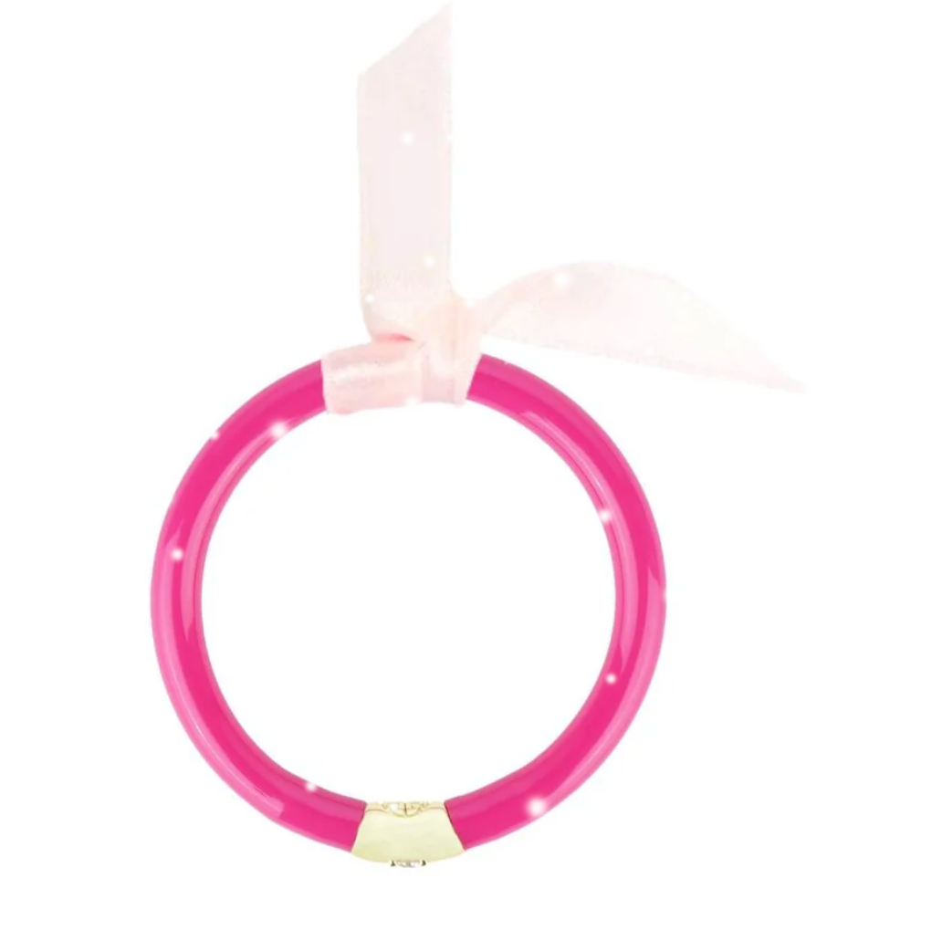 Thank heaven for little girls...the inspiration for our Epic Pink All Season Bangles for children. Modeled after our famous "Three King" All Weather Bangles for grown-ups, these divinely-colored pink gloss tubing bangles are finished with our exclusive BuDhaGirl bead featuring one crystal to add just a tiny amount of sparkle. Available in small, medium, and large.