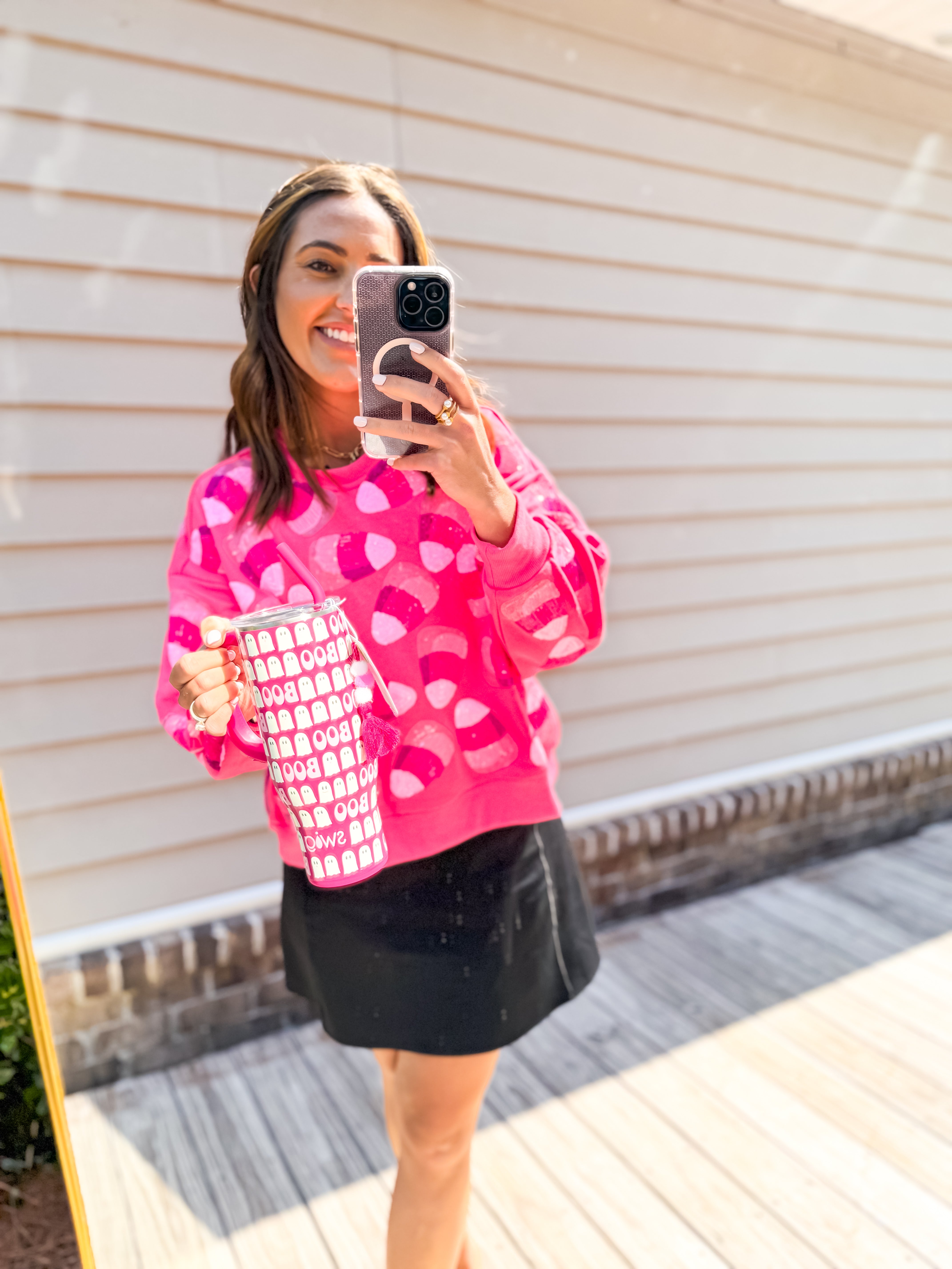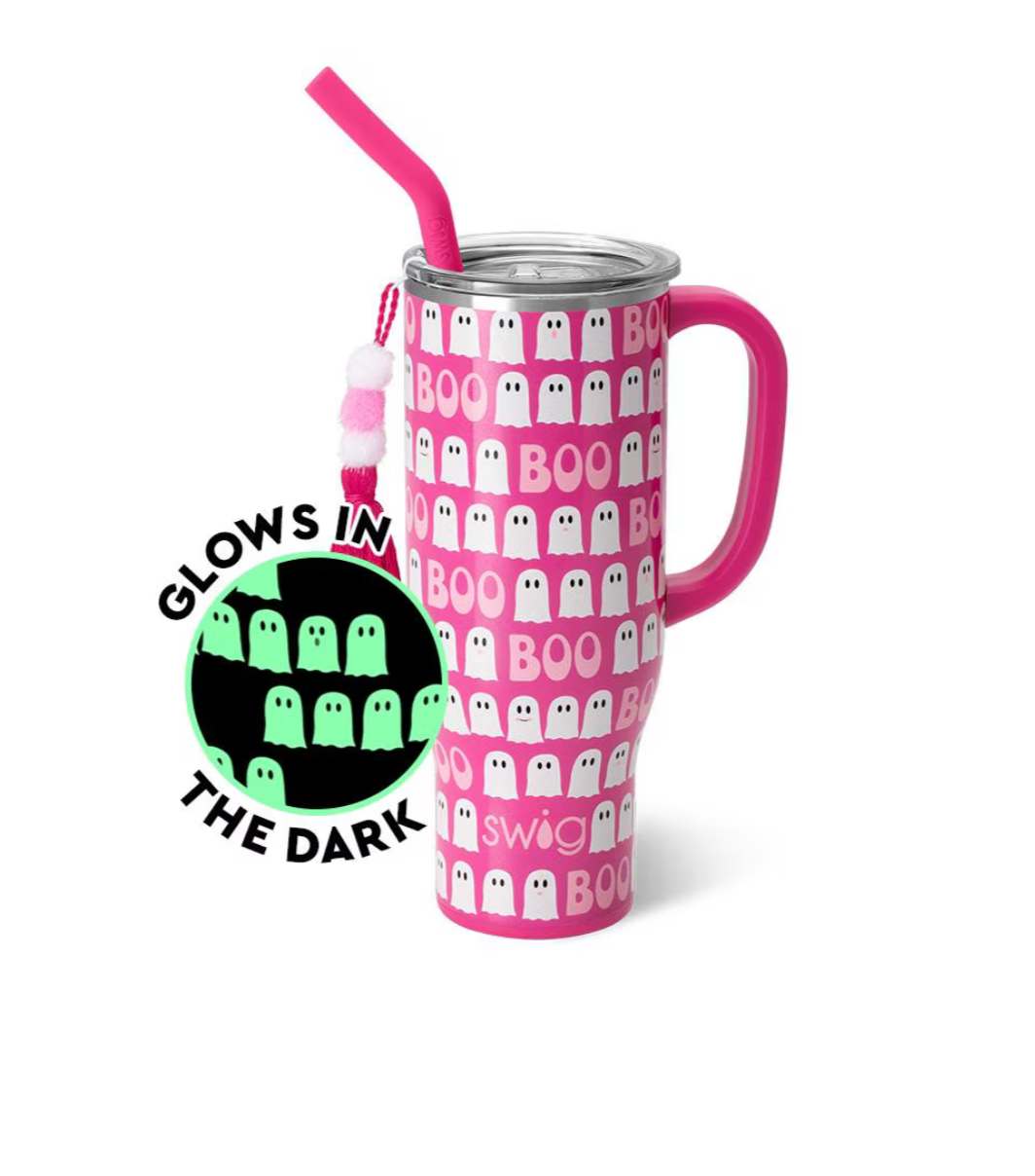 Mega sips, mega chill! π§ Put the "boos" in Faboolous with sweet glittery ghosts and hot pink hues.