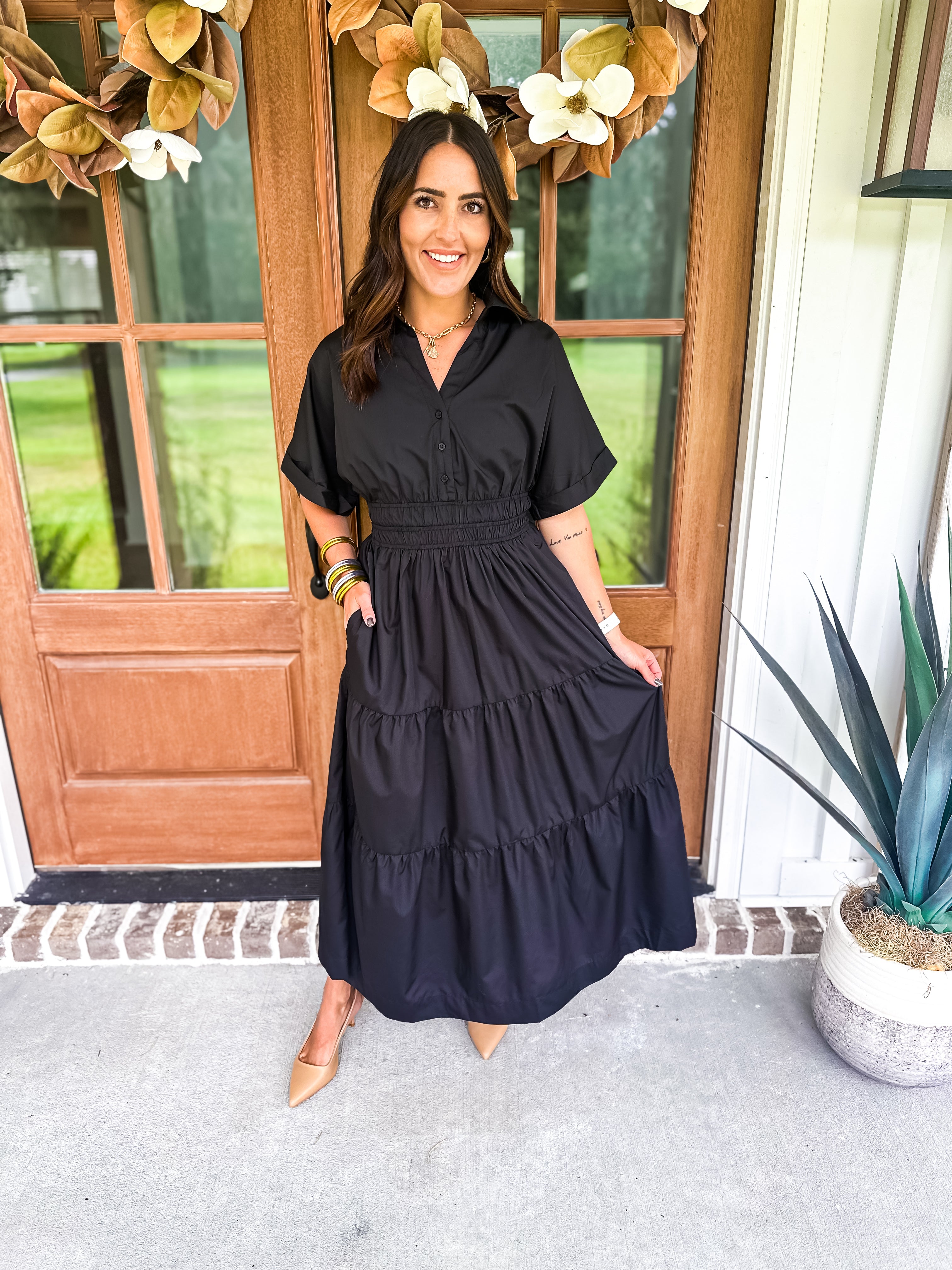 Feeling Fall Midi Dress - Black
