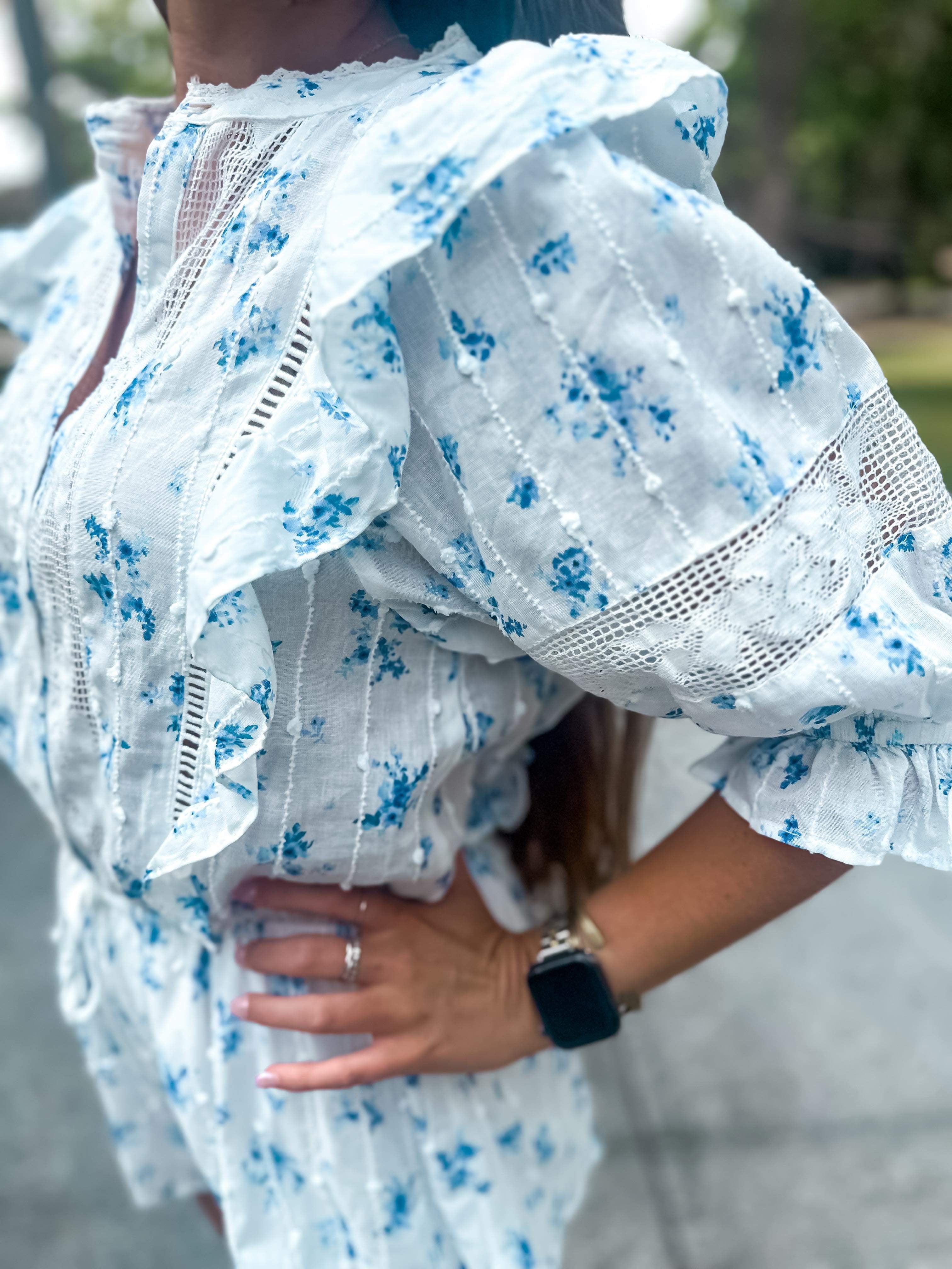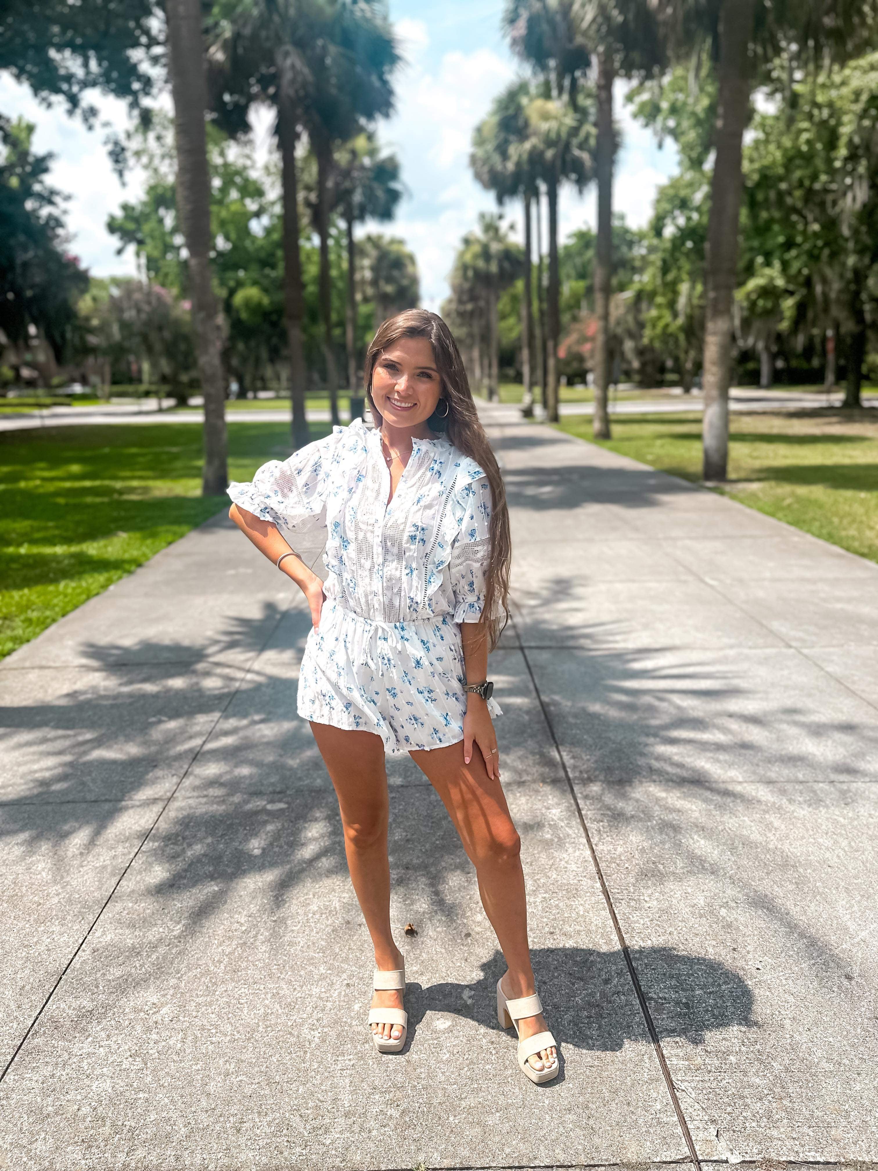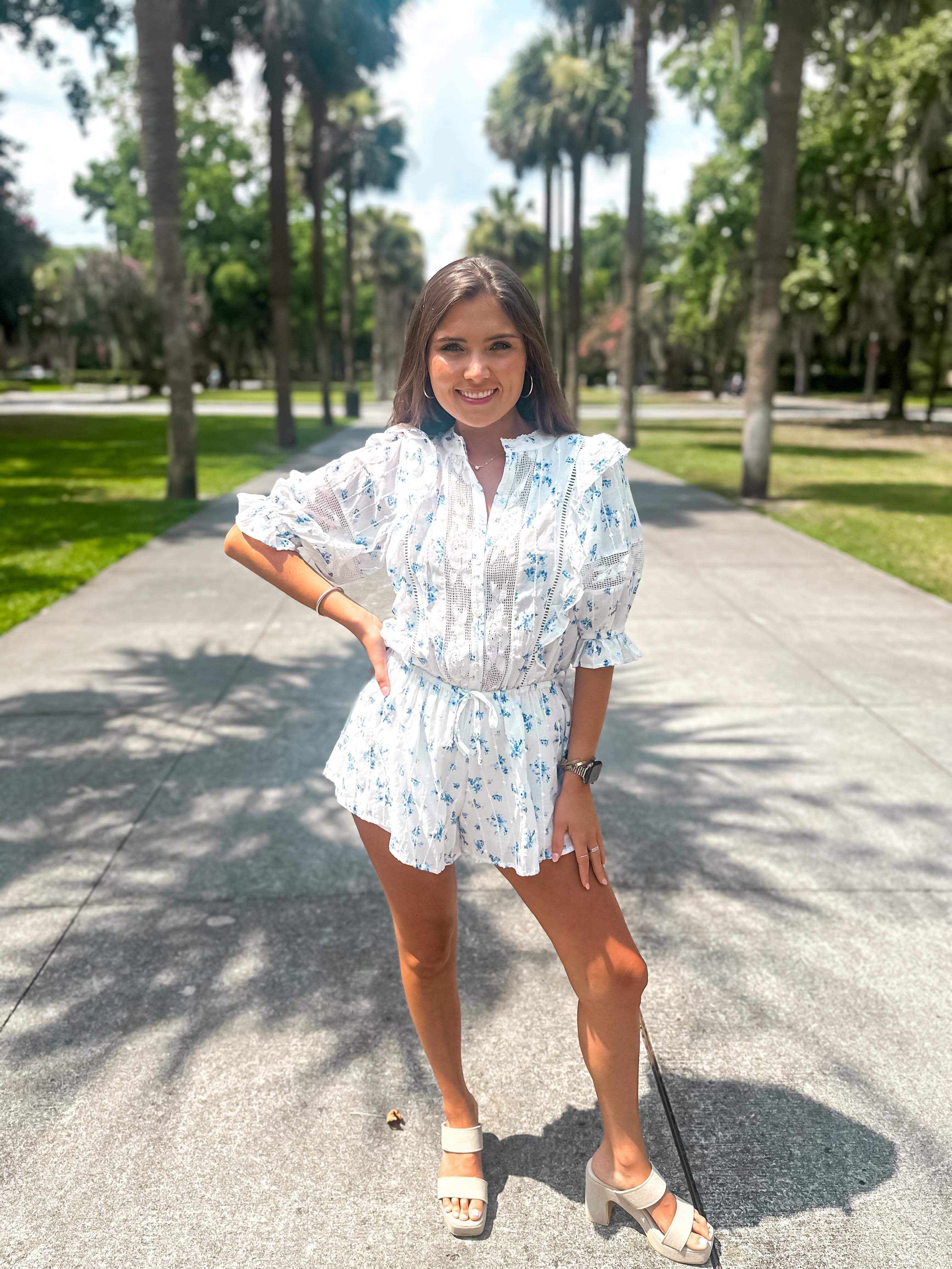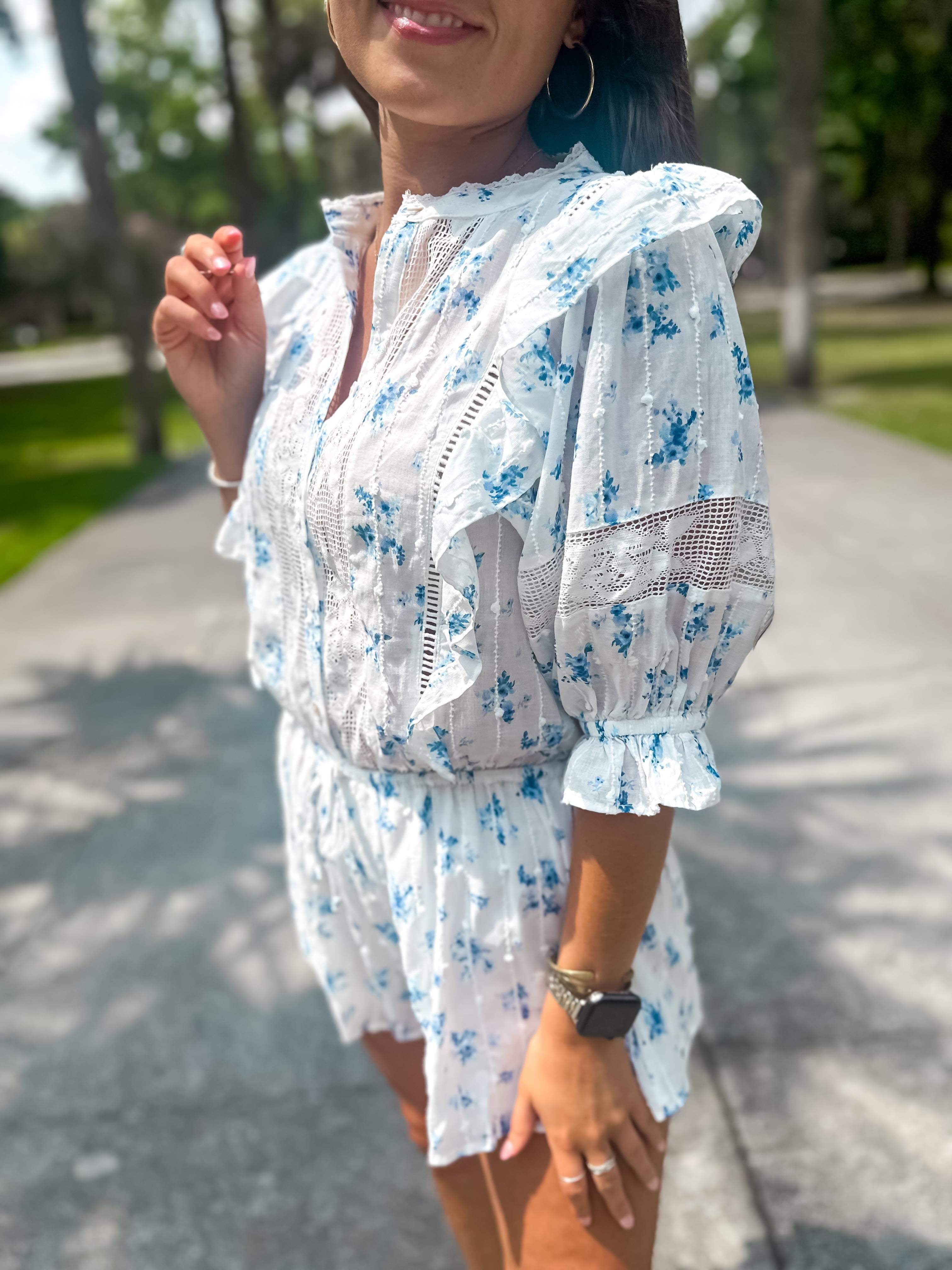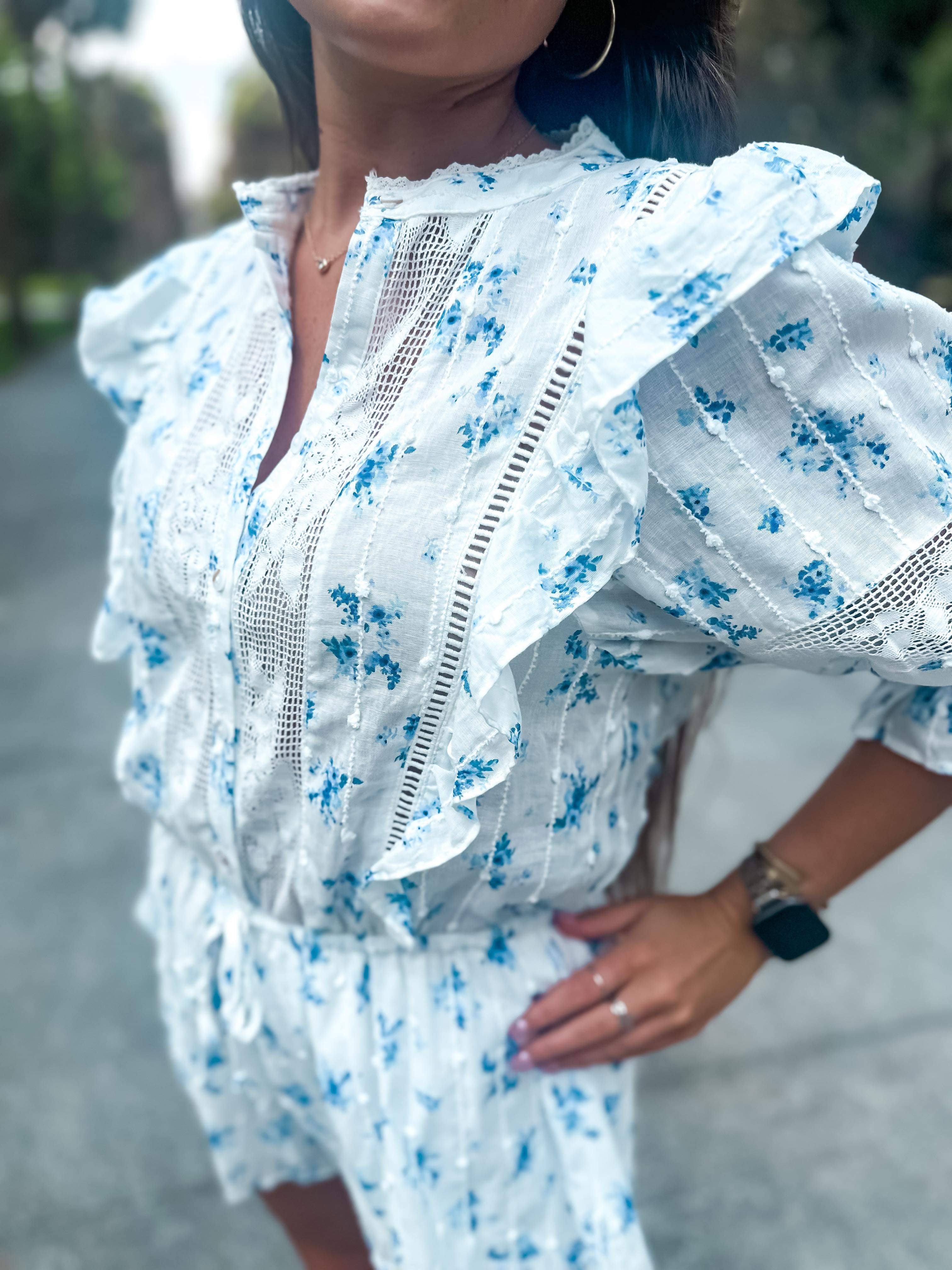 Stay cool and stylish this summer with our Floral Crochet Trim Romper. Made from lightweight and comfortable fabric, this romper features a flattering silhouette and a beautiful floral print.