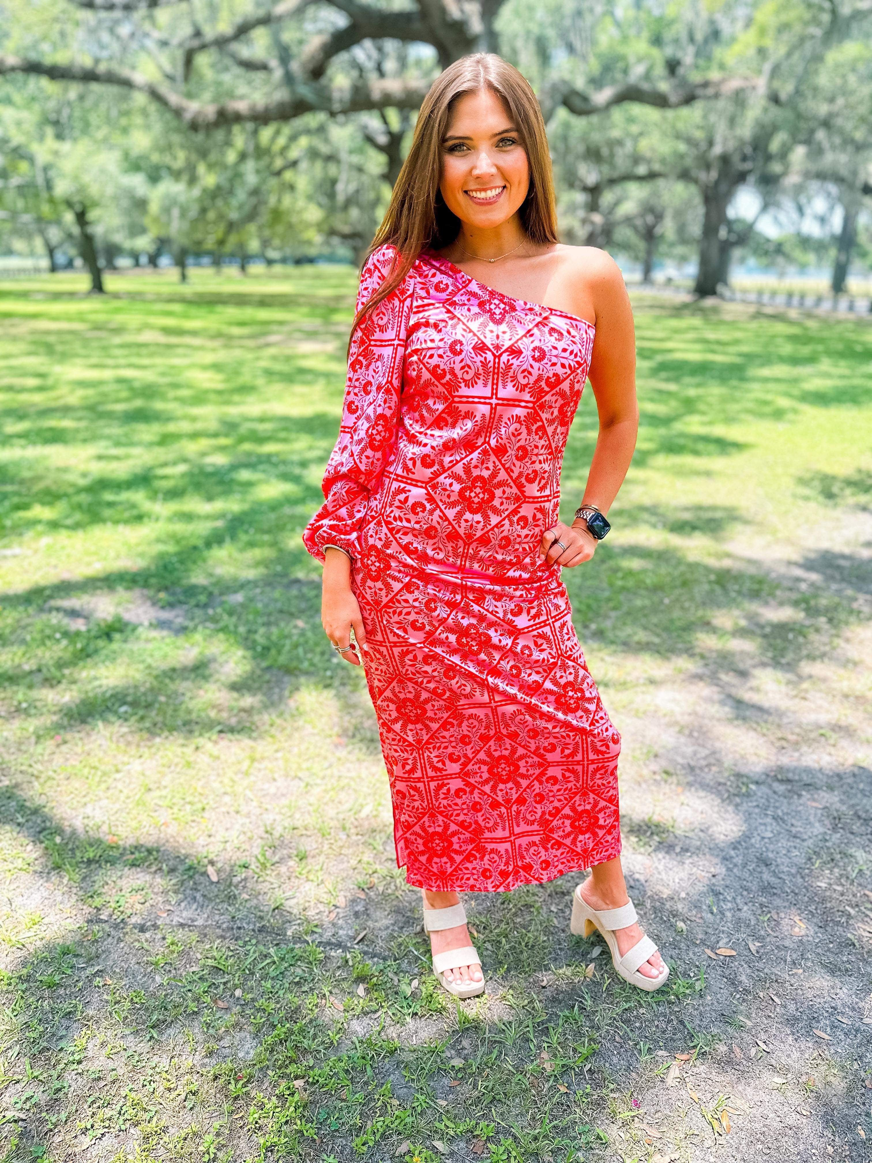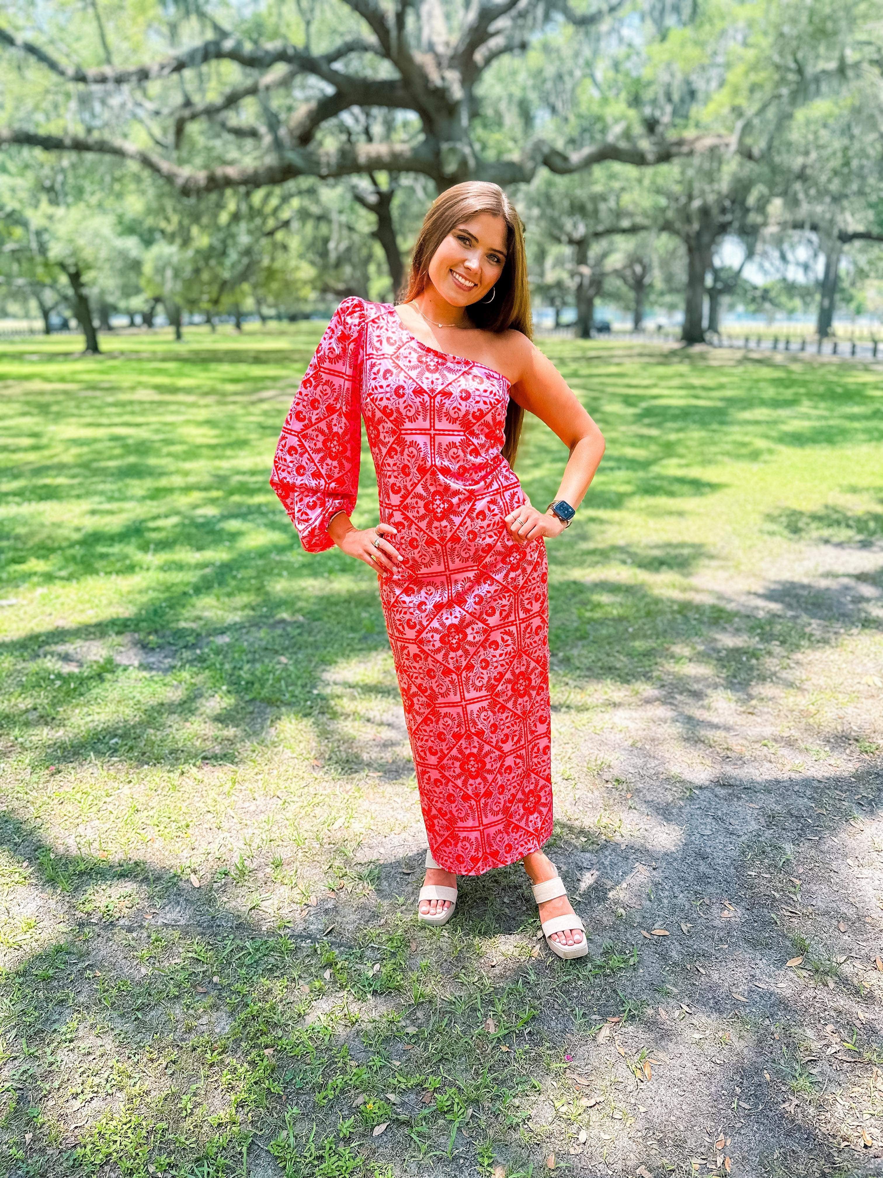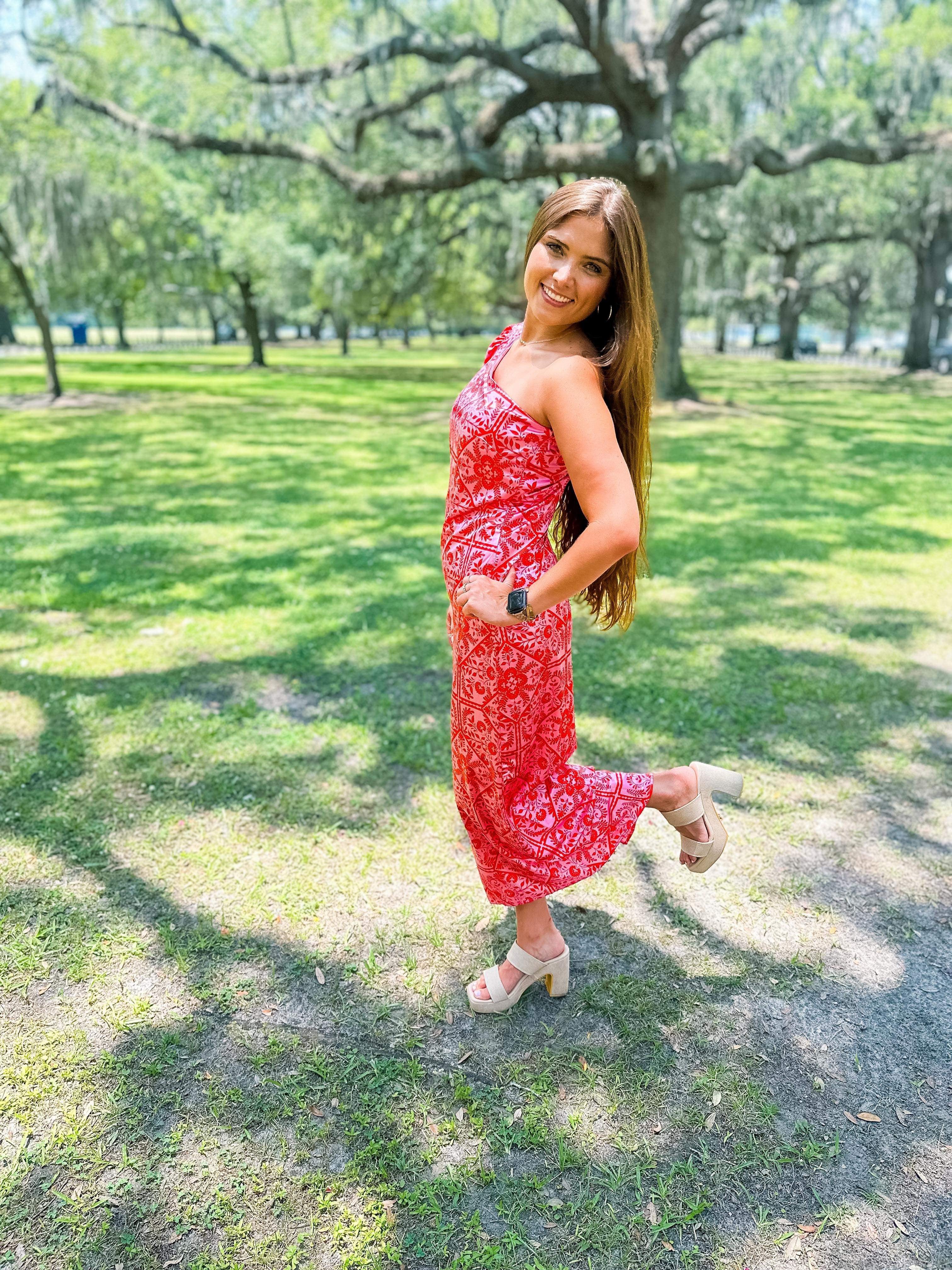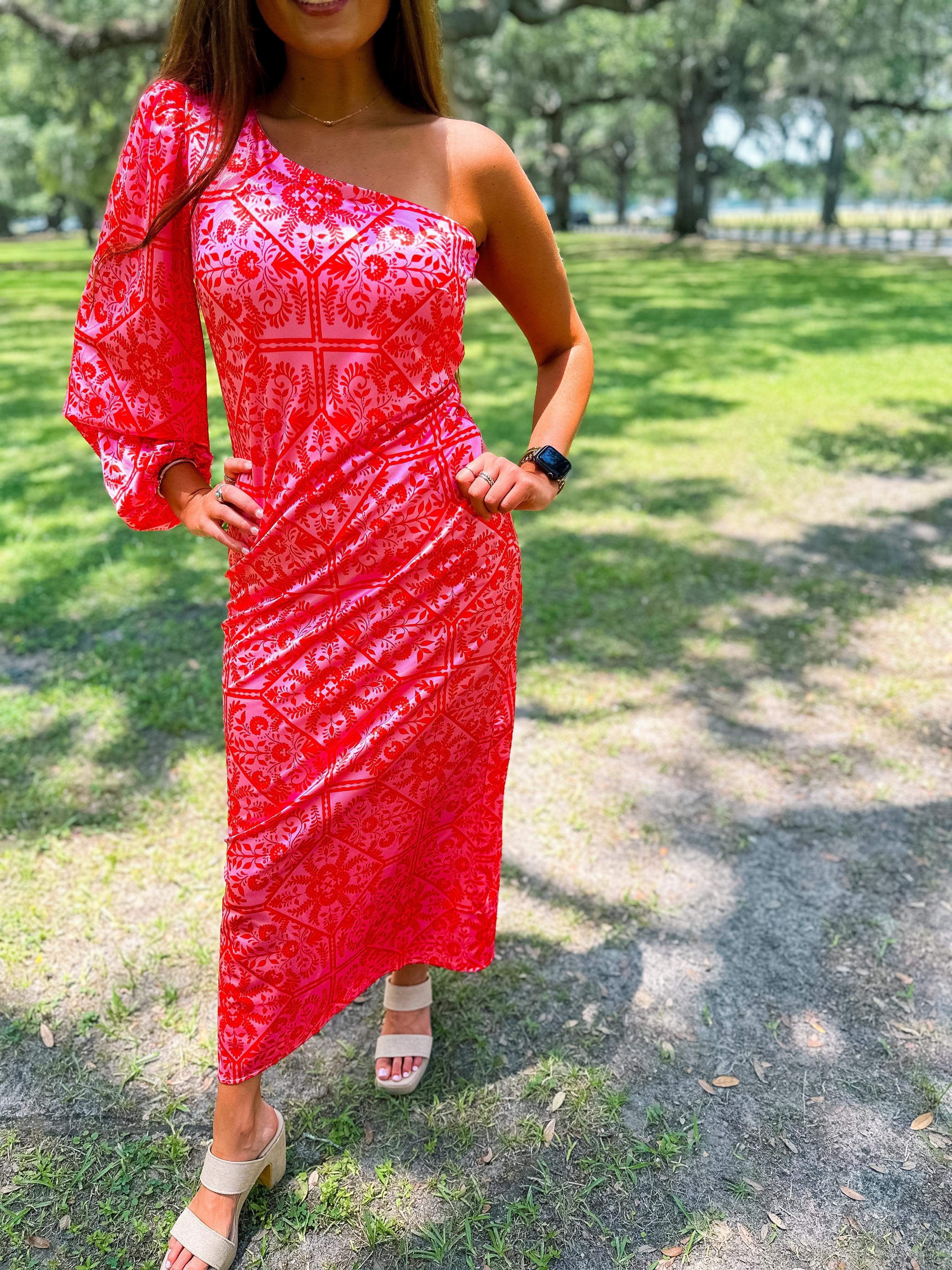 Floral One Shoulder Maxi Dress- Pink