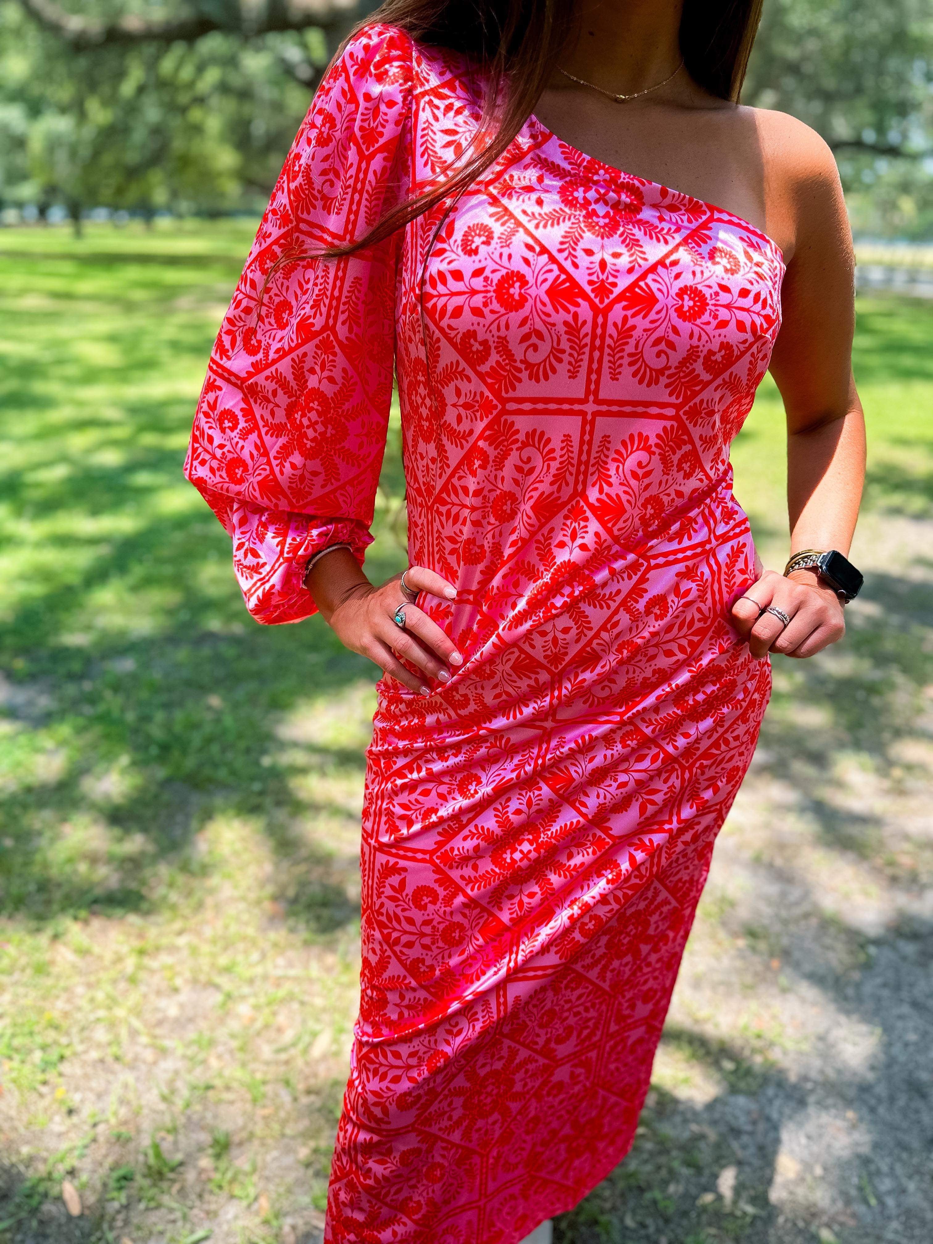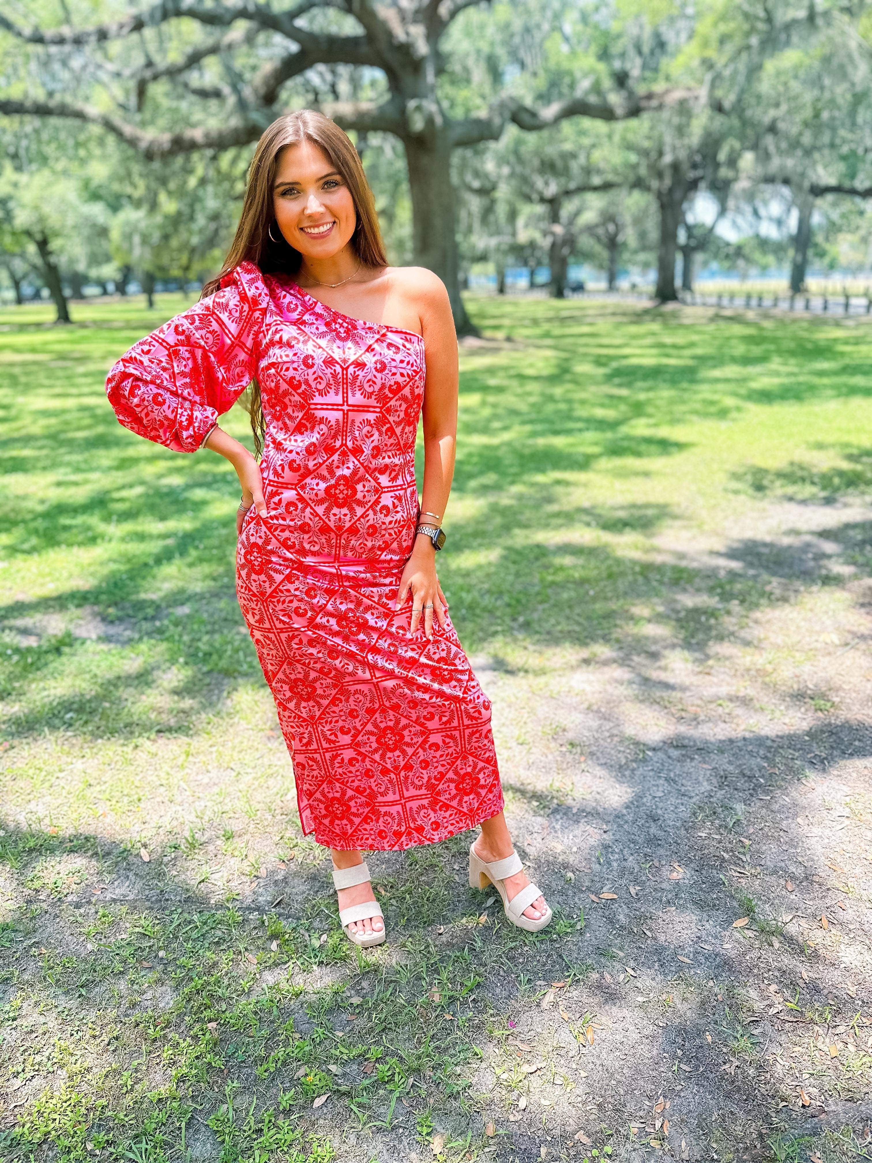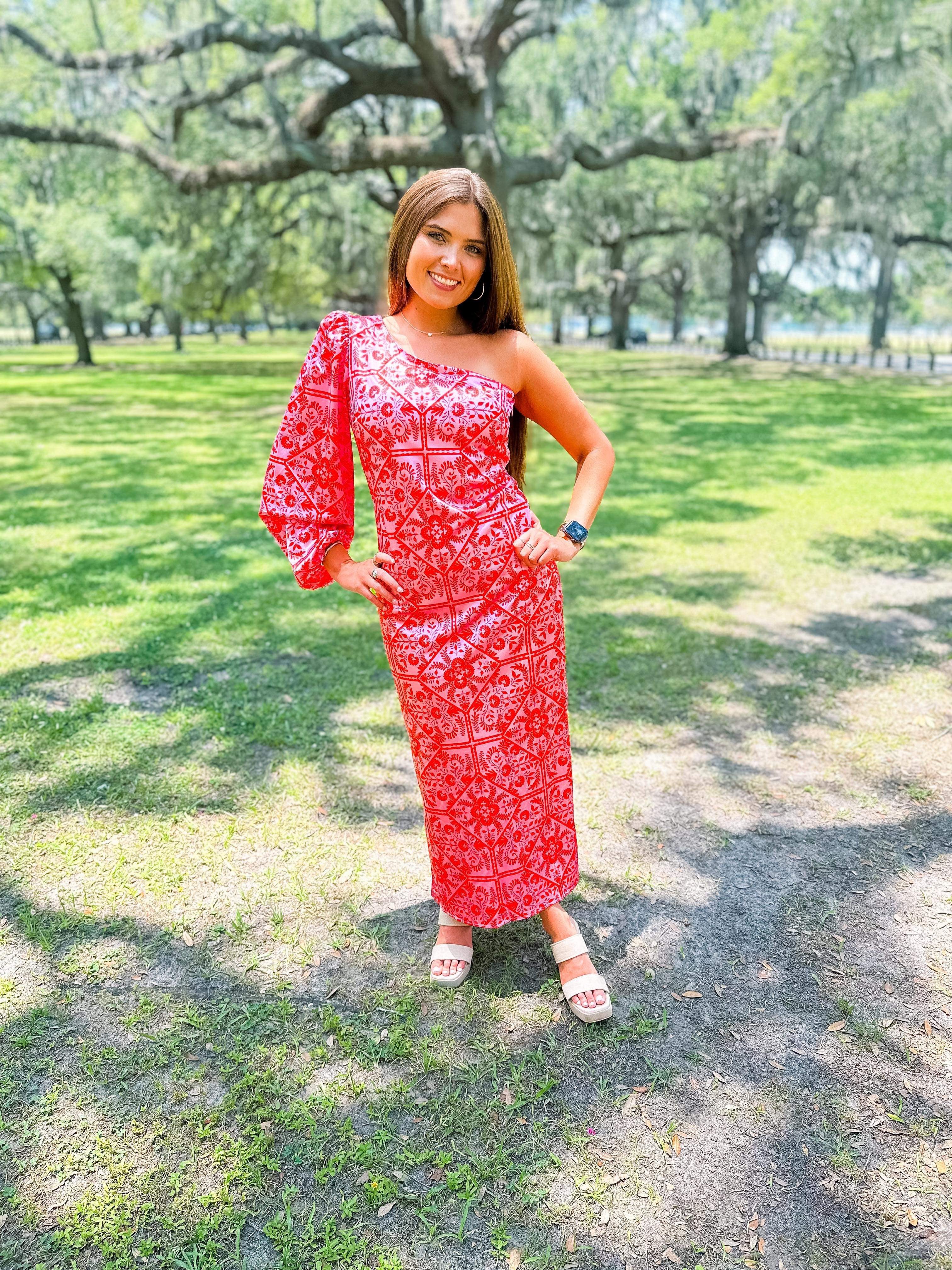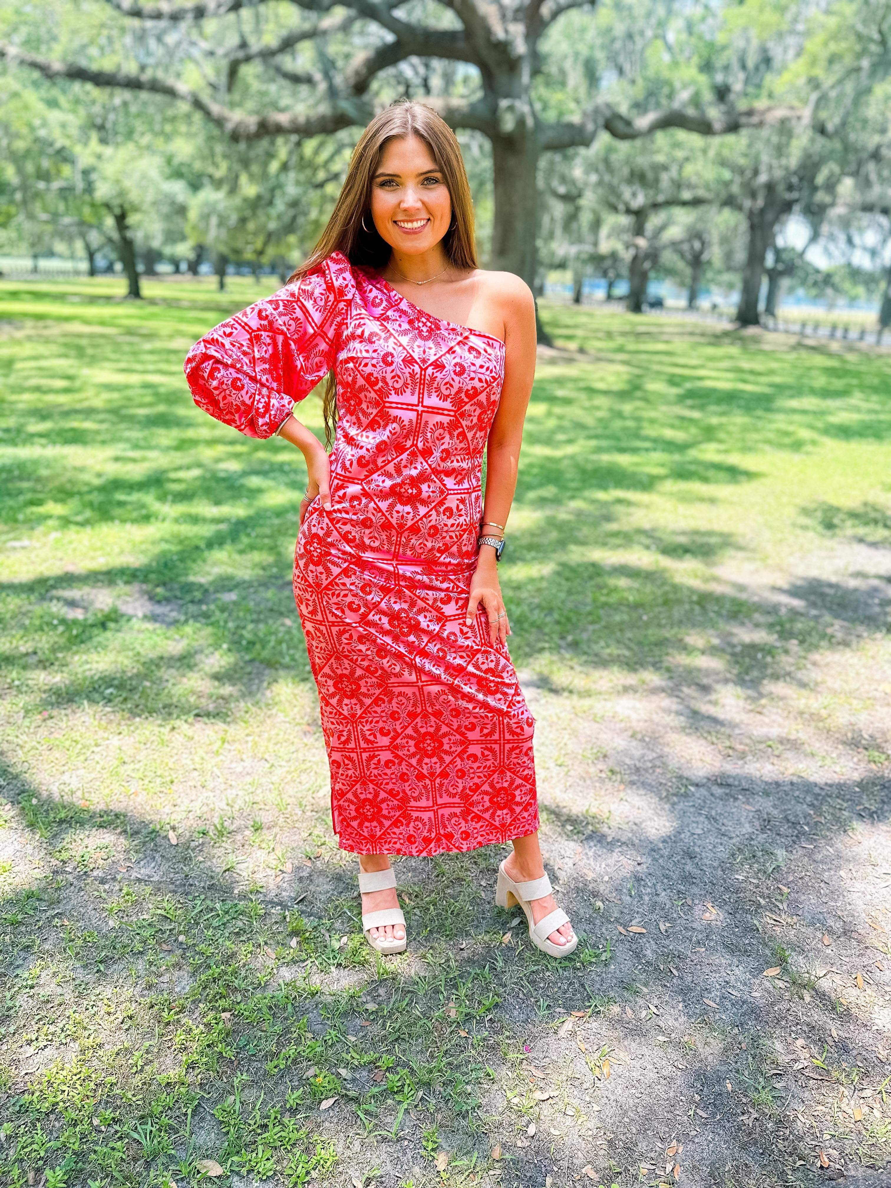 Floral One Shoulder Maxi Dress- Pink