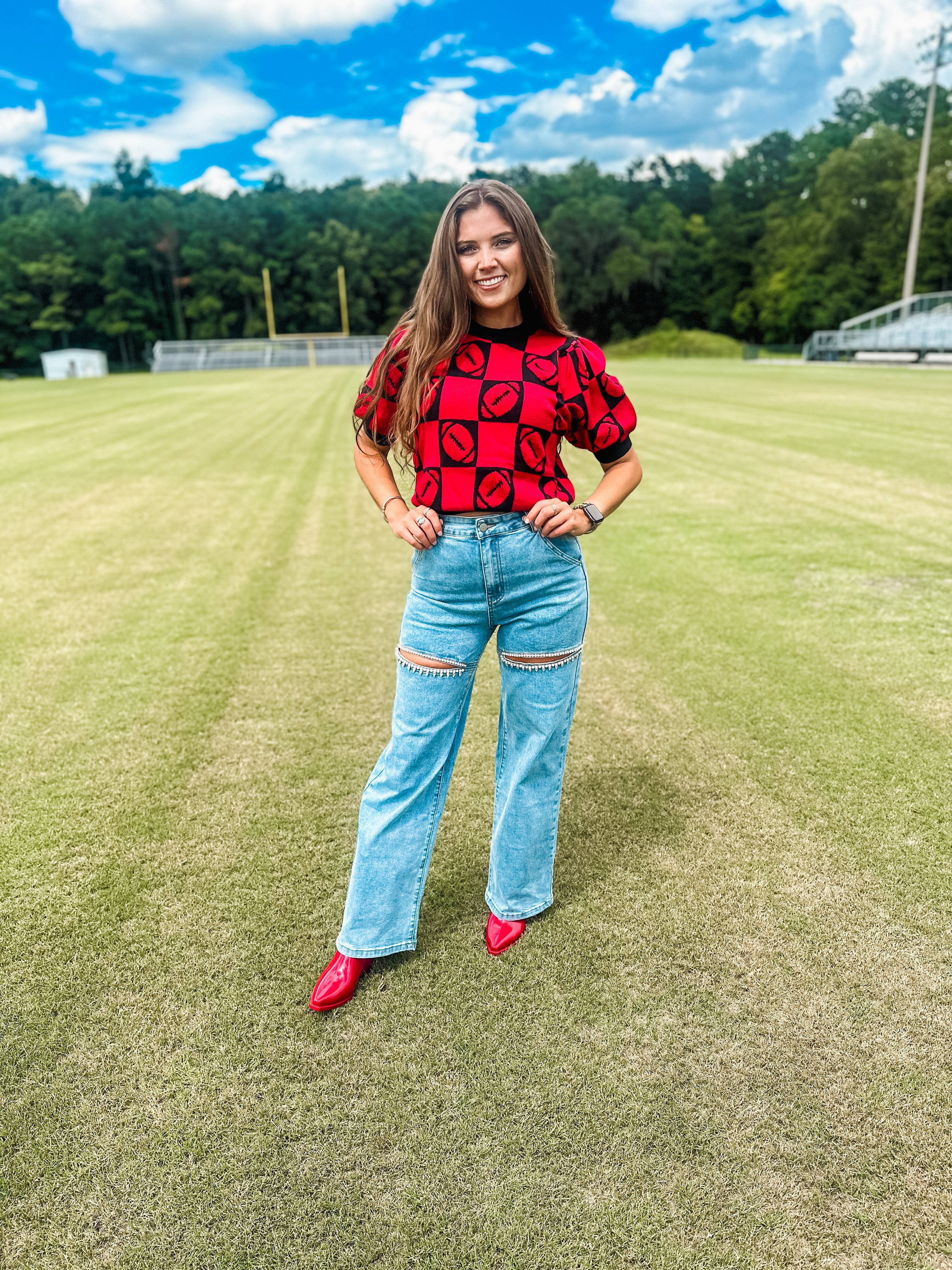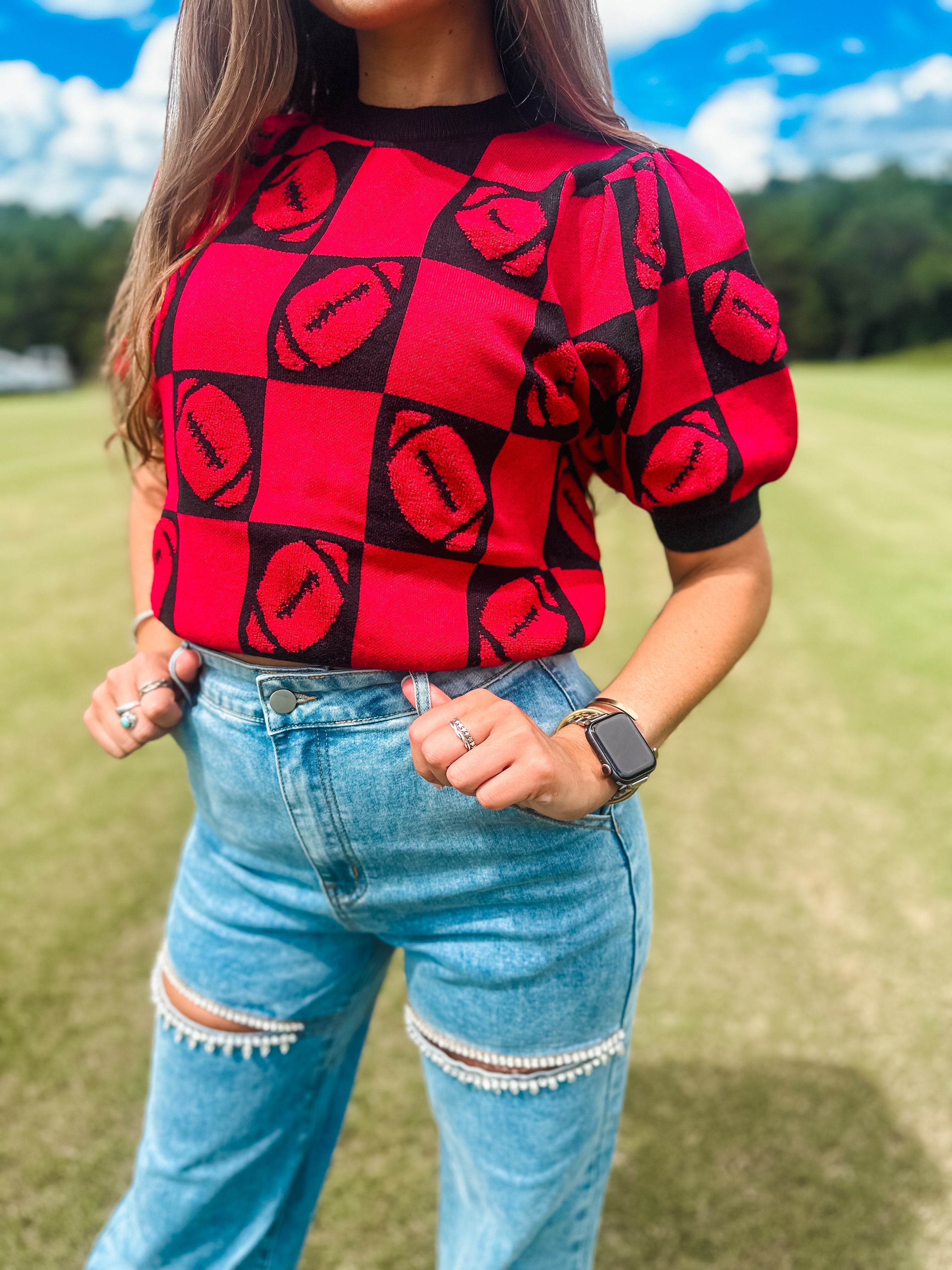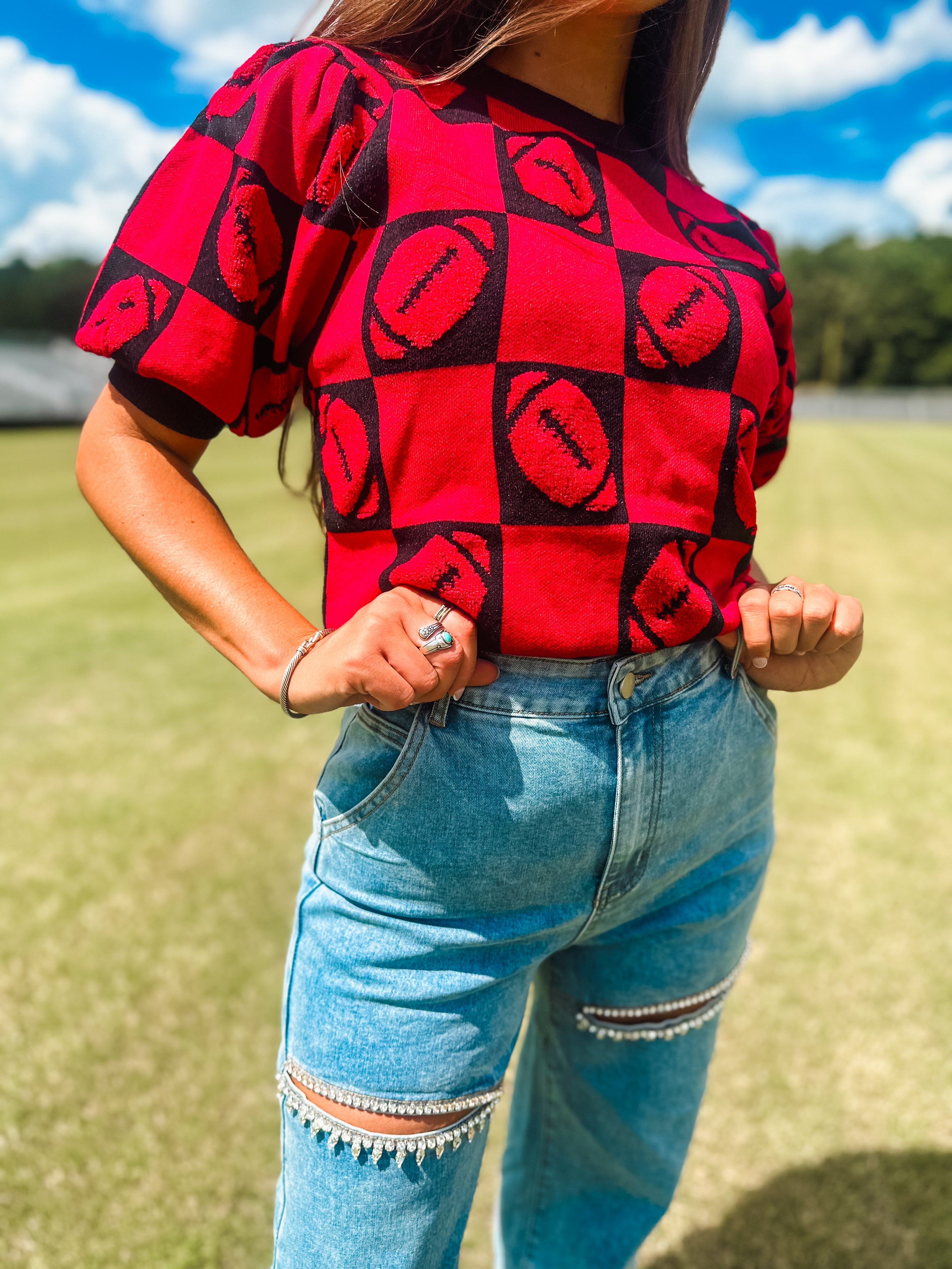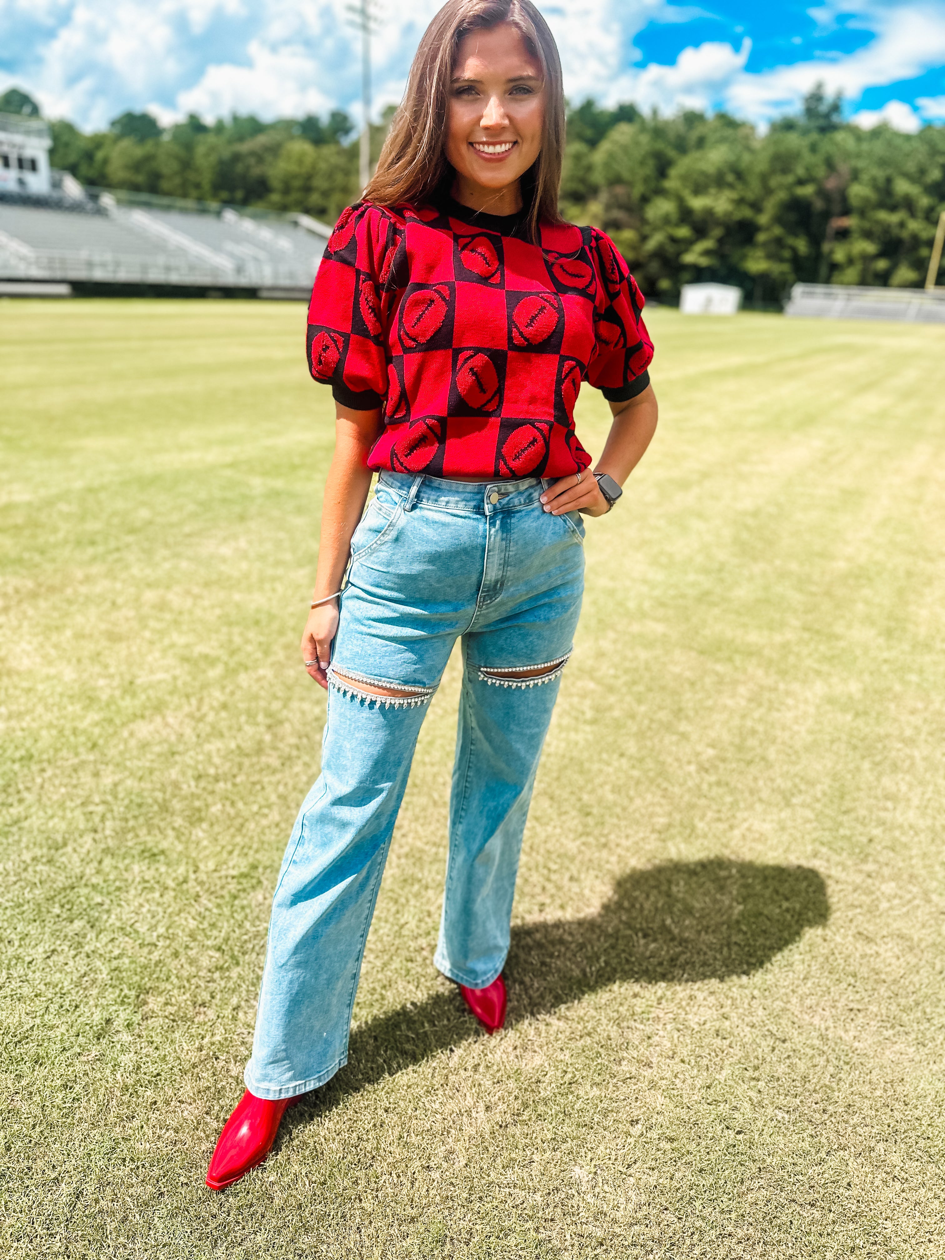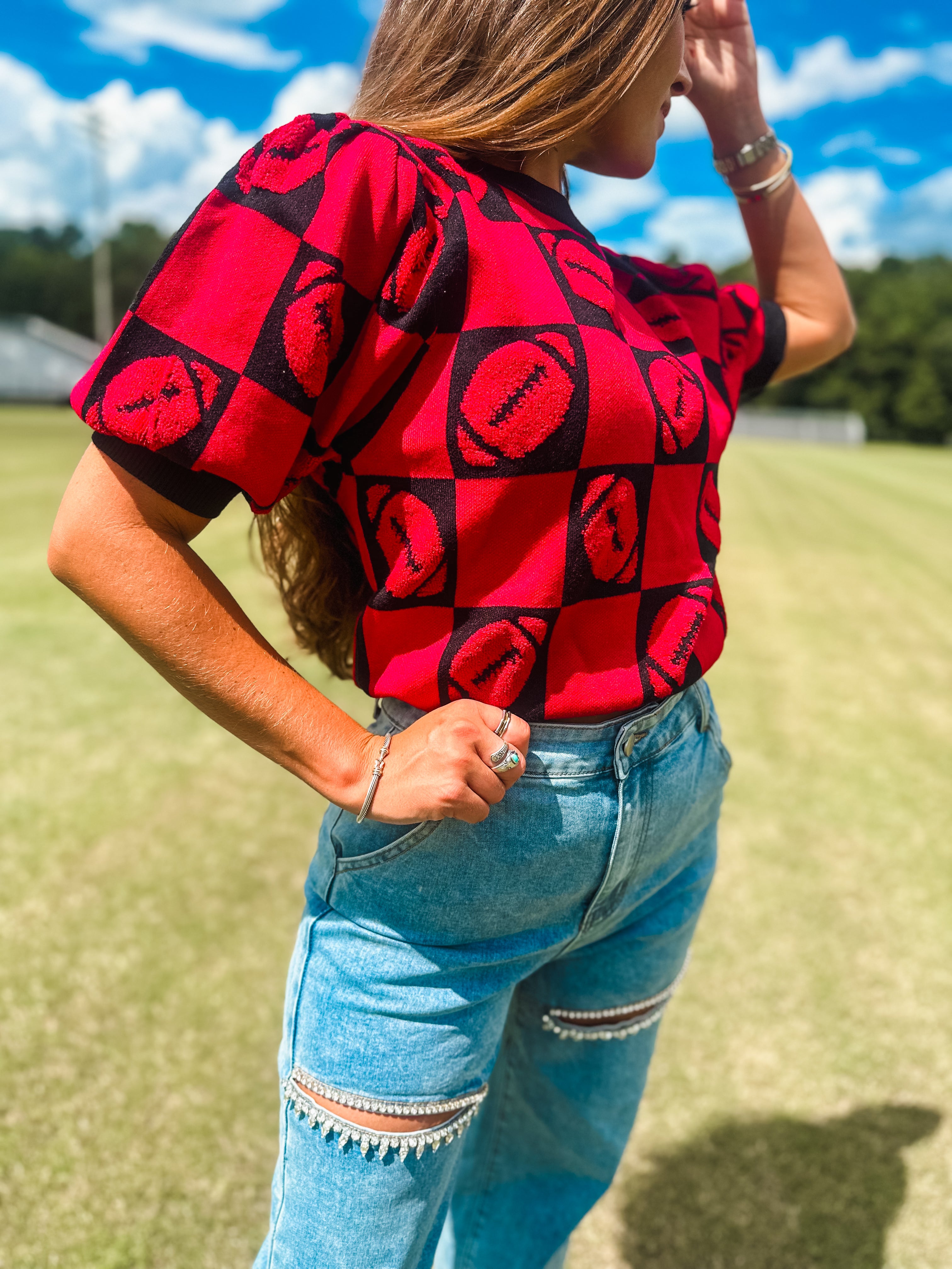 Football 3d Embroidery Viscose Sweater- Red