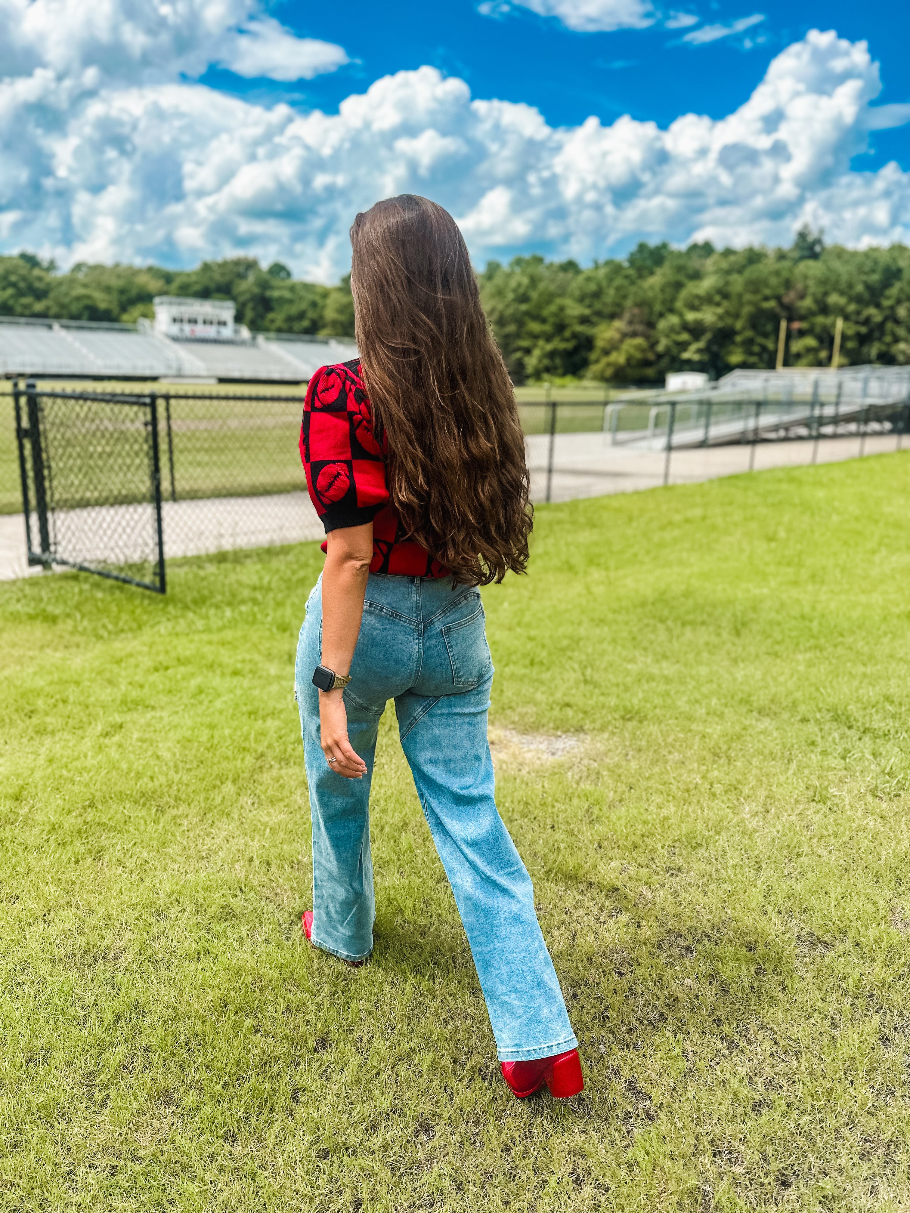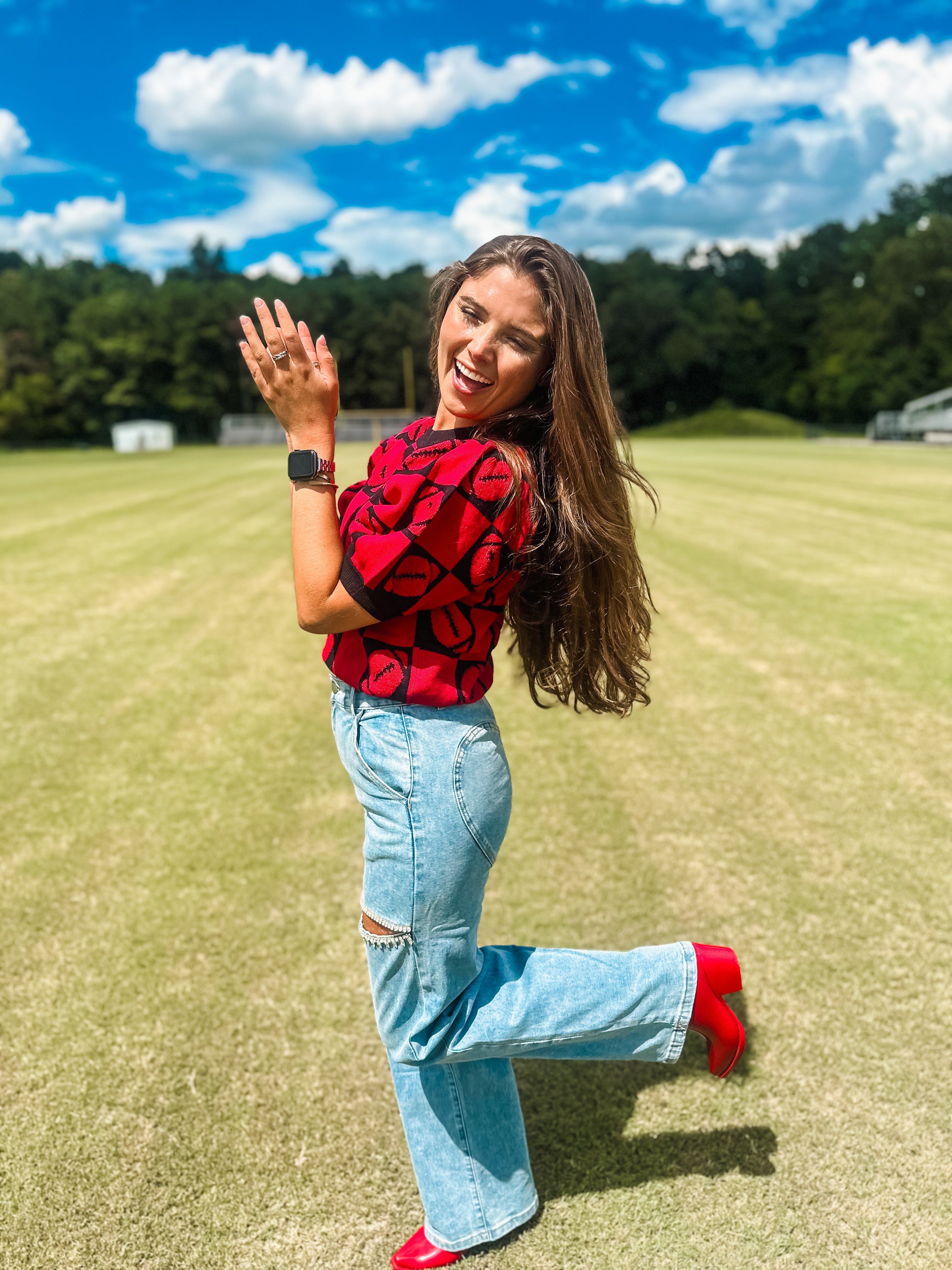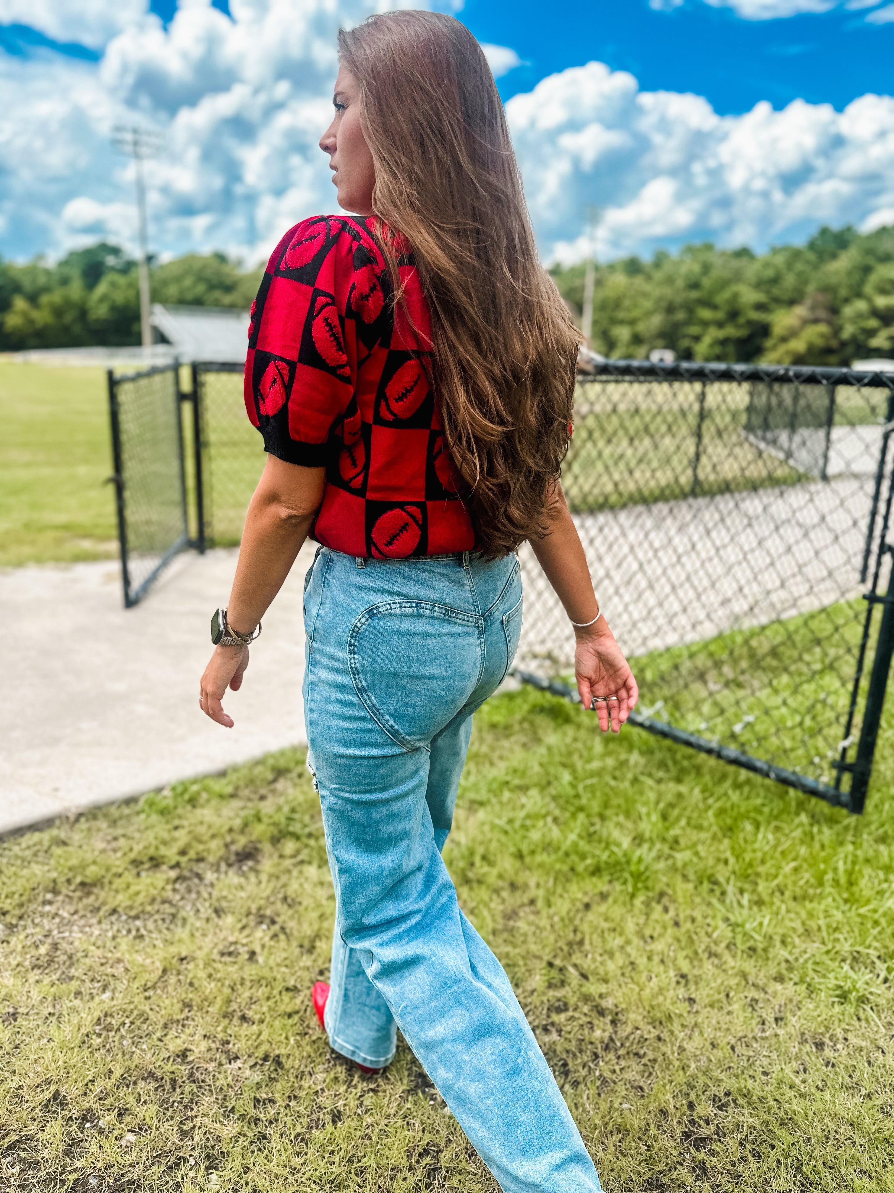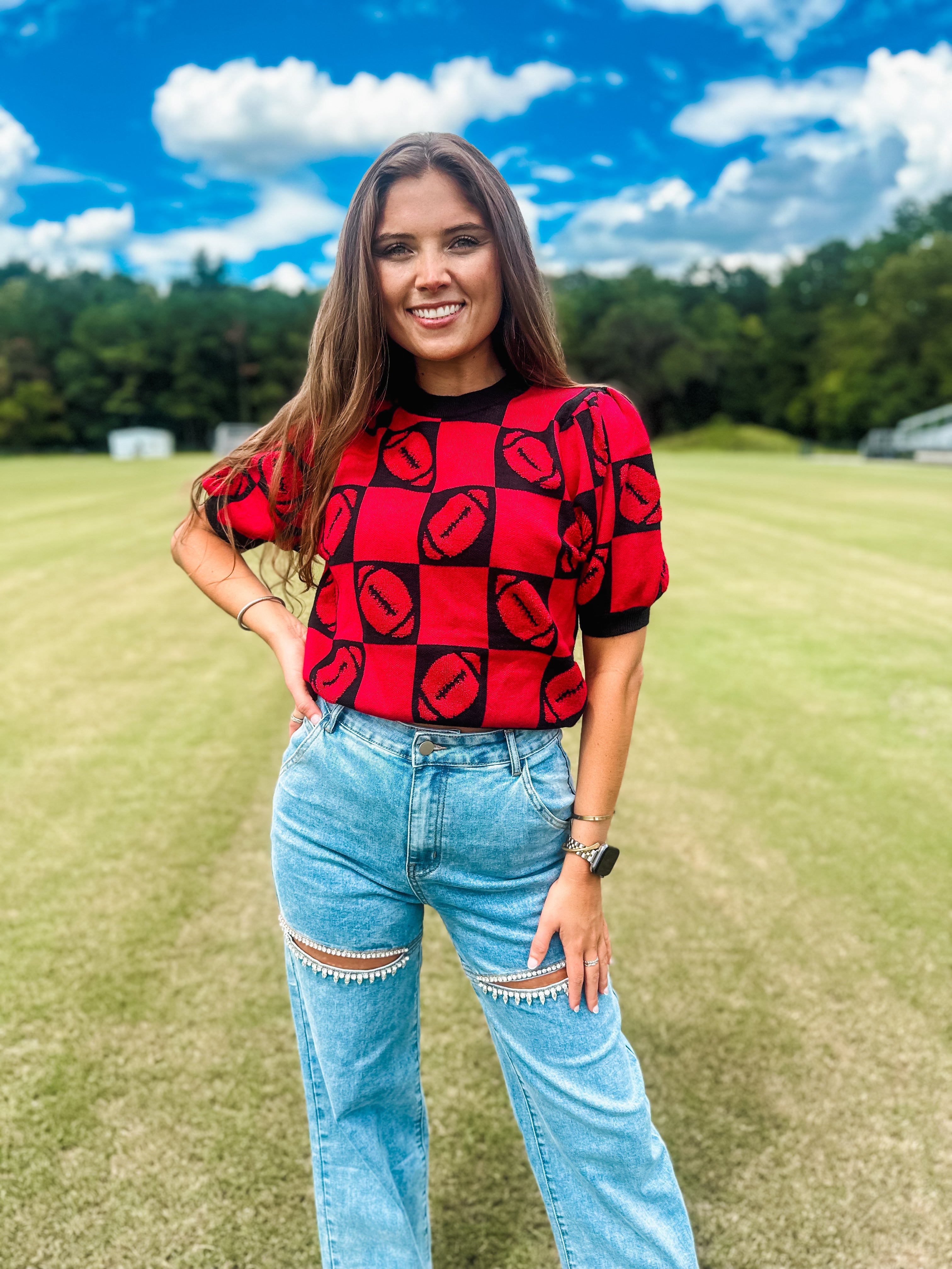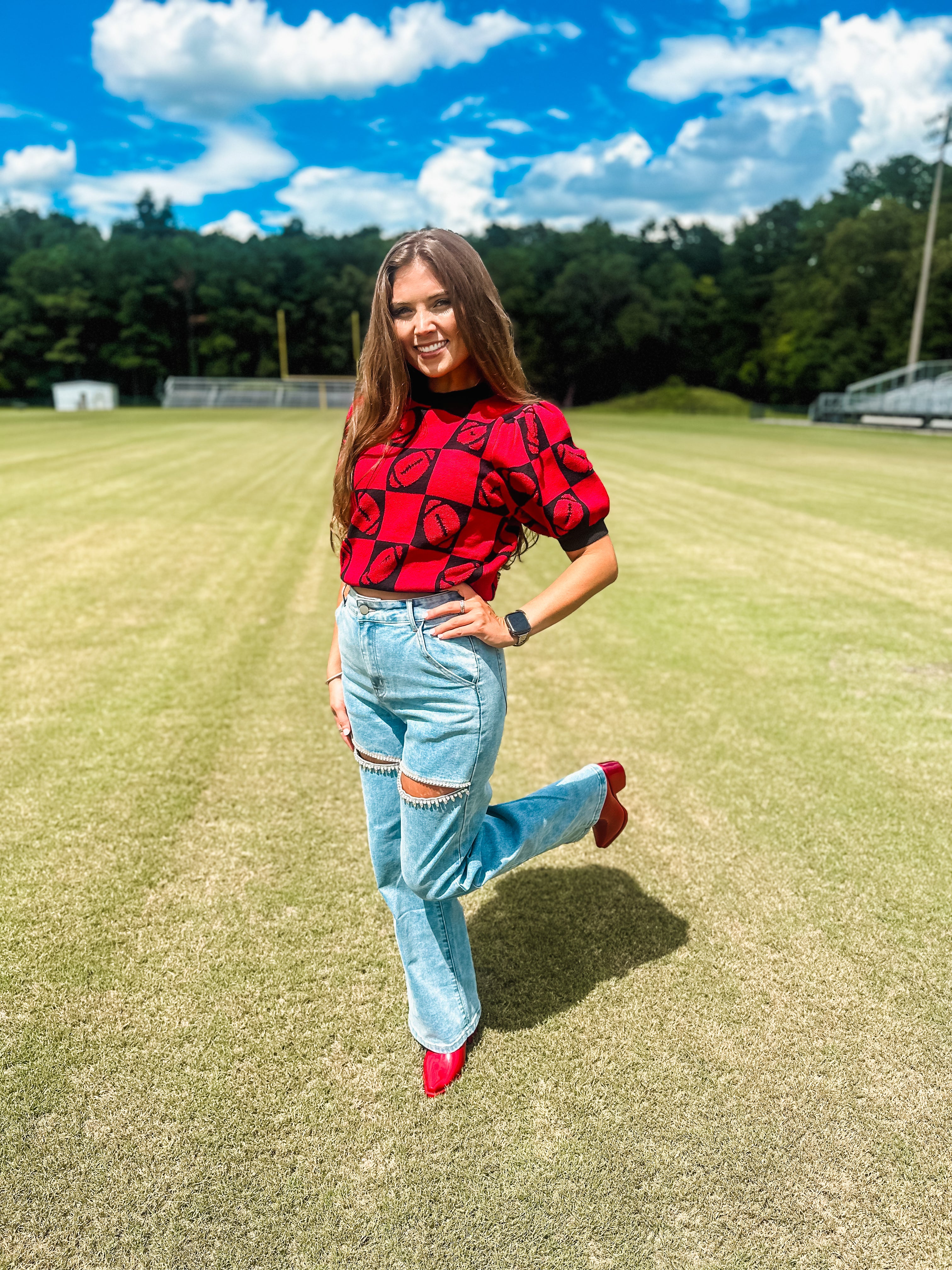 Football 3d Embroidery Viscose Sweater- Red