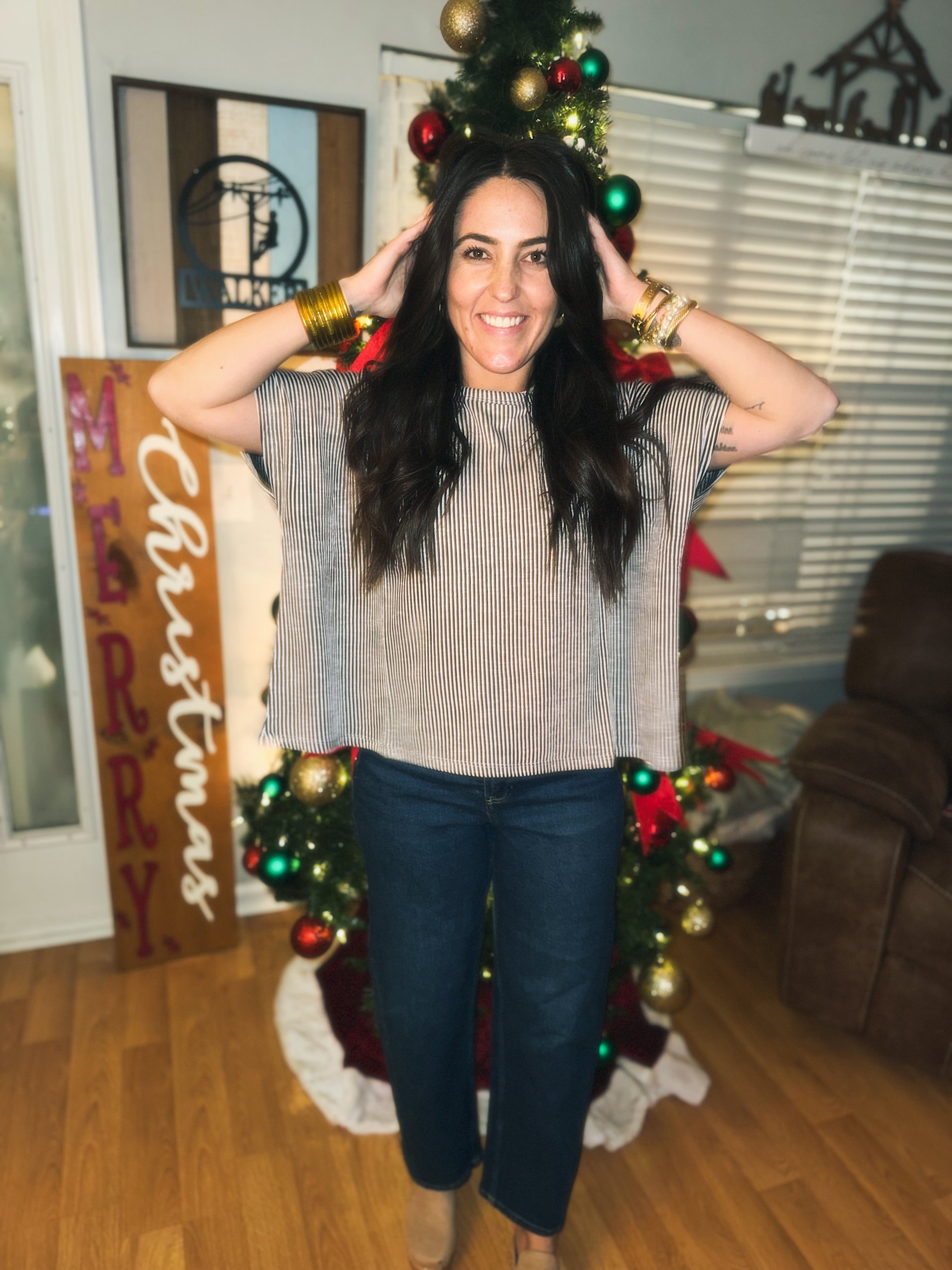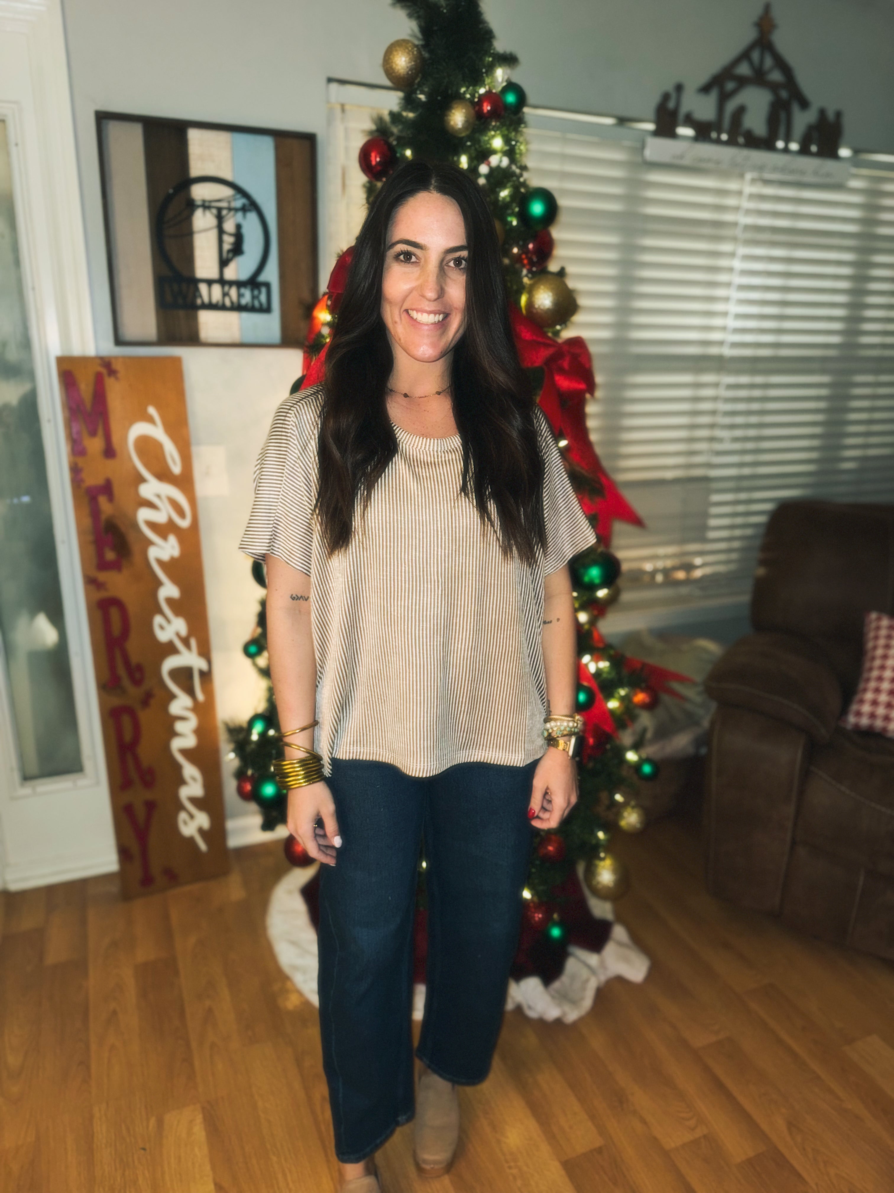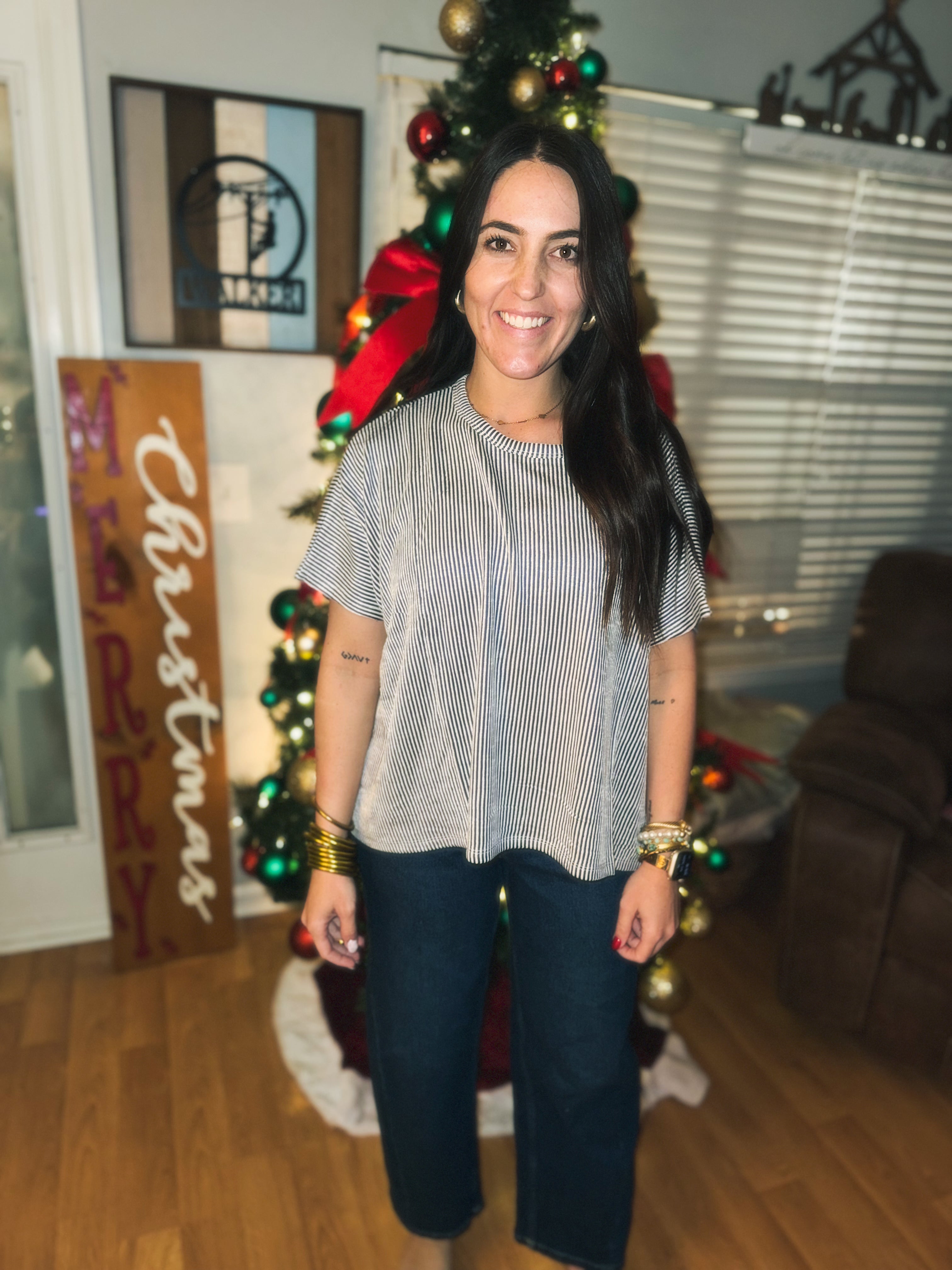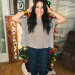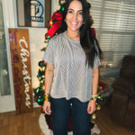 RIBBED STRIPED OVERSIZED SHORT-SLEEVE TOP