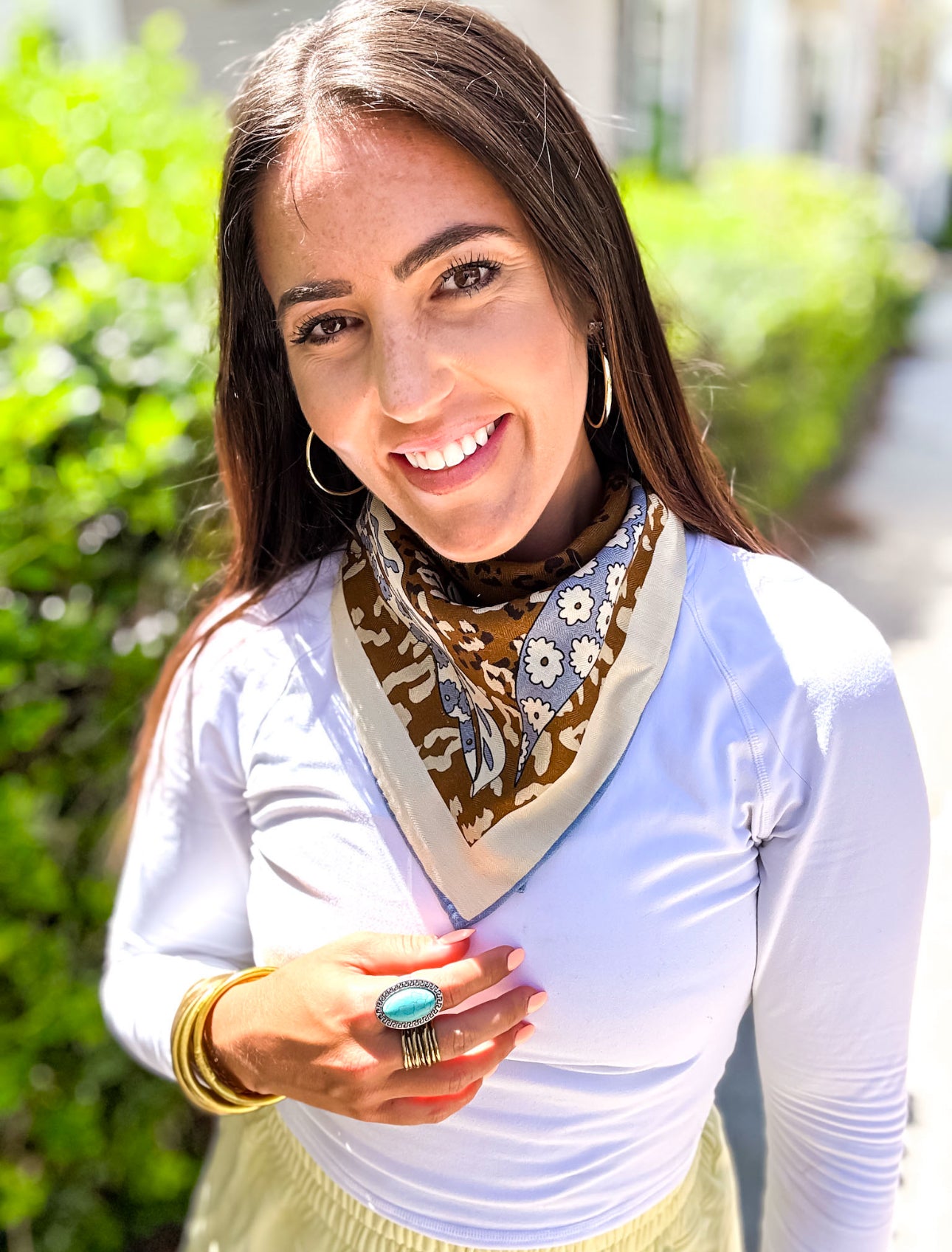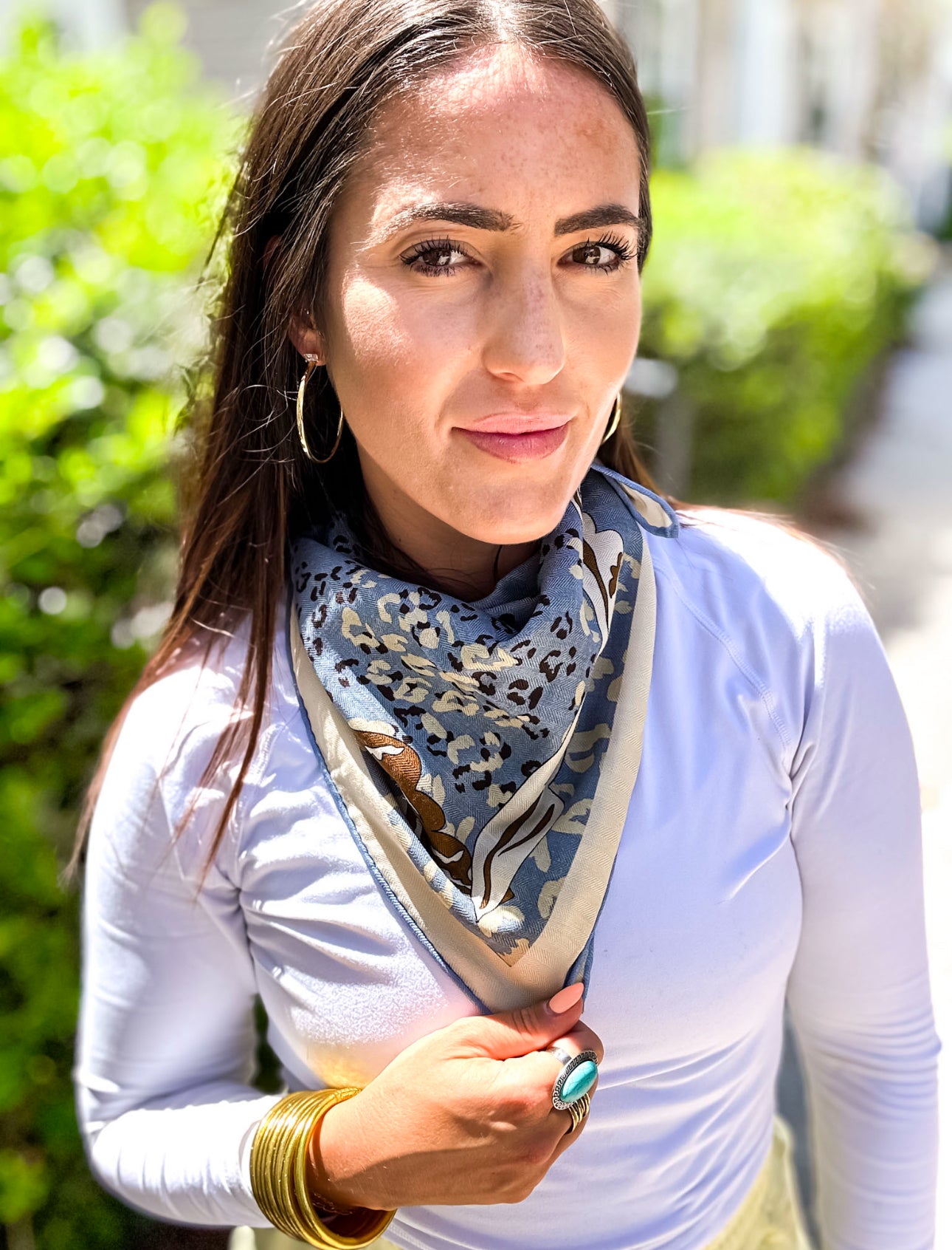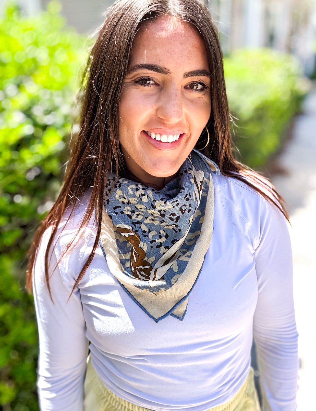 THIS IS SOLD OUT WITH THE COMPANY!! This is a trend that we are all so excited to jump on. Wear her as a scarf on your purse, head, around your neck, youir wrist, as a headband.. literally put your mind to it and I am sure it will look fantastic! All of these scarves are reversible, but this one especially is perfect for either side. One side is a camel and the other is a blue grey - still the same scarf - just different sides!